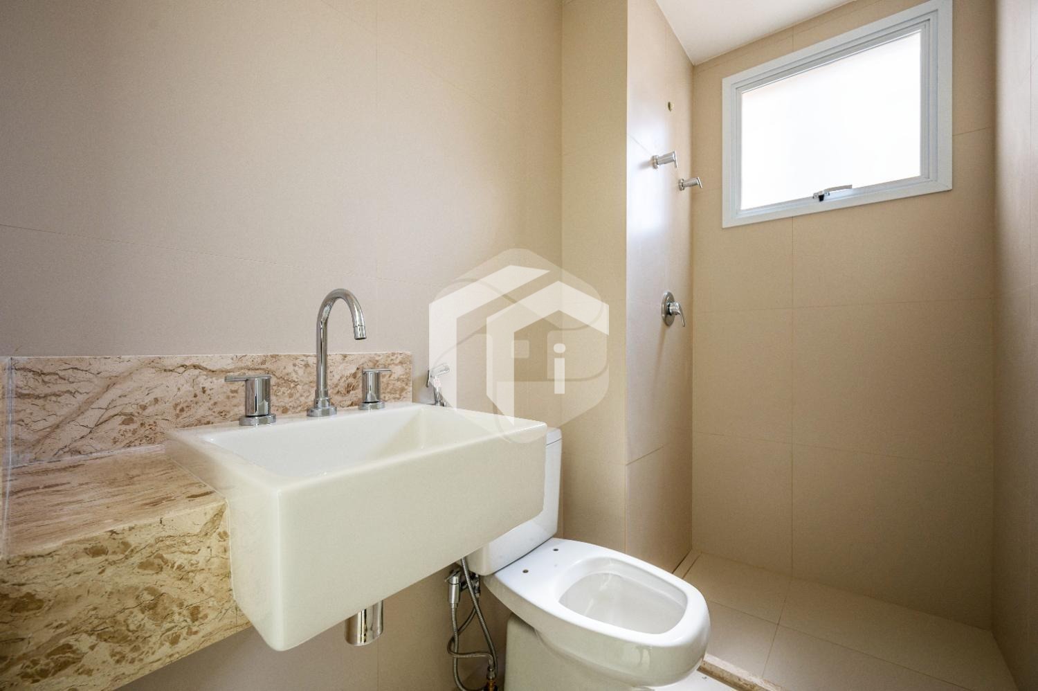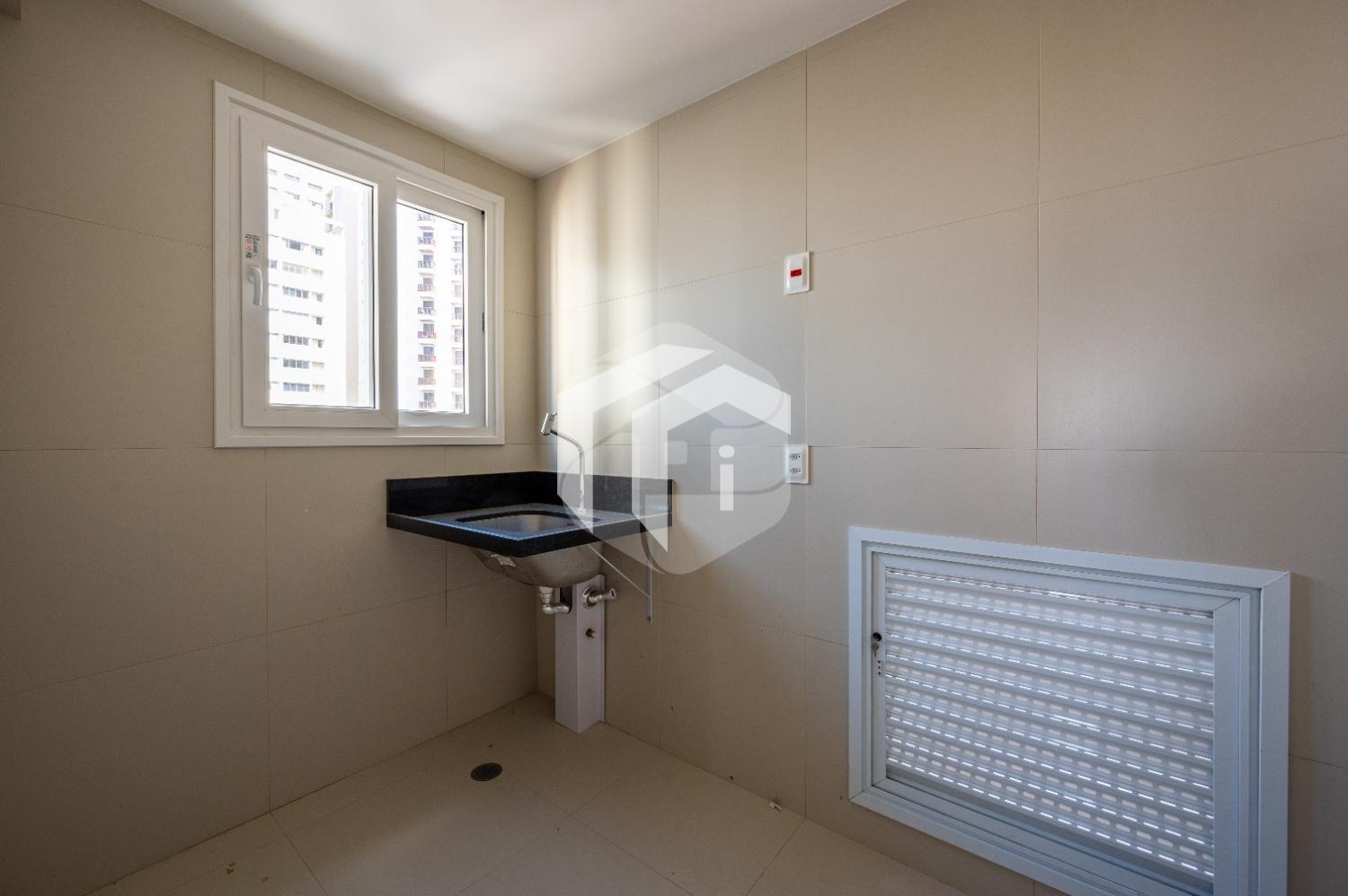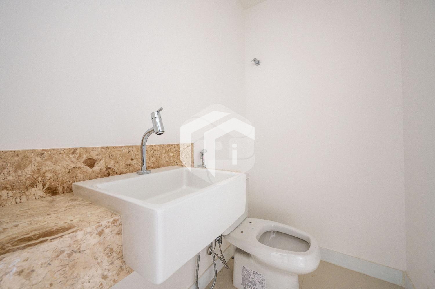 A comodidade se estende à área de serviço, complementada por um banheiro auxiliar.