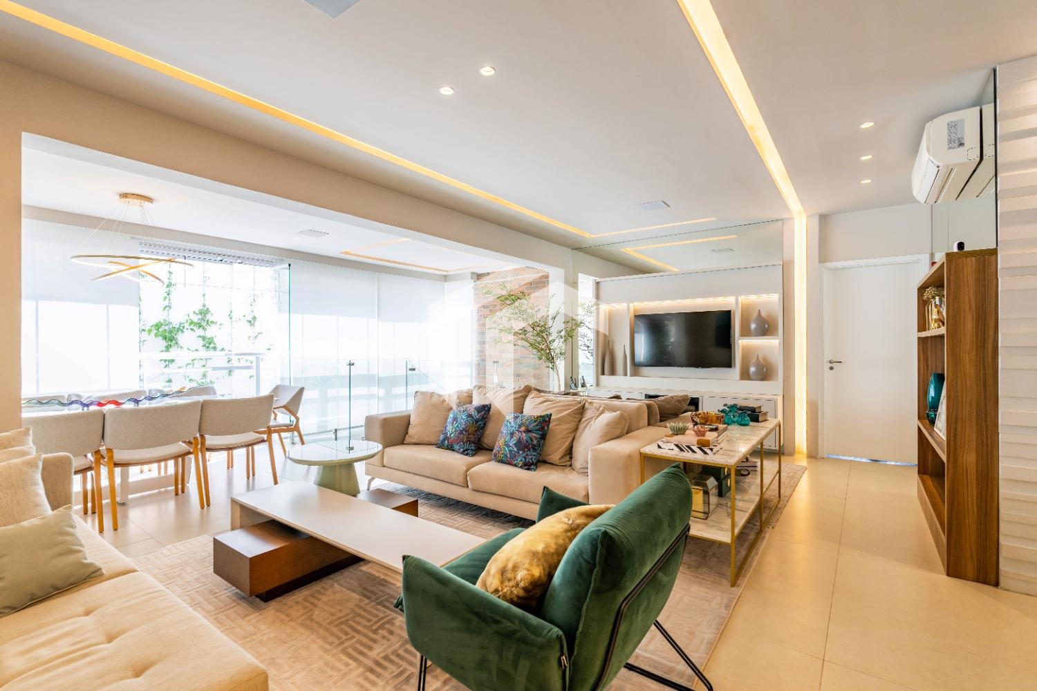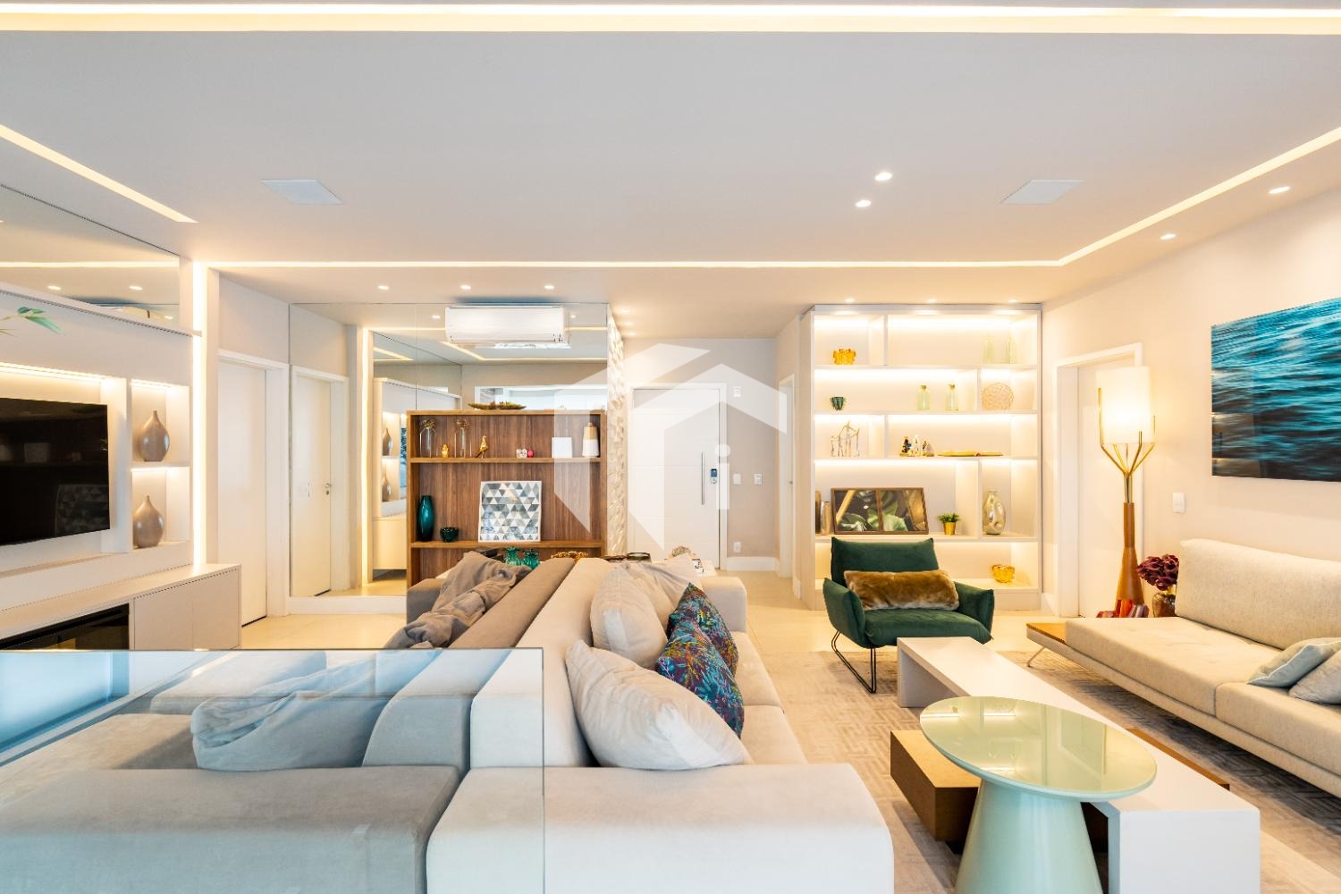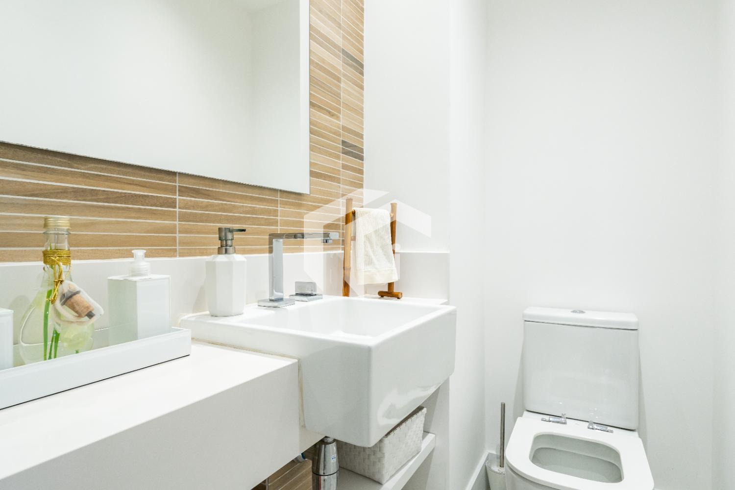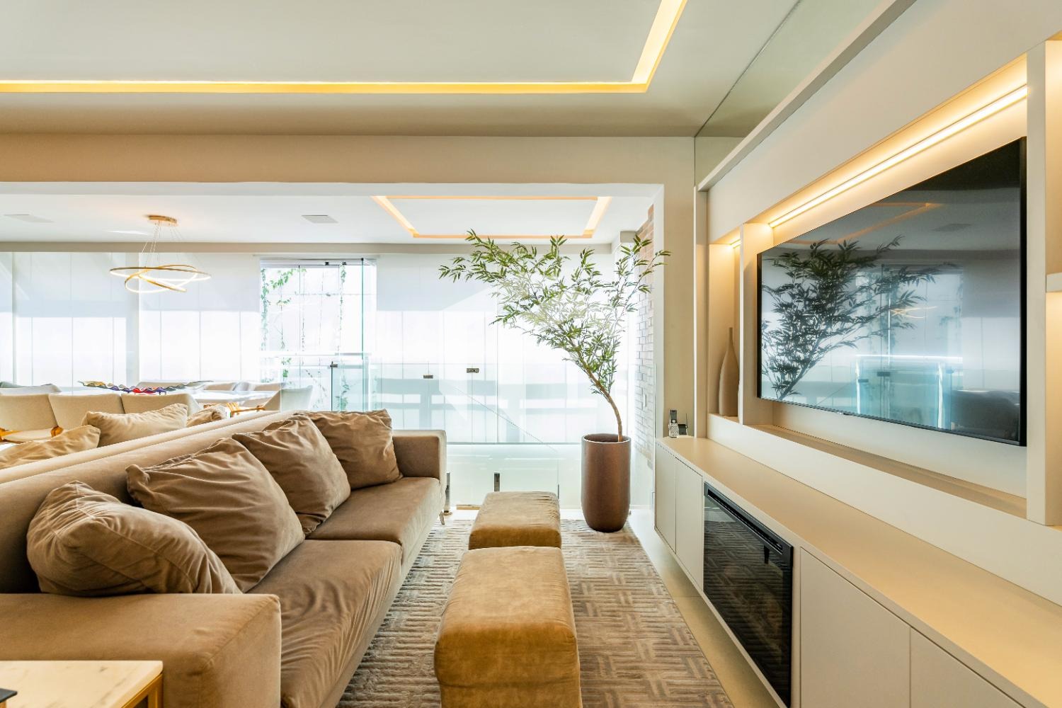 Living climatizado para 4 ambientes com lavabo e totalmente integrado à varanda com acessos à excelente cozinha planejada e com despensa, área de serviço com wc.
