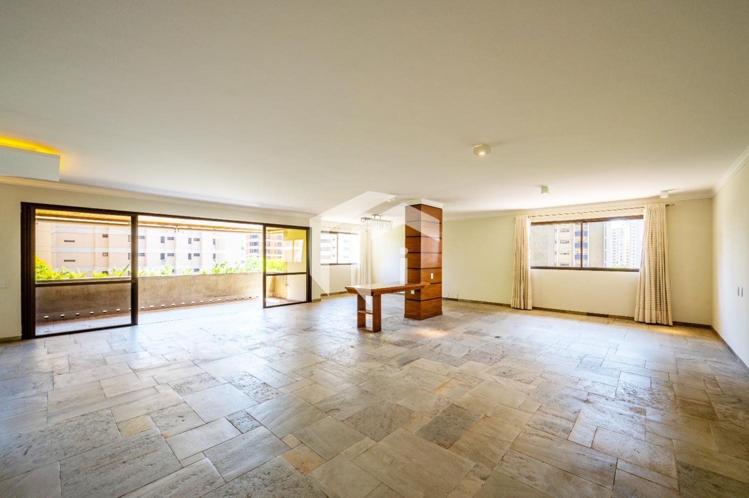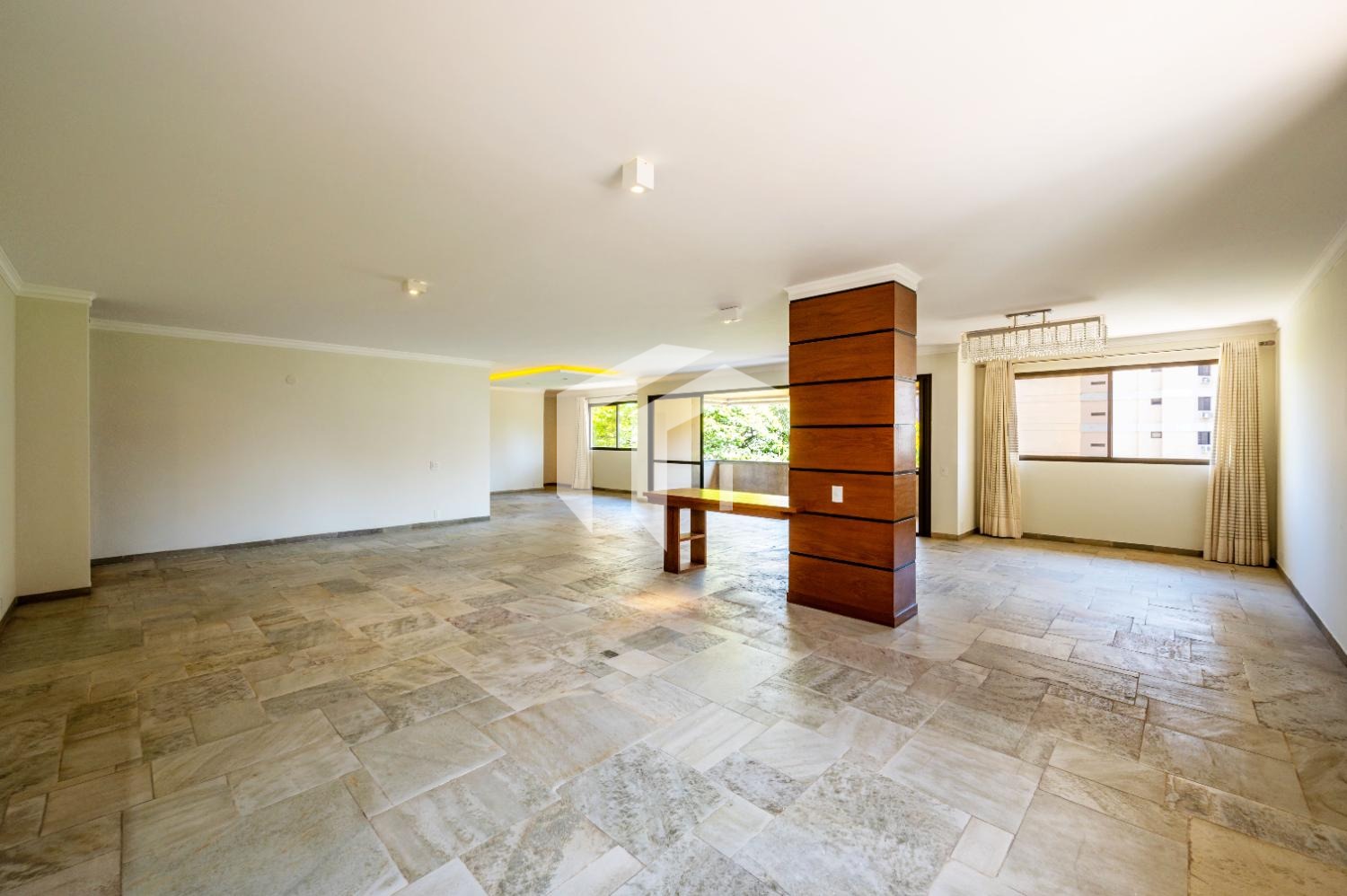 São 4 suítes (1 master), sala íntima de tv e home office, living para 4 ambientes com varanda e lavabo, copa/cozinha planejada com despensa e área de serviço com dependência de empregada.