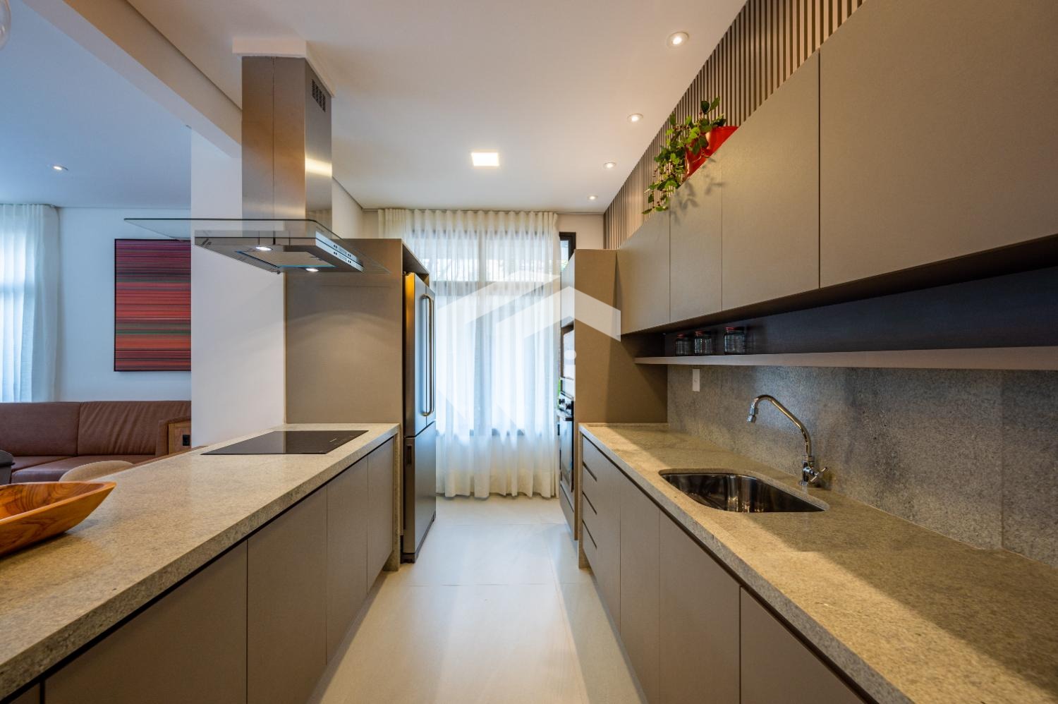 São 3 suítes (1 master), living para 3 ambientes com lavabo e varanda, cozinha americana e área de serviço com wc.