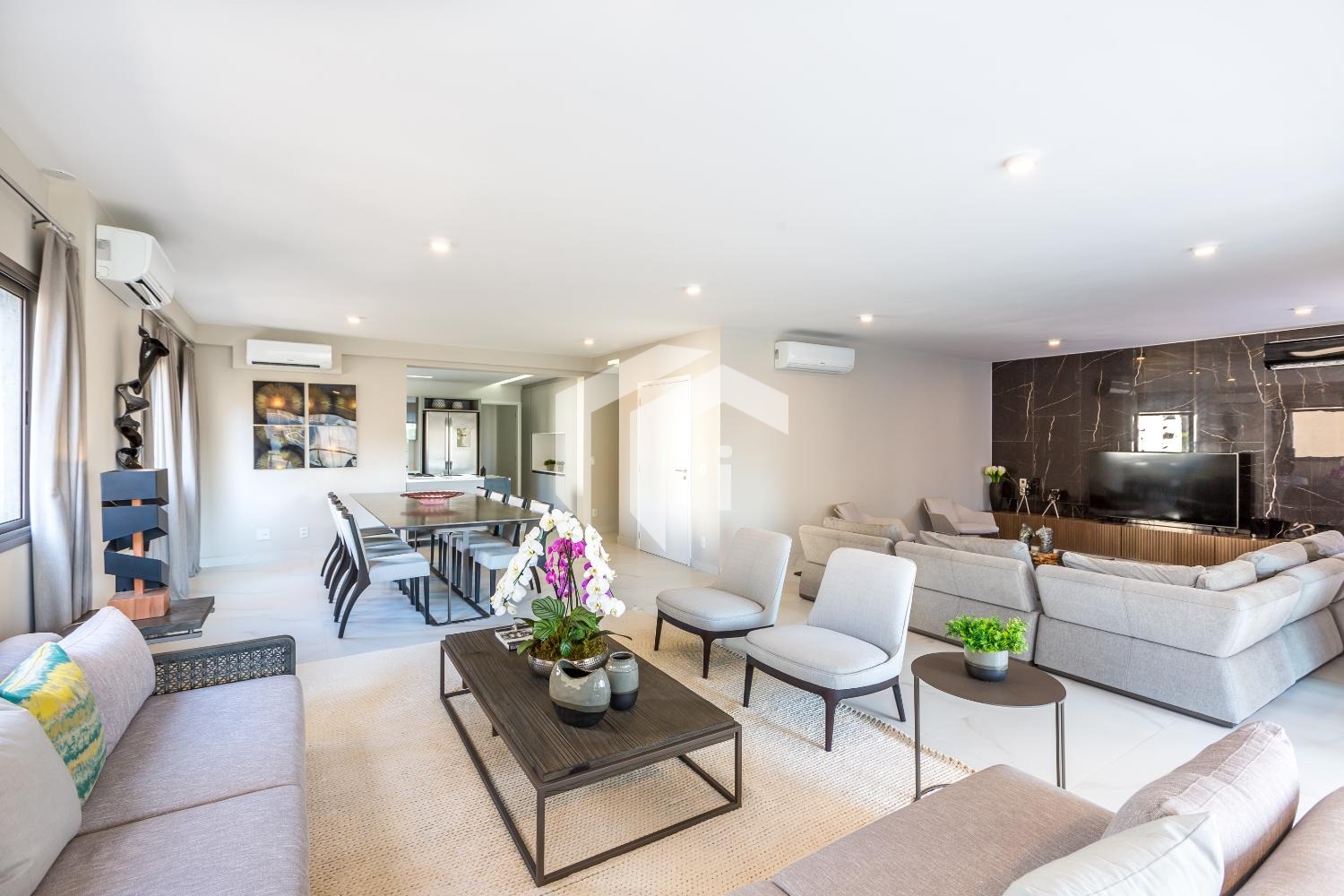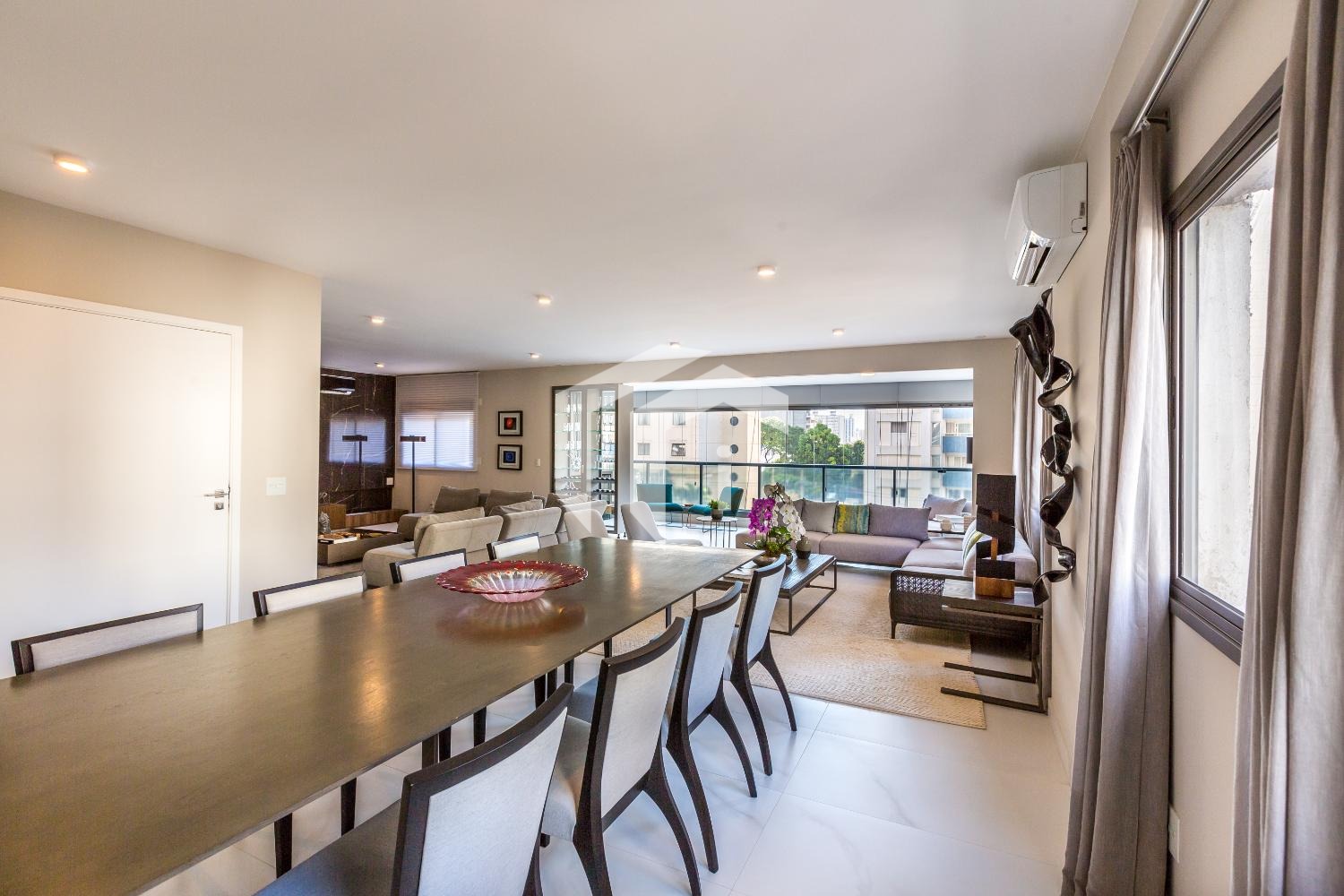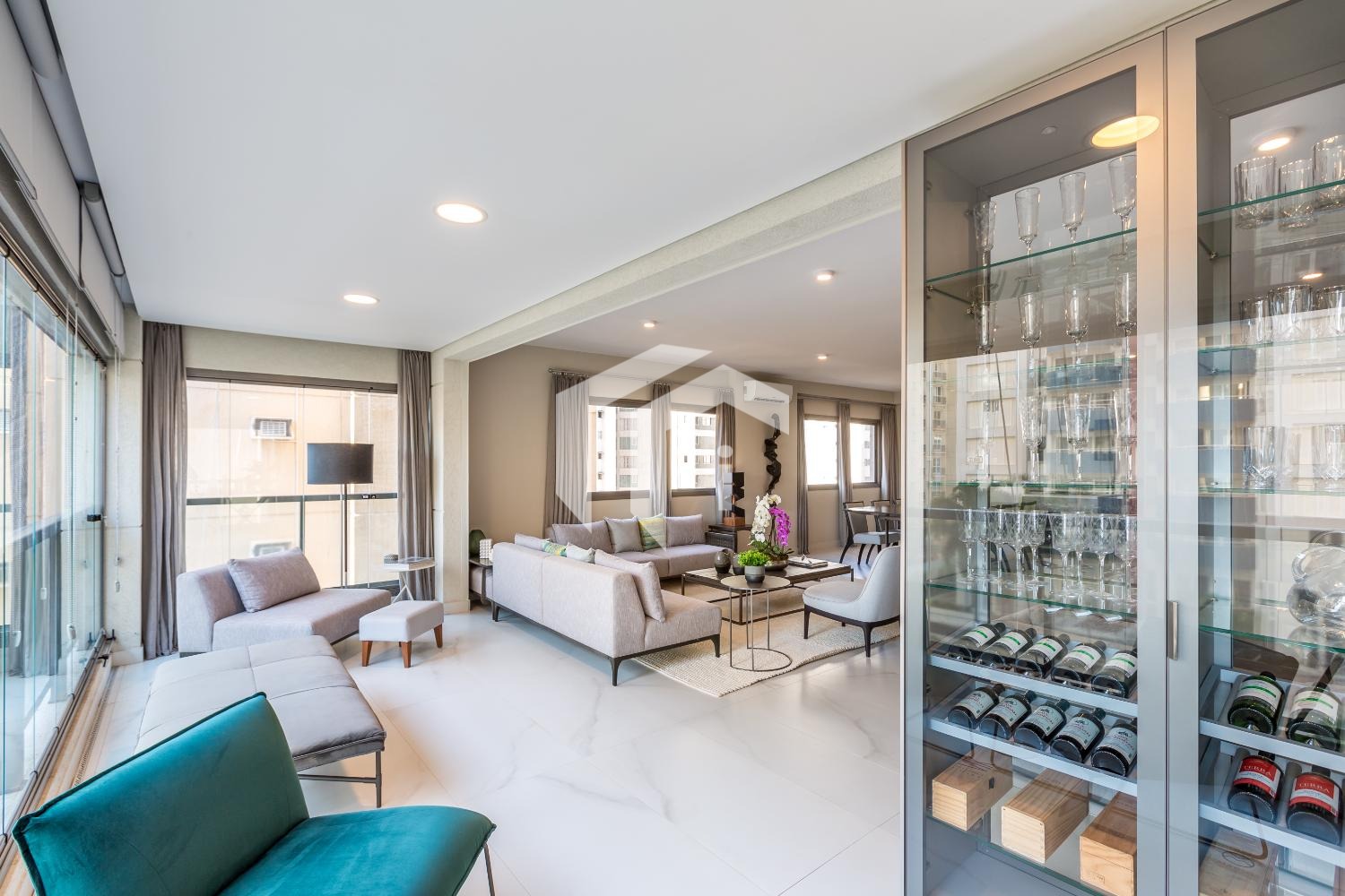 O apartamento possui uma espaçosa sala com três ambientes distintos, complementada por uma ampla varanda que proporciona uma vista esplêndida da região.
