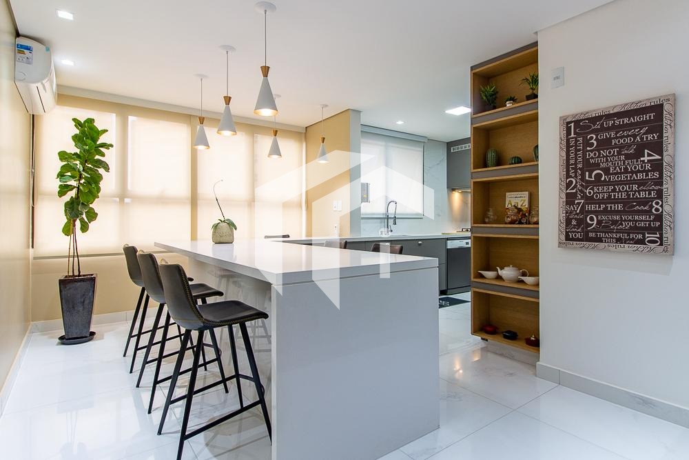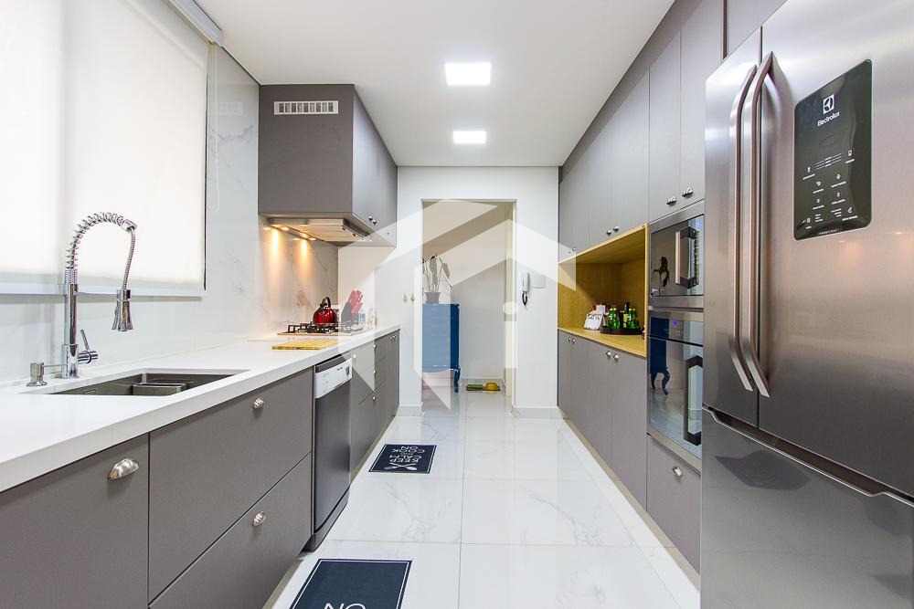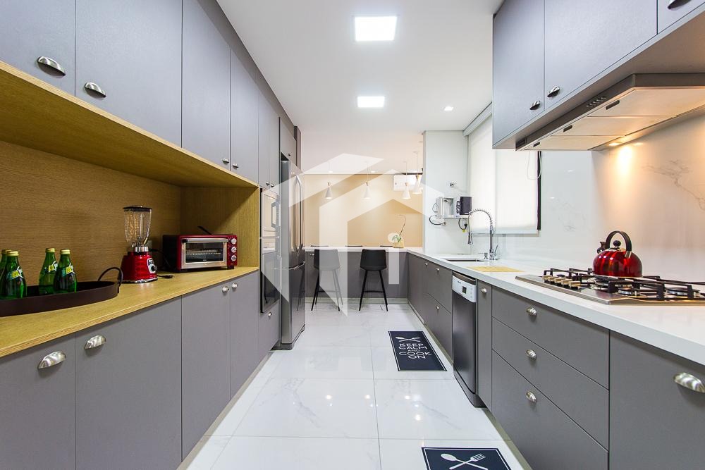 A cozinha foi cuidadosamente planejada, com armários de alta qualidade e uma despensa para armazenar mantimentos e utensílios de cozinha.