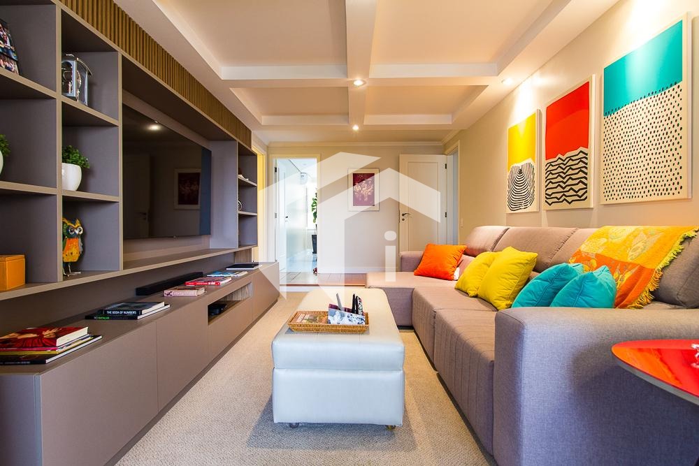 Generoso living para 6 ambientes com uma convidativa varanda, ótima vista e sol da manhã, com o conforto do lavabo, mais, sala de tv.