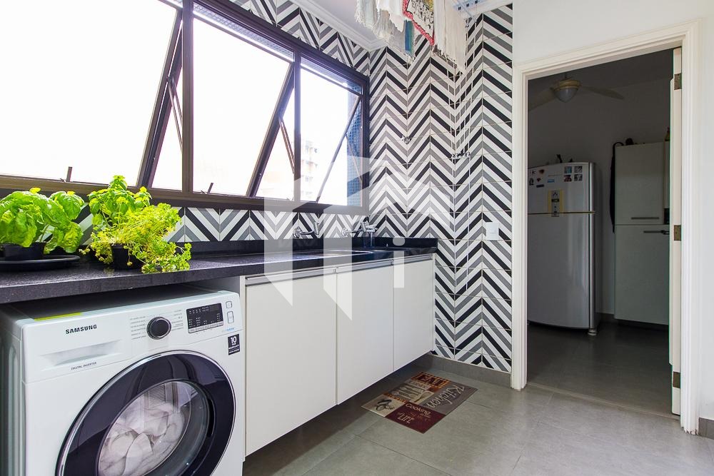 A área de serviço possui espaço suficiente para acomodar todos os eletrodomésticos necessários, além de contar com uma dependência de serviço para maior comodidade.