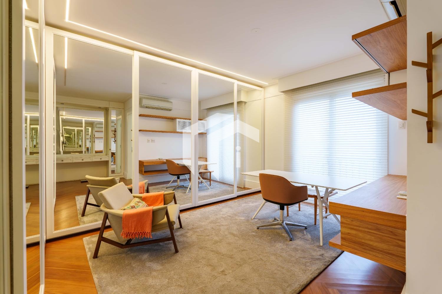São 3 amplas suítes avarandadas e com persianas automatizadas, sendo a master com wc´s senhor e senhora, mais, 2 home offices.