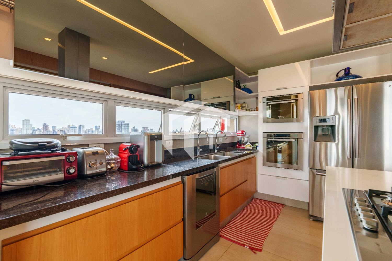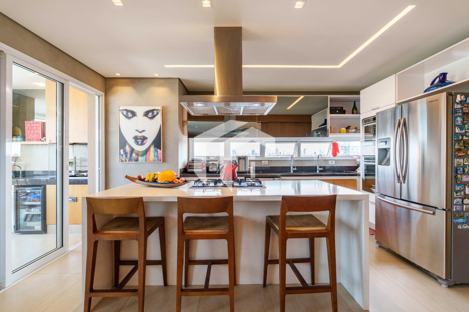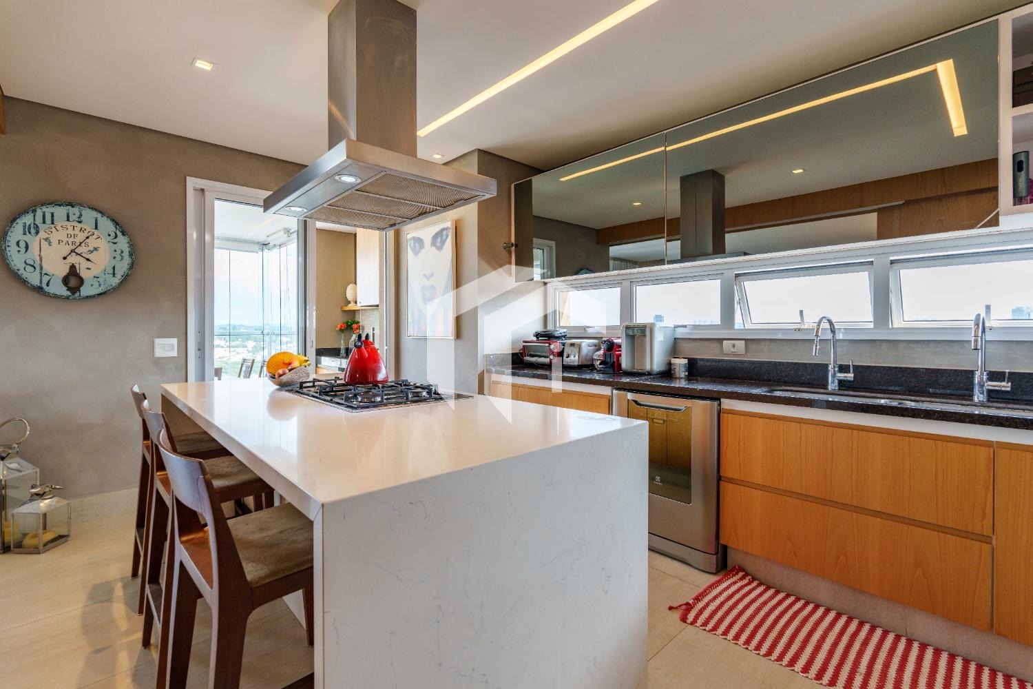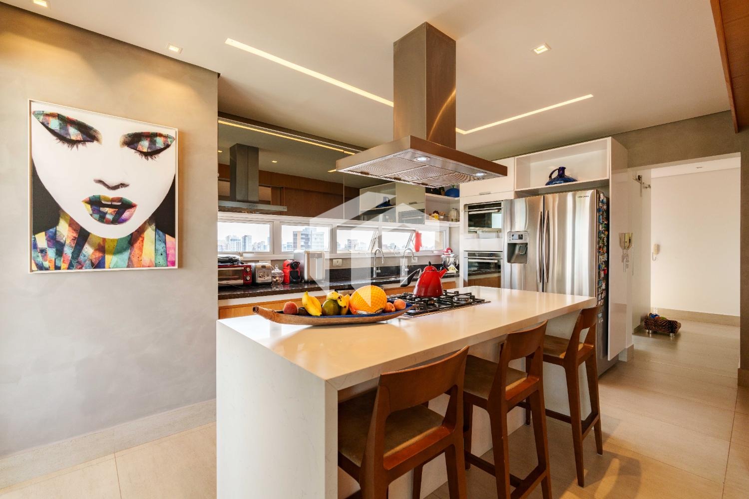 Cozinha americana, harmoniosamente integrada ao espaço social, inspira a criação de pratos e a celebração de reuniões memoráveis.