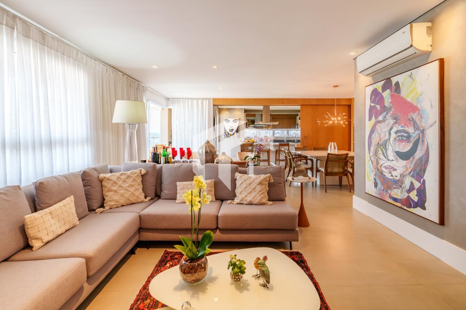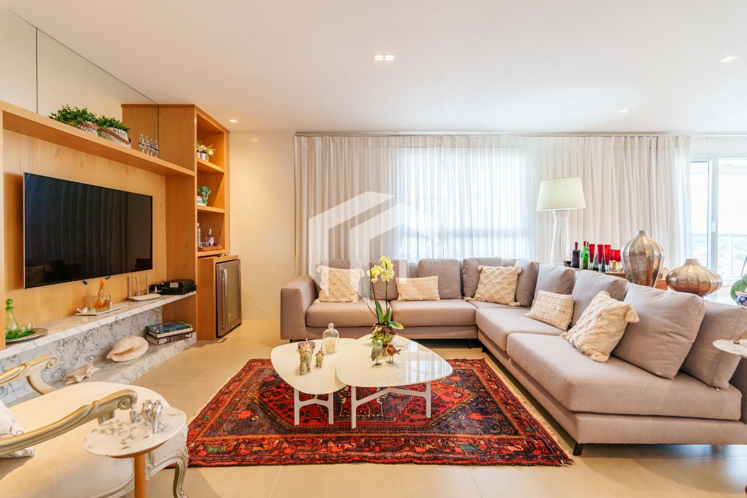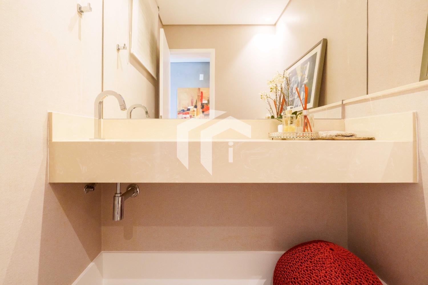 Sala para 3 ambientes distintos, é enriquecida por um lavabo e um espaço dedicado ao home theater, proporcionando um cenário ideal para momentos de entretenimento e relaxamento.