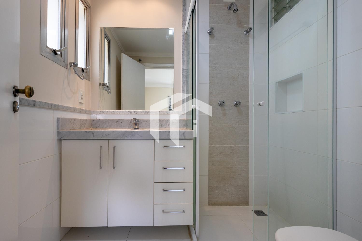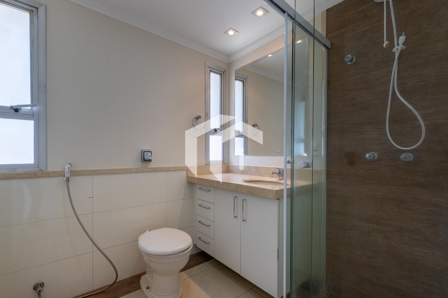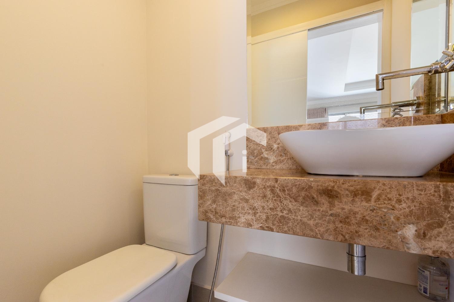 Apartamento com 3 quartos, sendo 2 suítes, sala de TV, lavabo, escritório com banheiro, cozinha e área de serviço.
