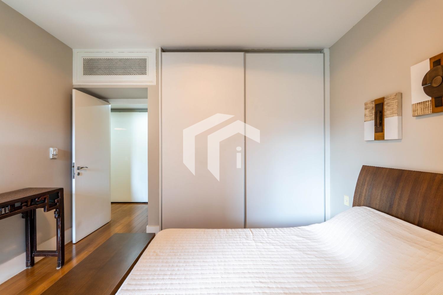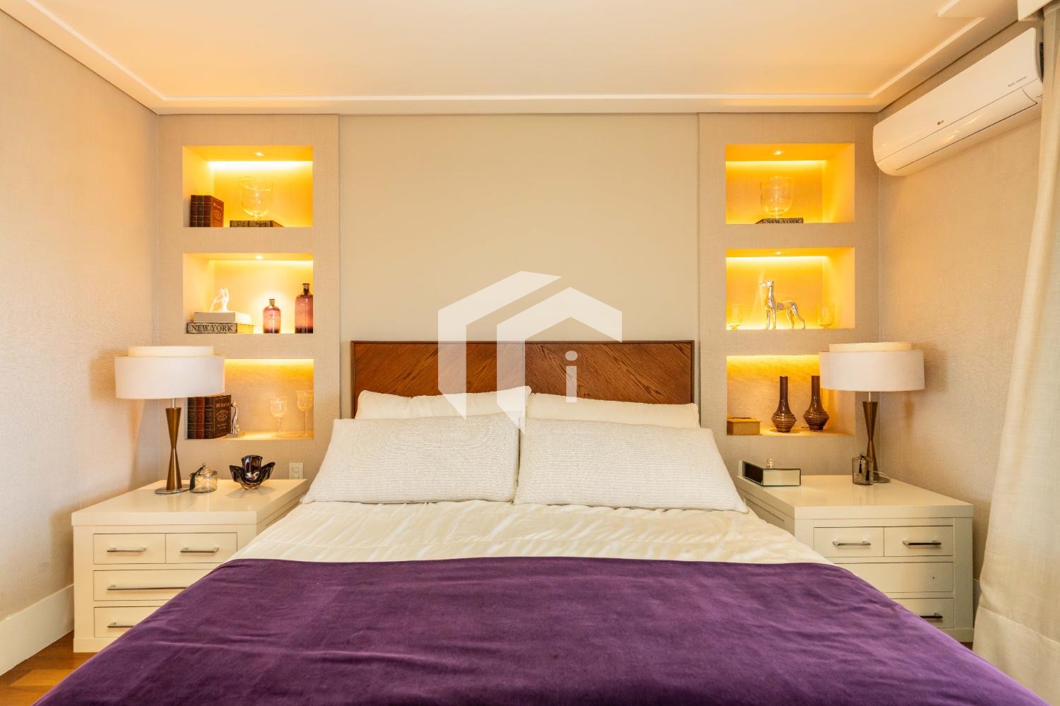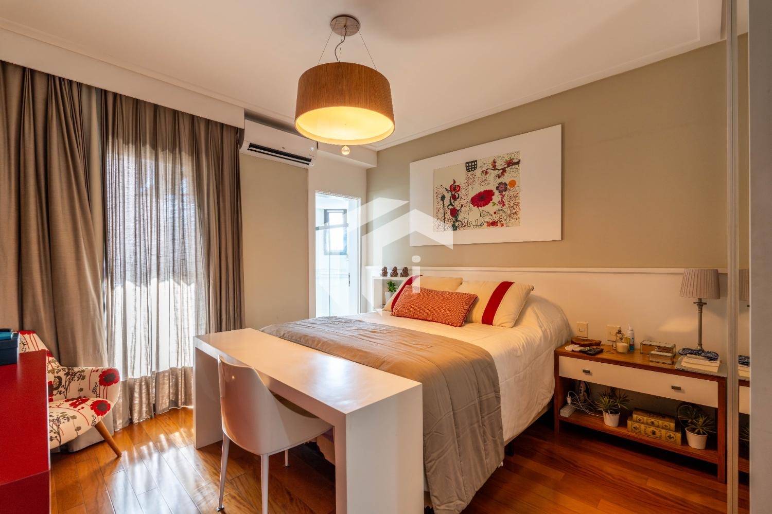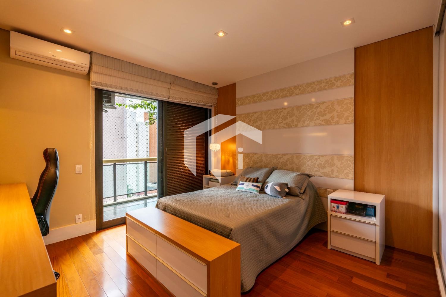 Os quartos são espaçosos e bem equipados, com armários embutidos e ar-condicionado. A suíte master é a maior do apartamento, com closet e banheiro privativo com banheira de hidromassagem.