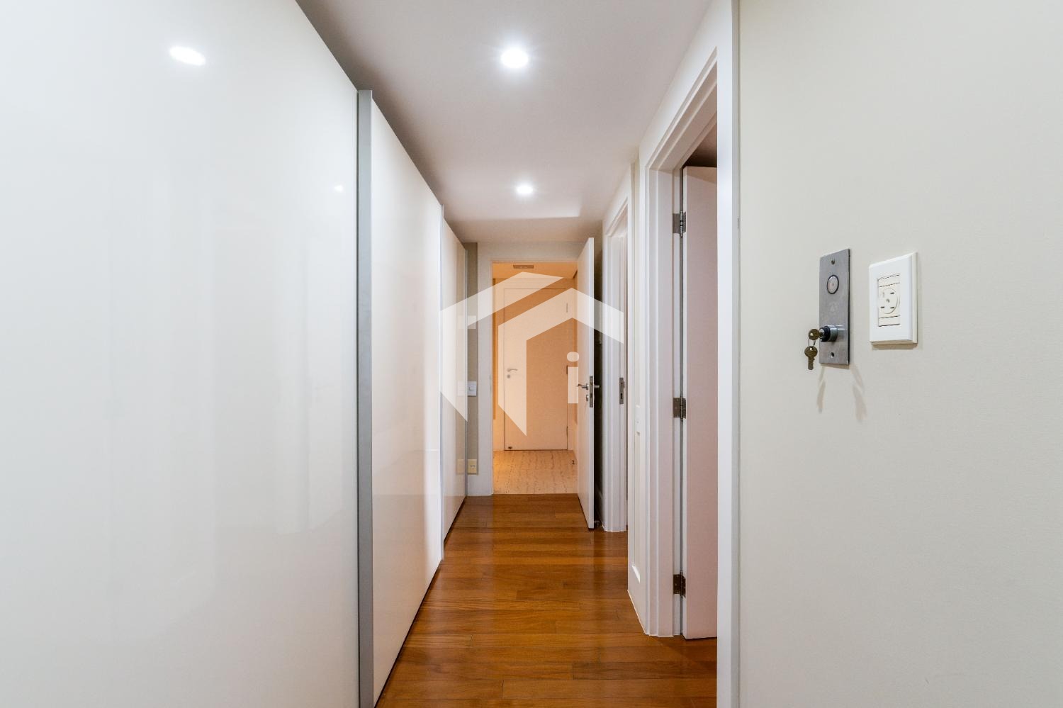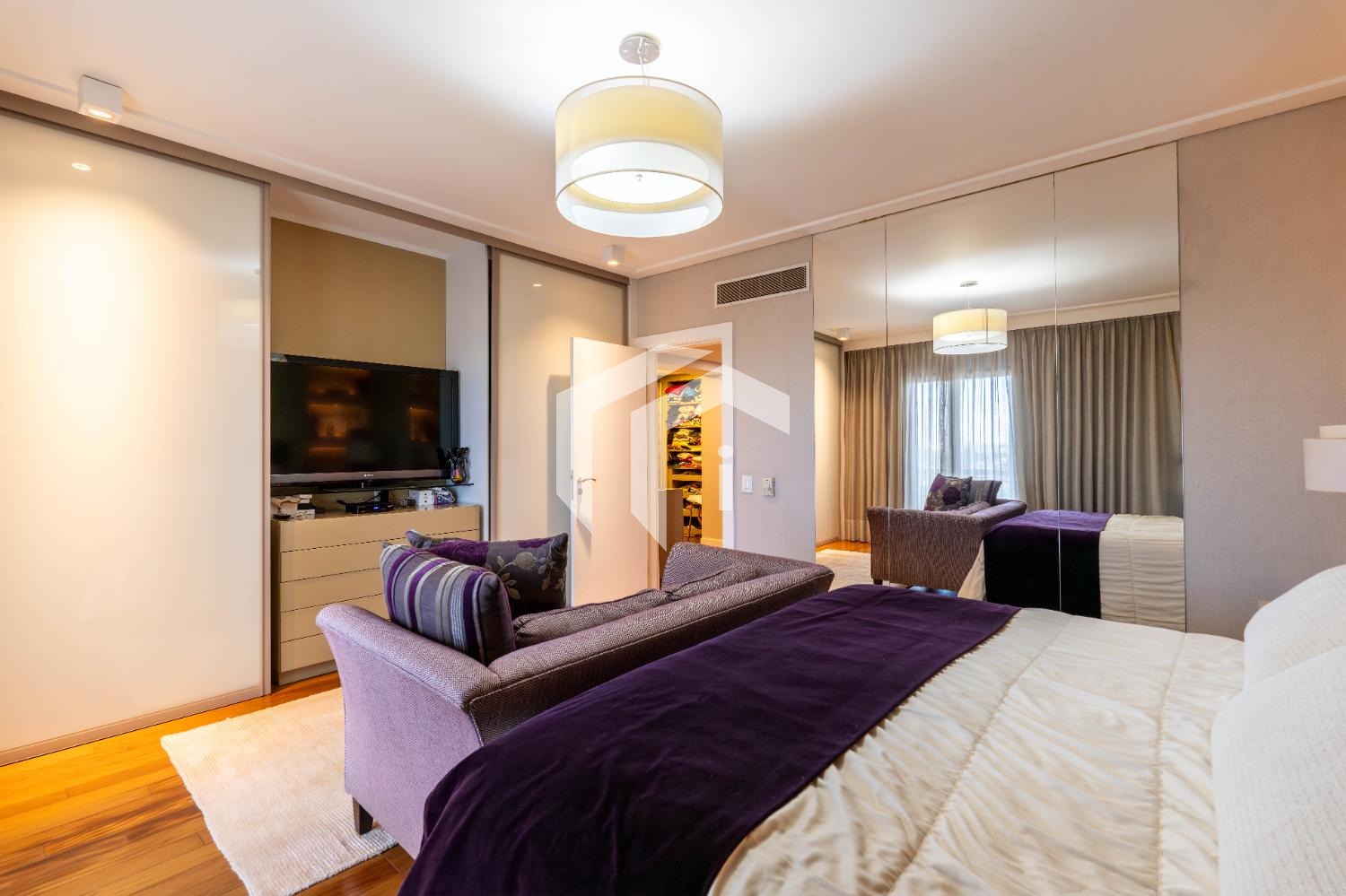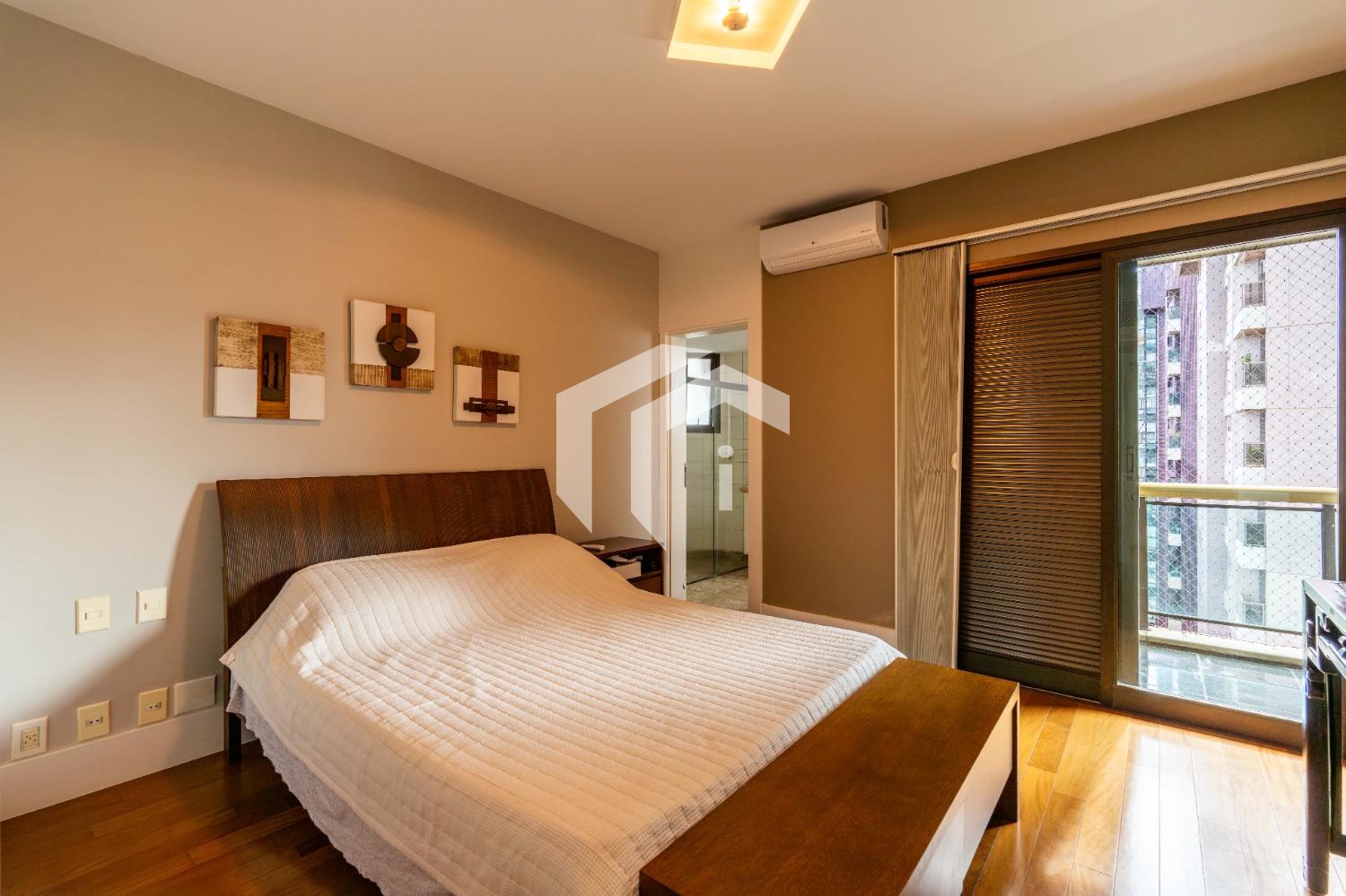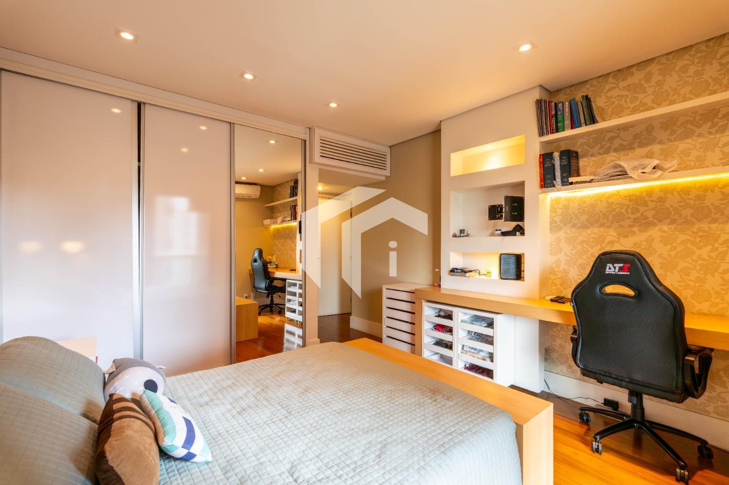 Os quartos são espaçosos e bem equipados, com armários embutidos e ar-condicionado. A suíte master é a maior do apartamento, com closet e banheiro privativo com banheira de hidromassagem.