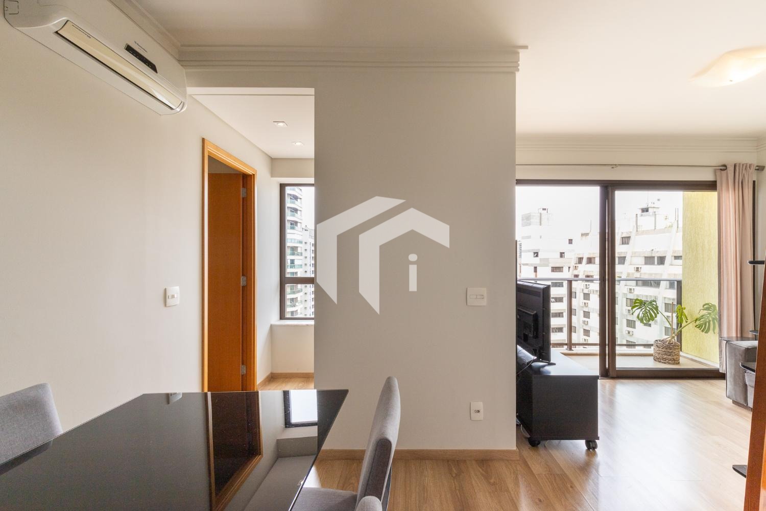 Com uma suíte cuidadosamente planejada e climatizada, além de um espaçoso living para dois ambientes que se estende até uma acolhedora varanda.