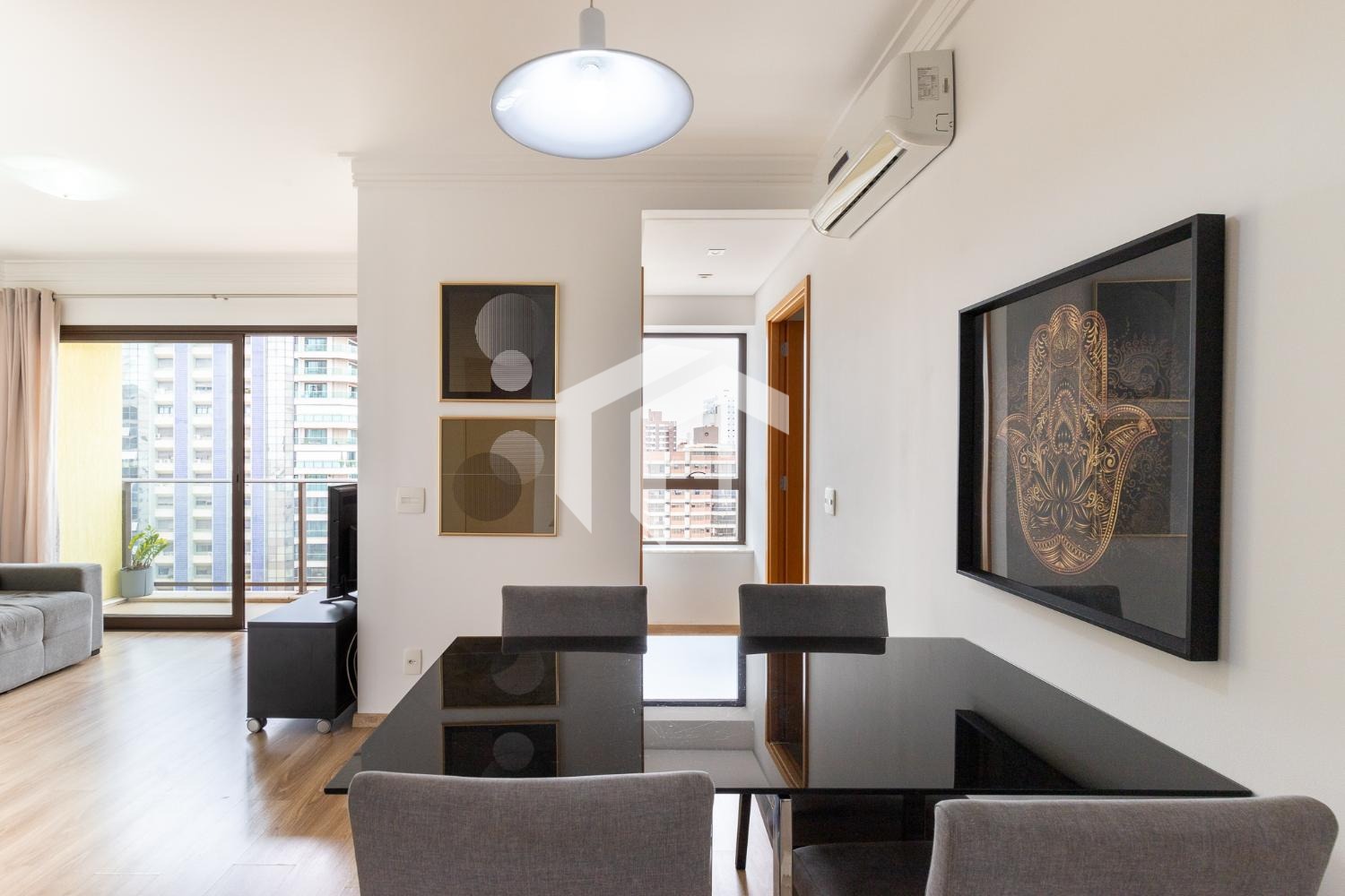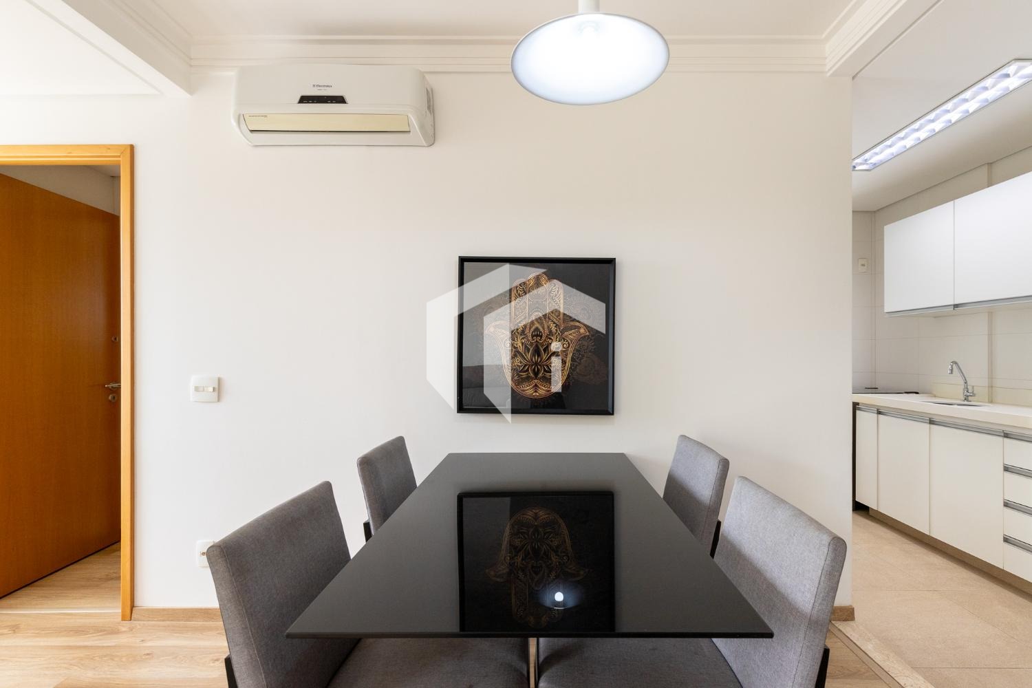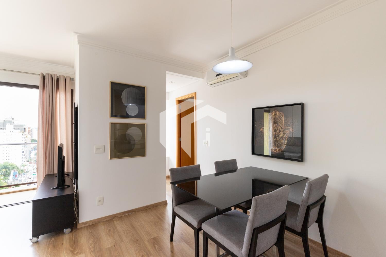 Com uma suíte cuidadosamente planejada e climatizada, além de um espaçoso living para dois ambientes que se estende até uma acolhedora varanda.
