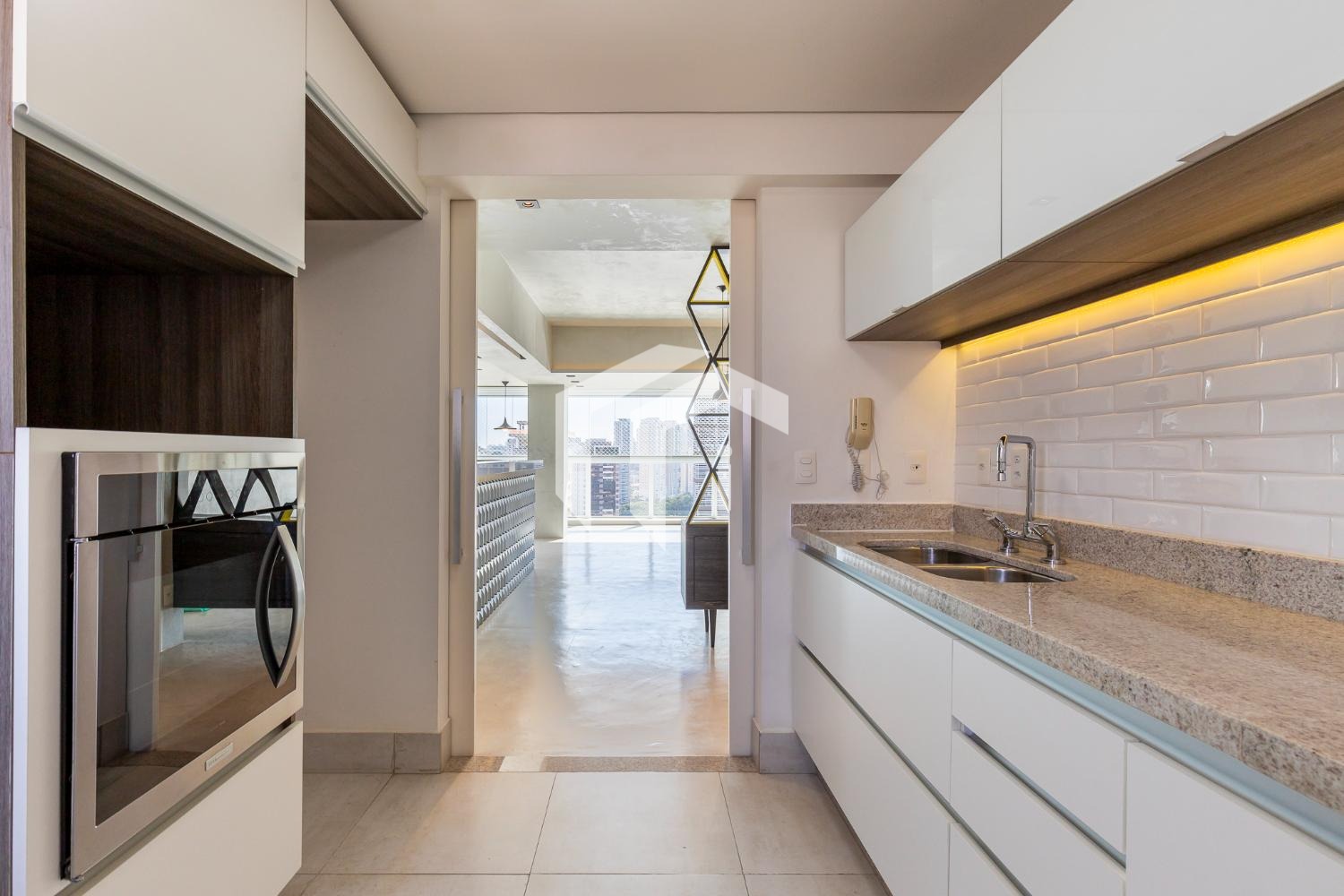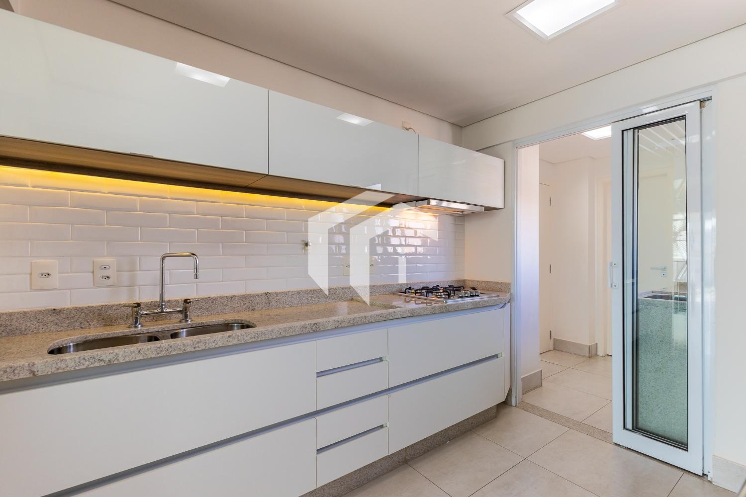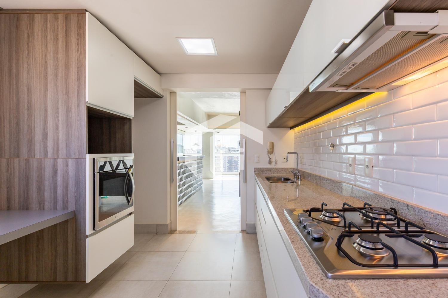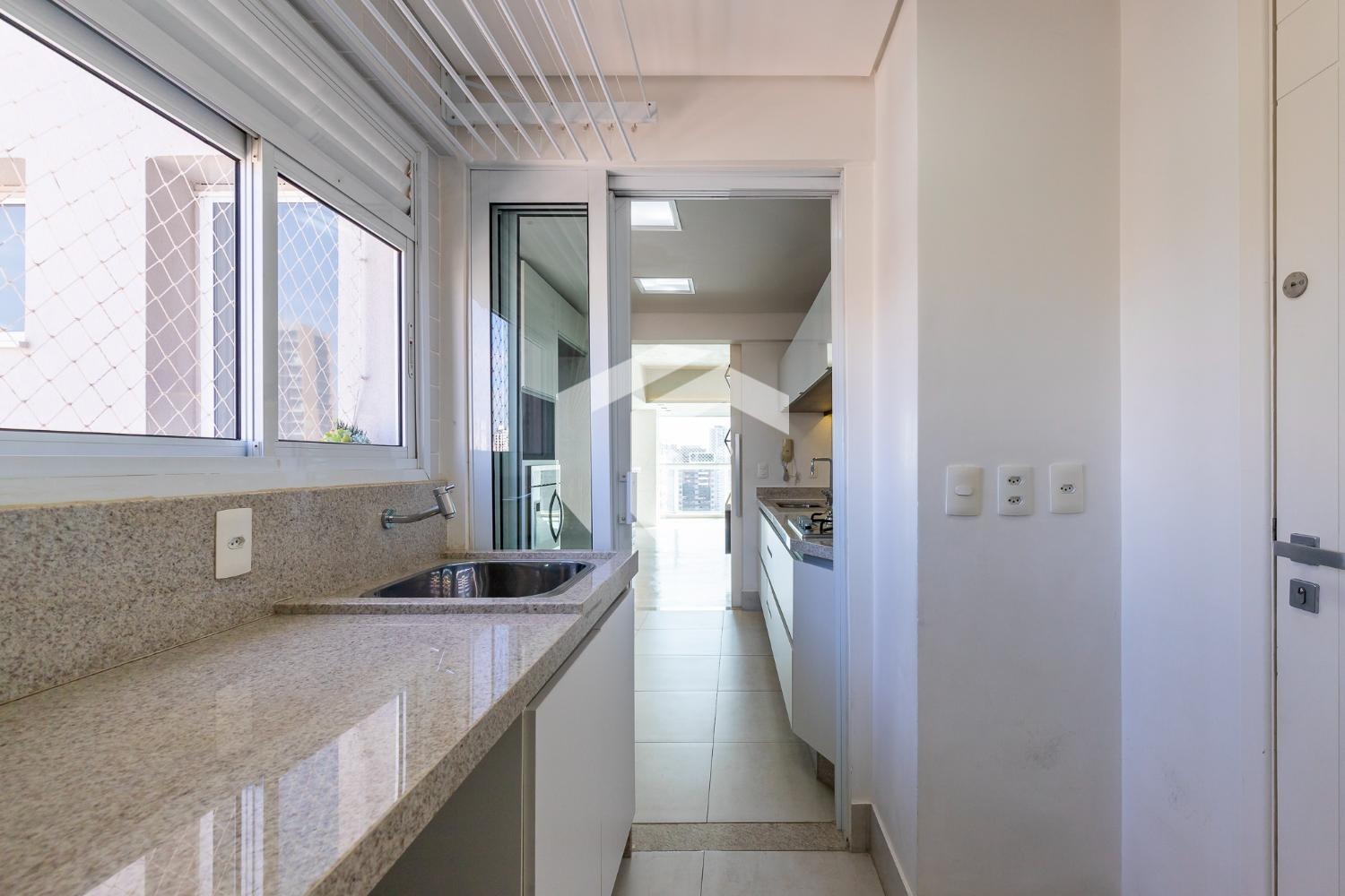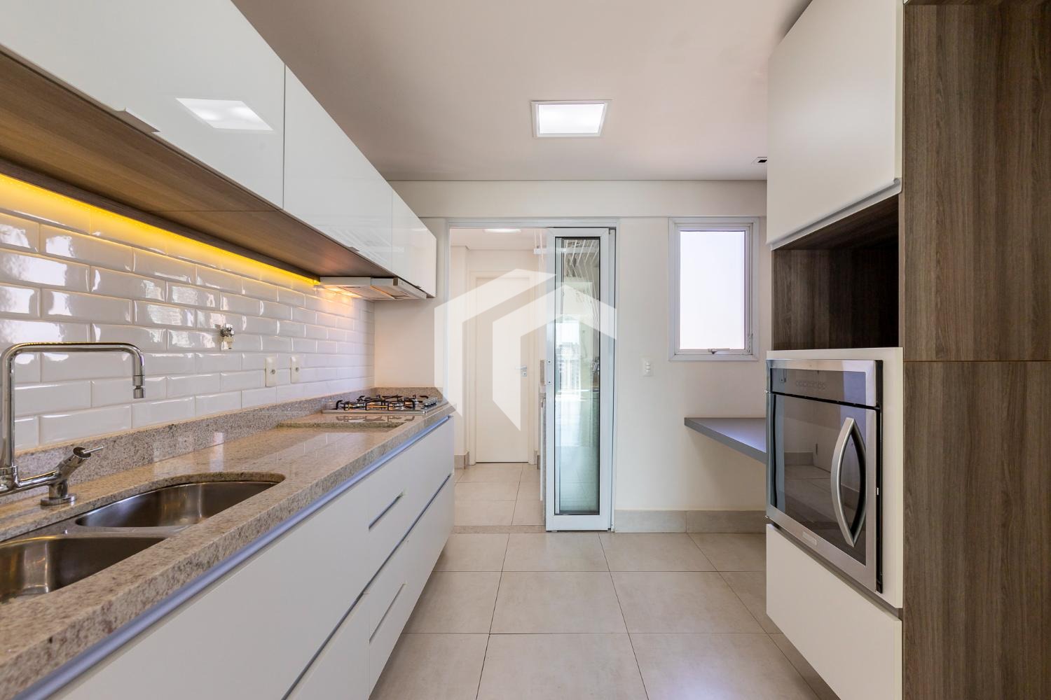 Cozinha totalmente planejada com torre quente e área de serviço com wc de serviço.