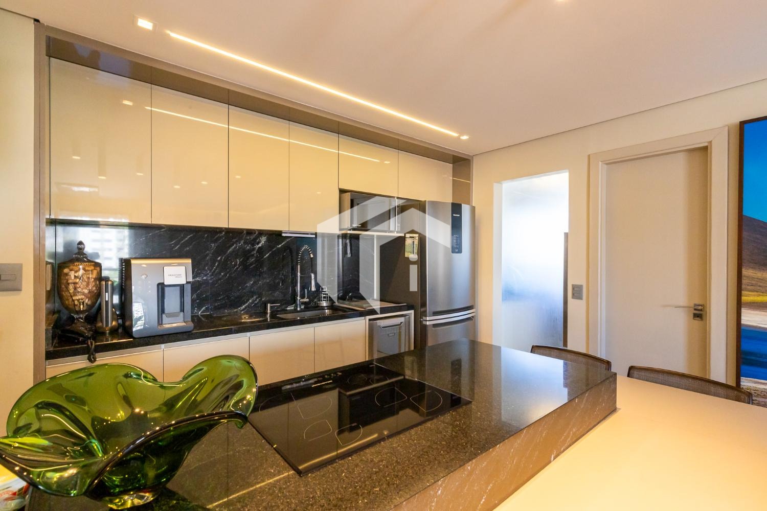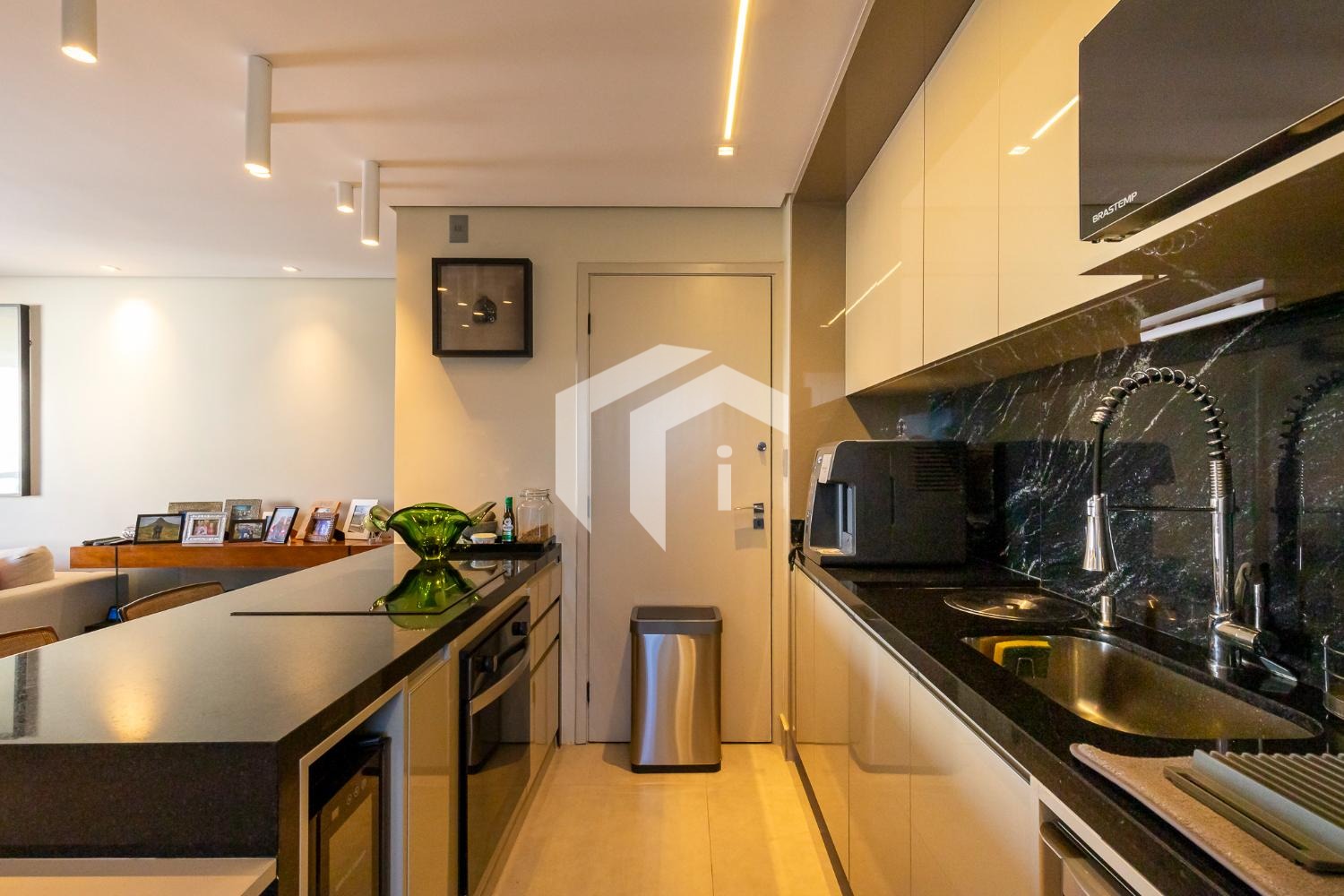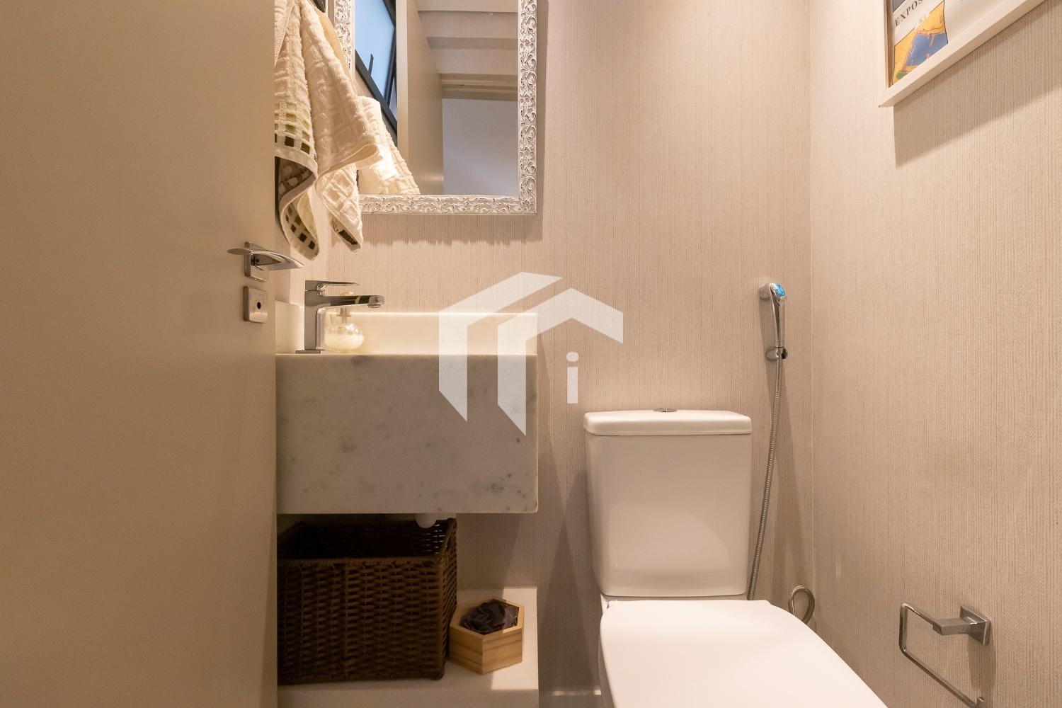 Living climatizado para 2 ambientes com uma convidativa varanda e lavabo, integrado à uma sofisticada e planejada cozinha americana, mais, área de serviço.