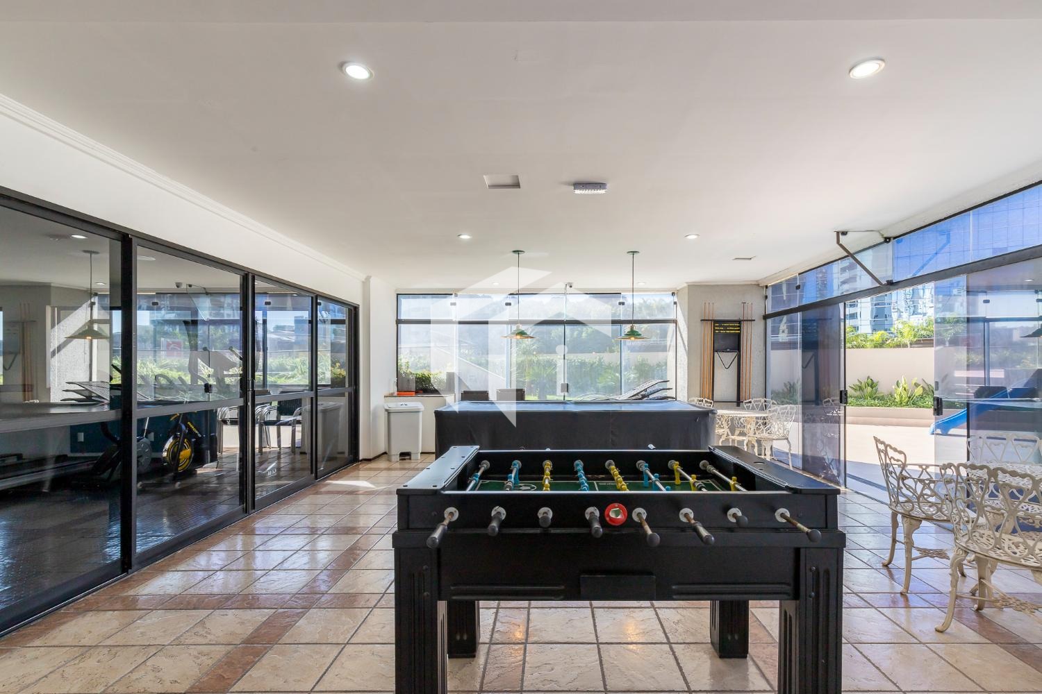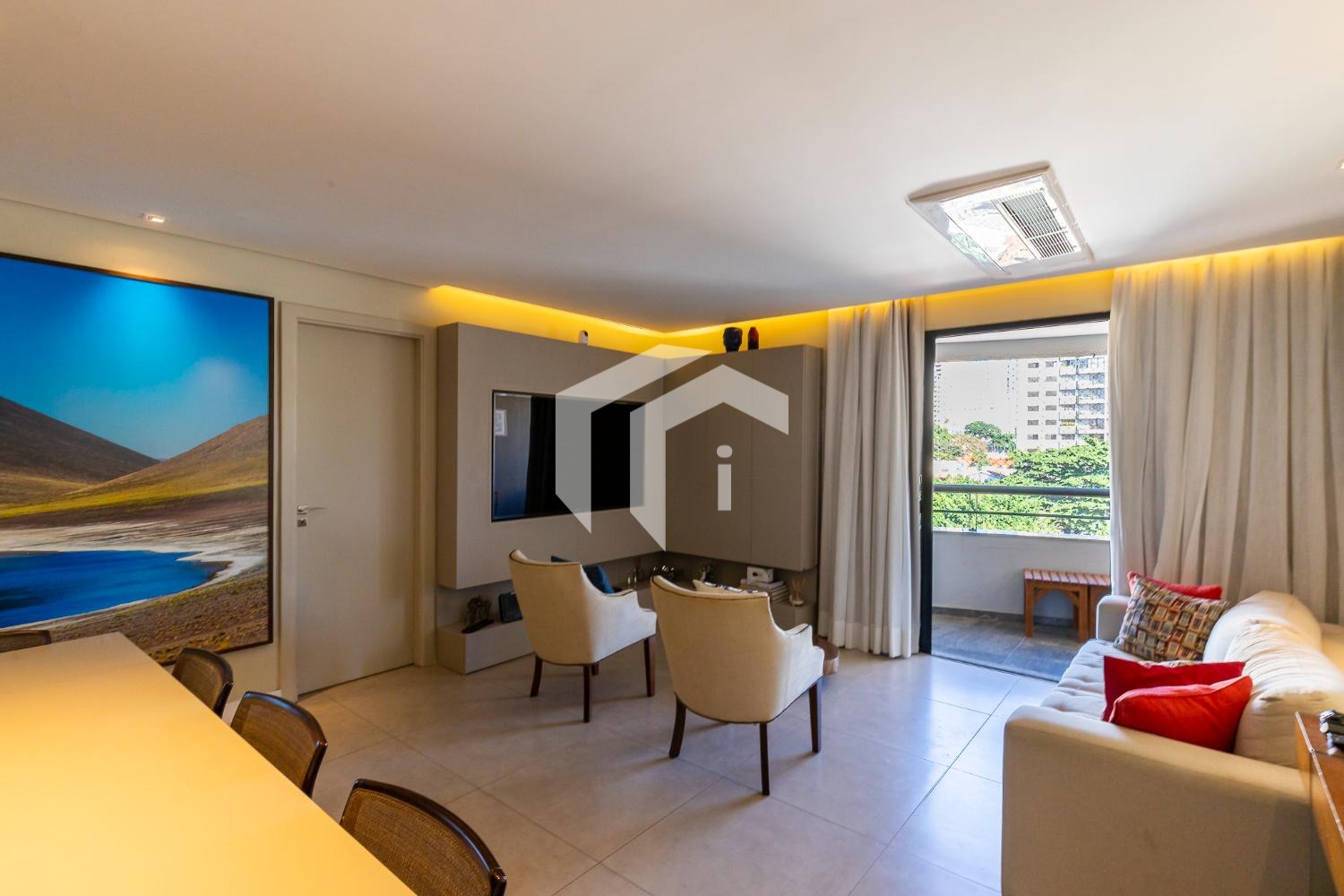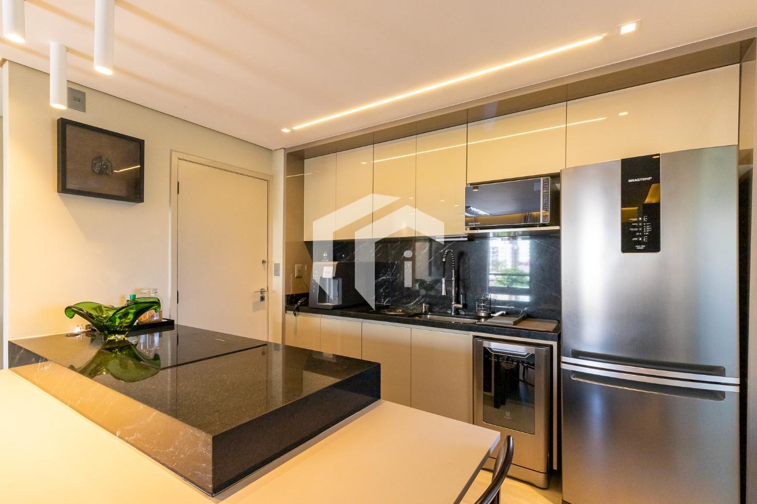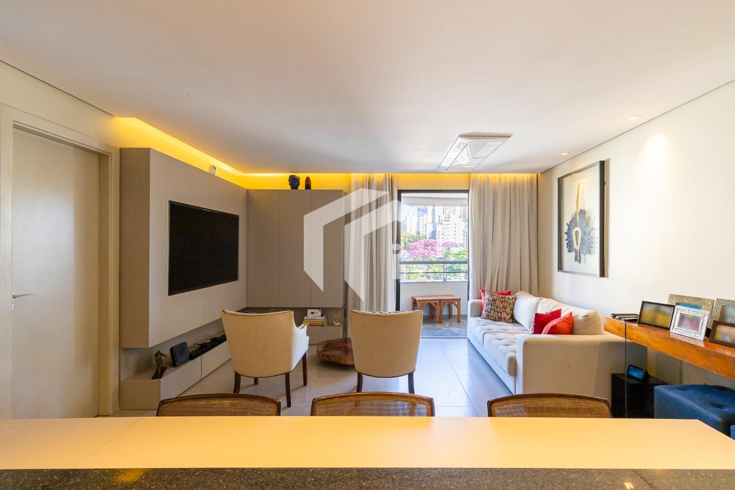Living climatizado para 2 ambientes com uma convidativa varanda e lavabo, integrado à uma sofisticada e planejada cozinha americana, mais, área de serviço.