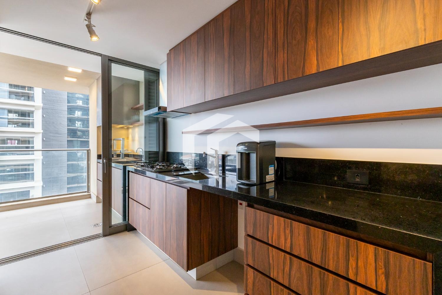 Confortável living climatizado para 3 ambientes com lavabo e integrado à uma convidativa varanda gourmet.
