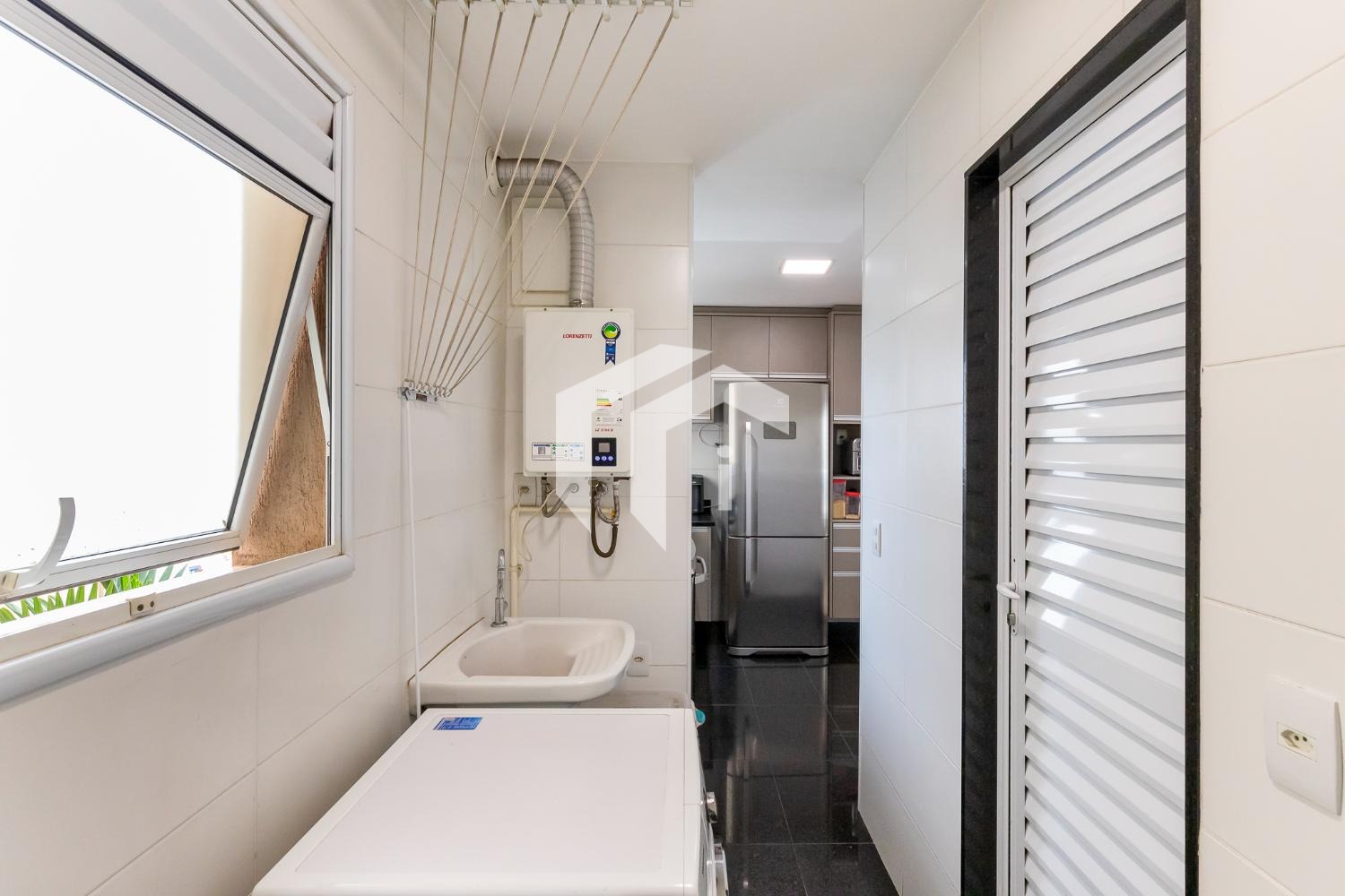 Living para 3 ambientes com lavabo, varanda gourmet, além da cozinha planejada e área de serviço com wc de serviço.