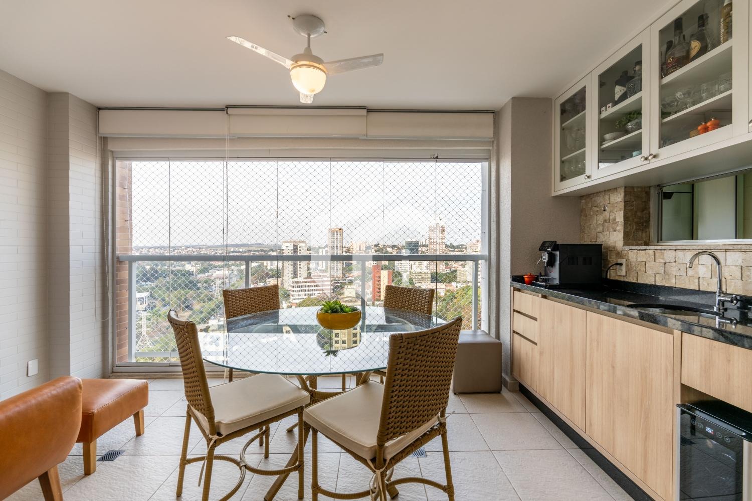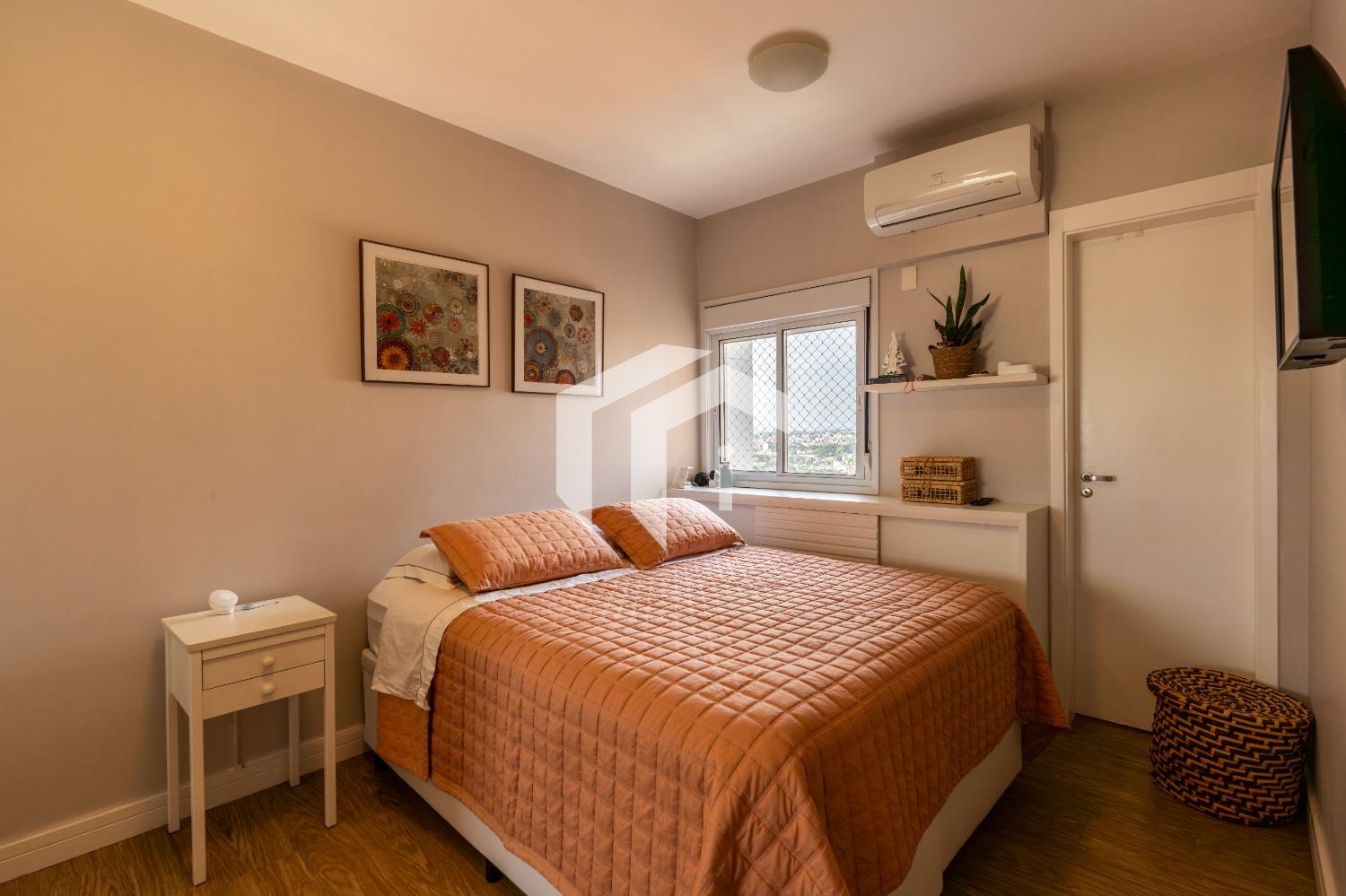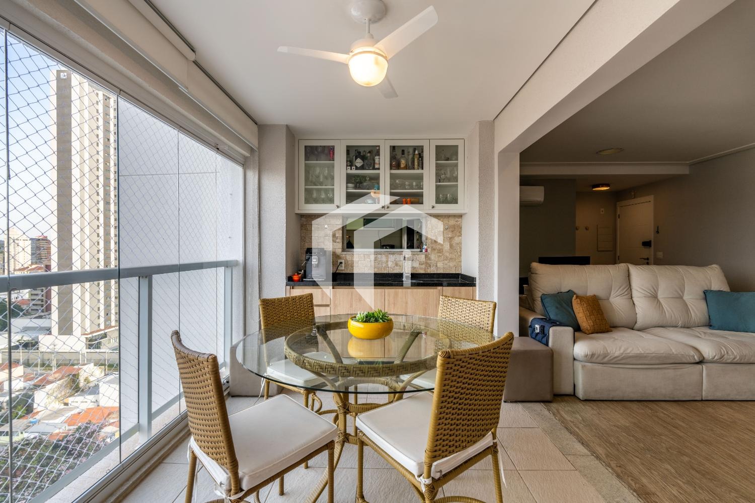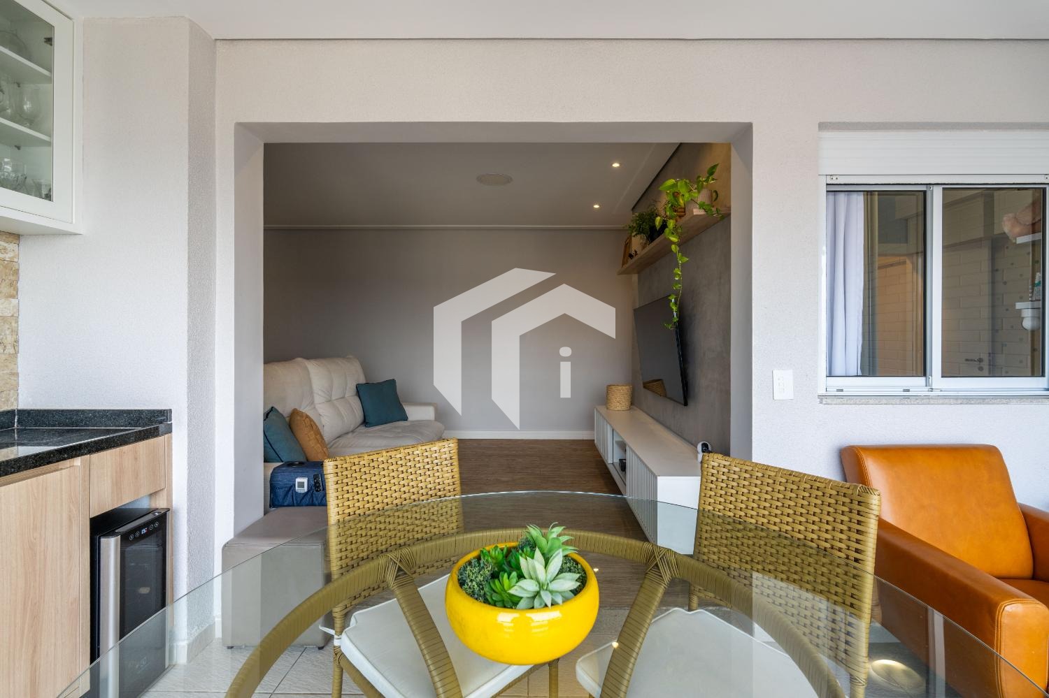 Sala ampla para 2 ambientes, climatizada e integrada à varanda gourmet, mais, o lavabo para o seu conforto.