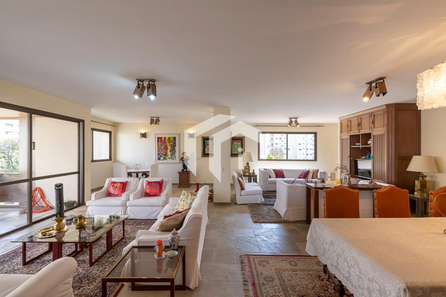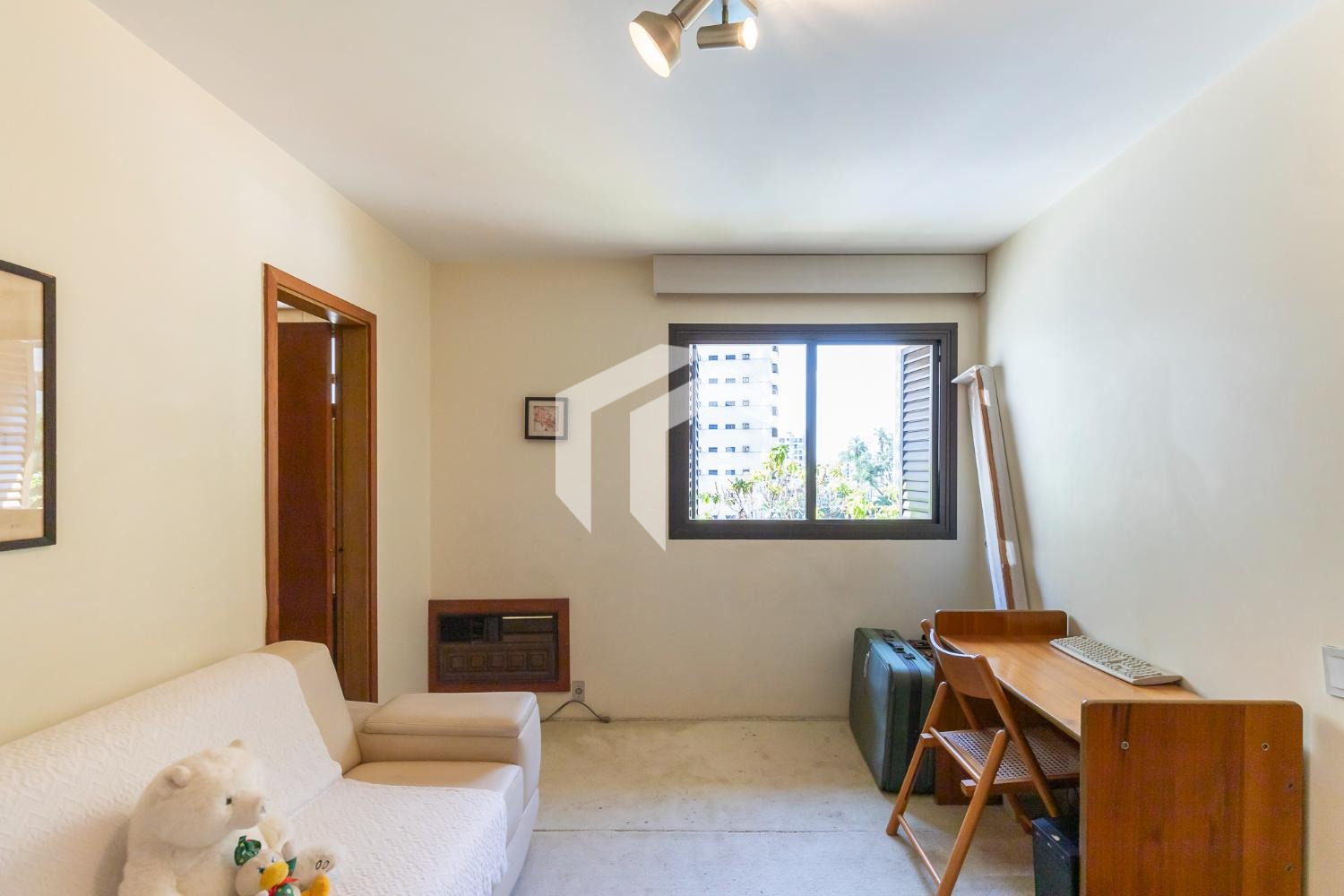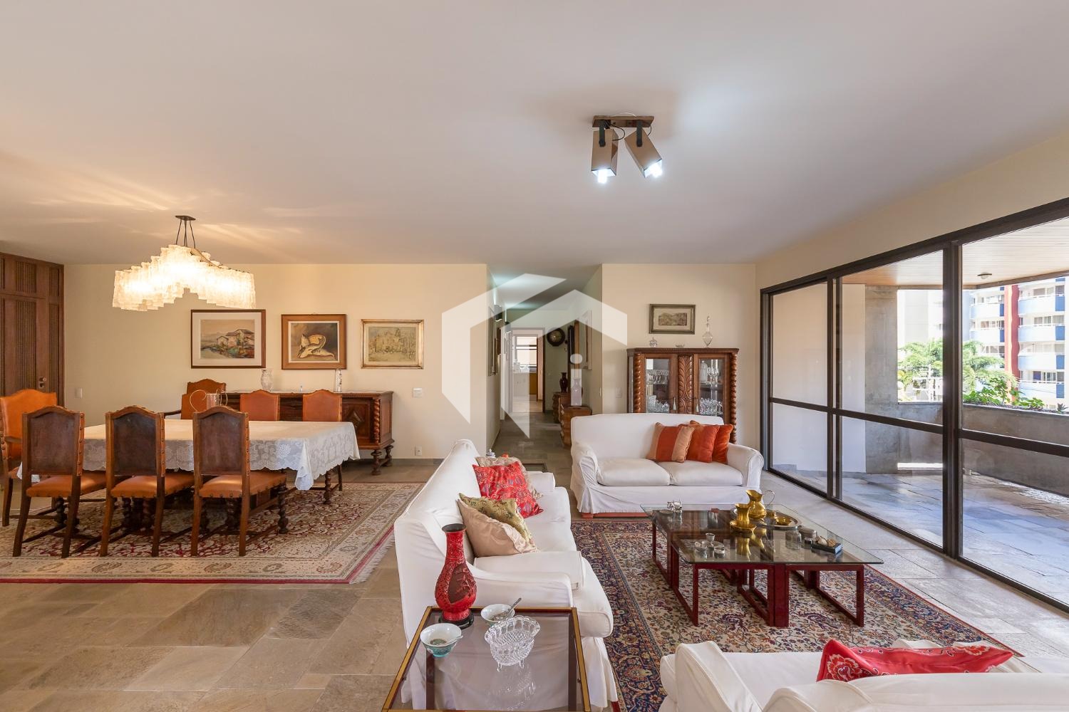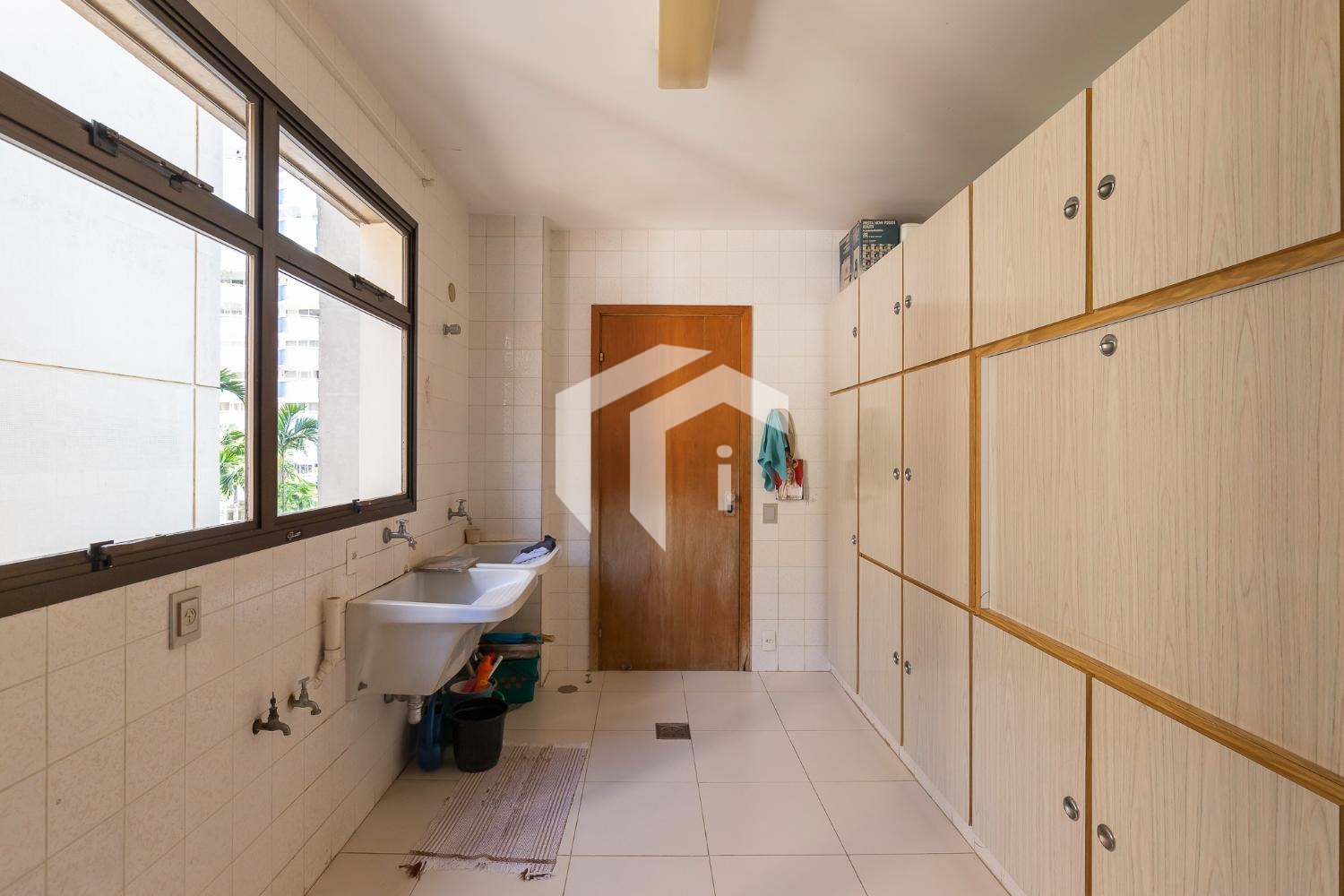 Situado em um andar intermediário, o imóvel possui um amplo living para quatro ambientes com varanda, escritório, sala de almoço, cozinha planejada e dependência de serviço completa.