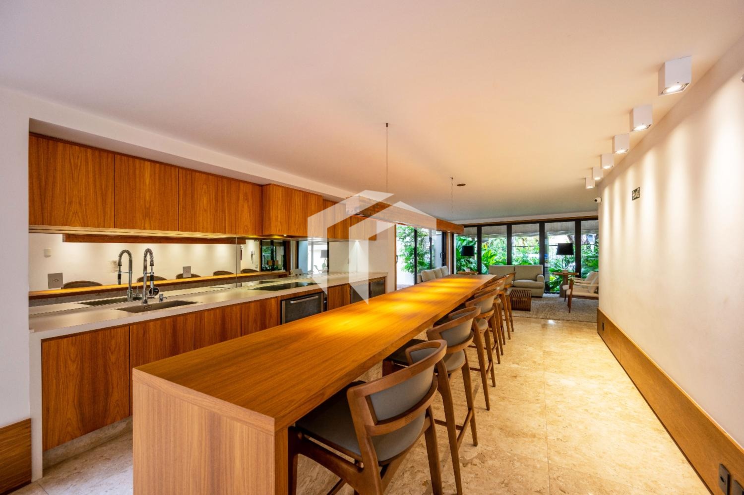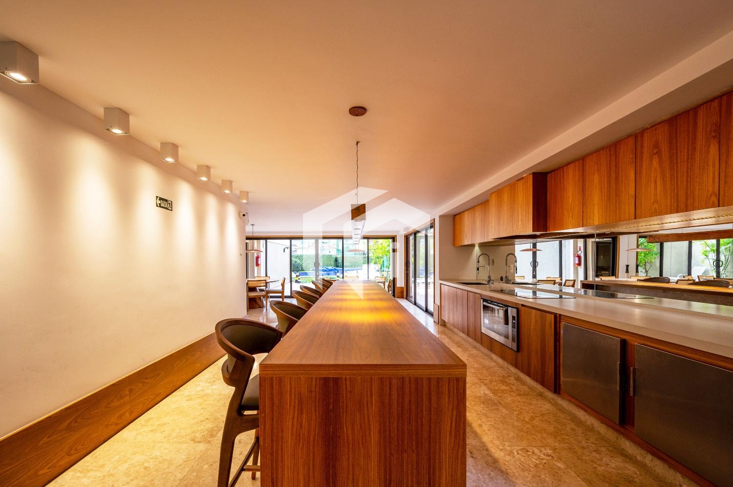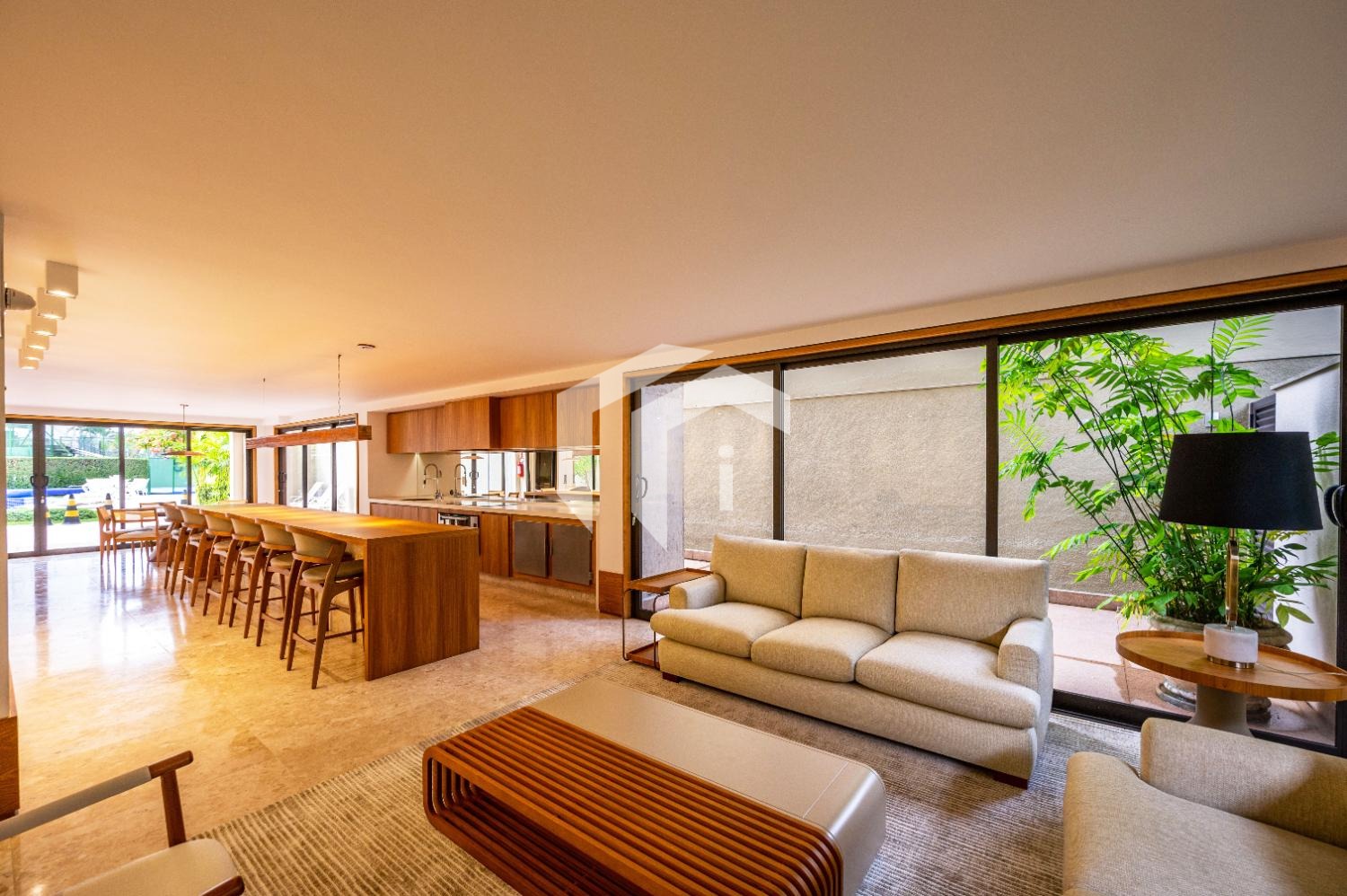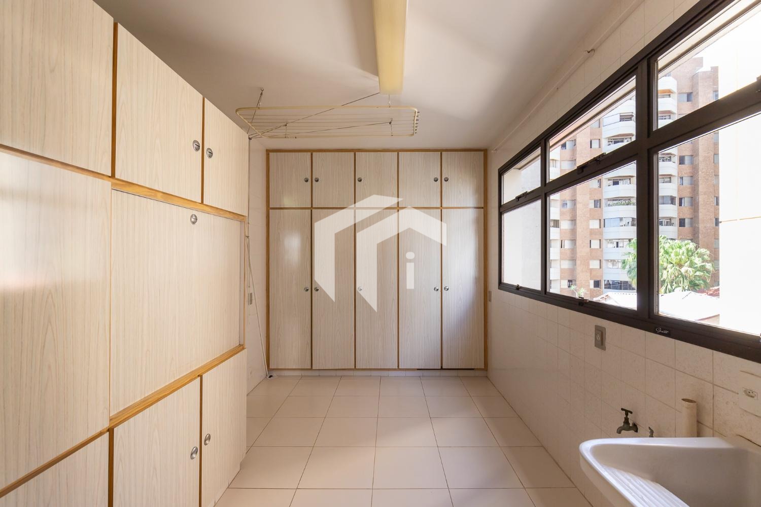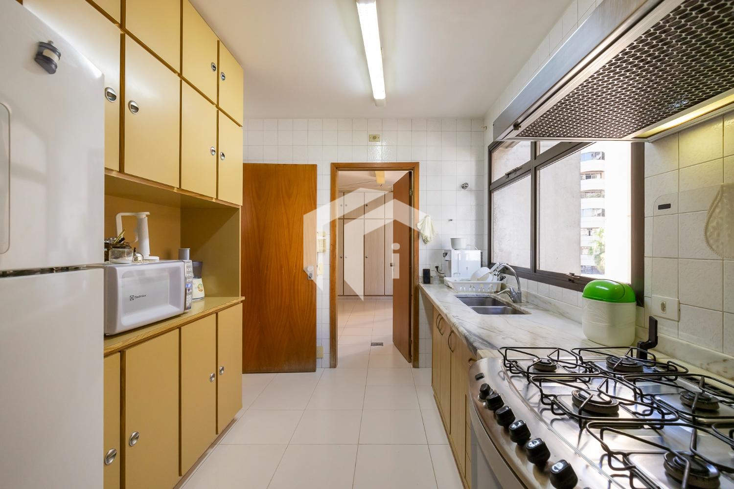 Situado em um andar intermediário, o imóvel possui um amplo living para quatro ambientes com varanda, escritório, sala de almoço, cozinha planejada e dependência de serviço completa.