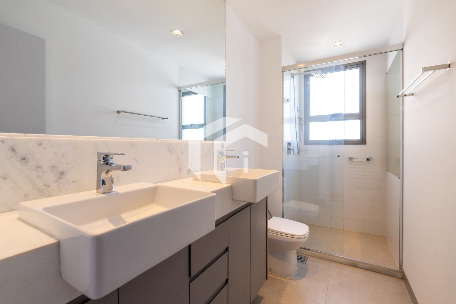 Amplo living climatizado para 2 ambientes com lavabo.