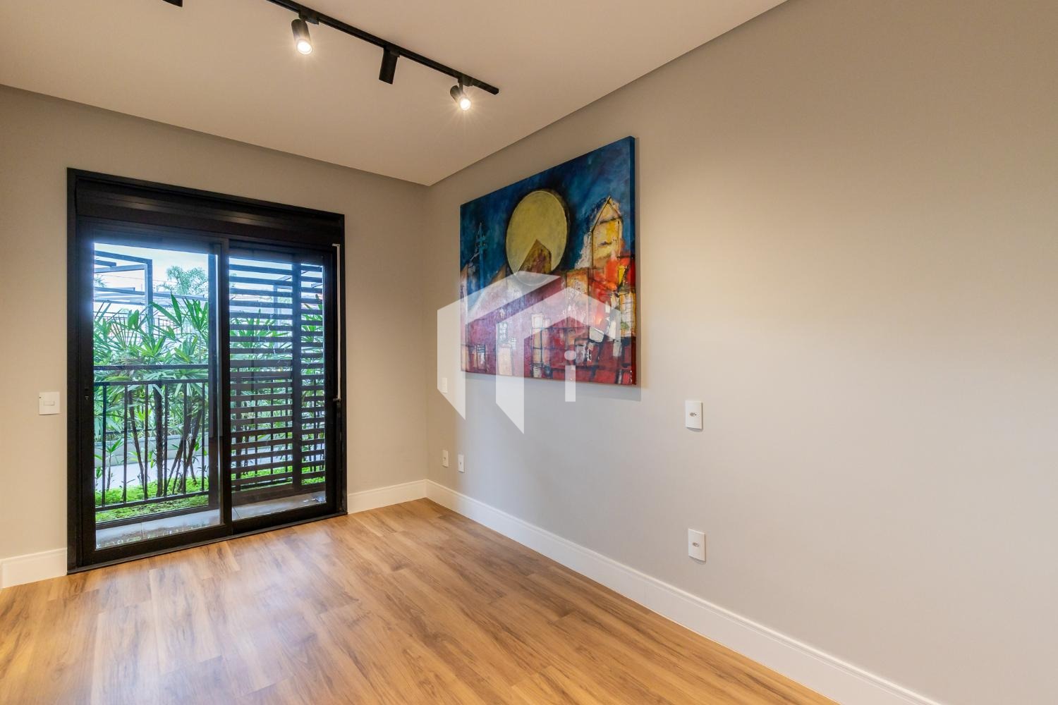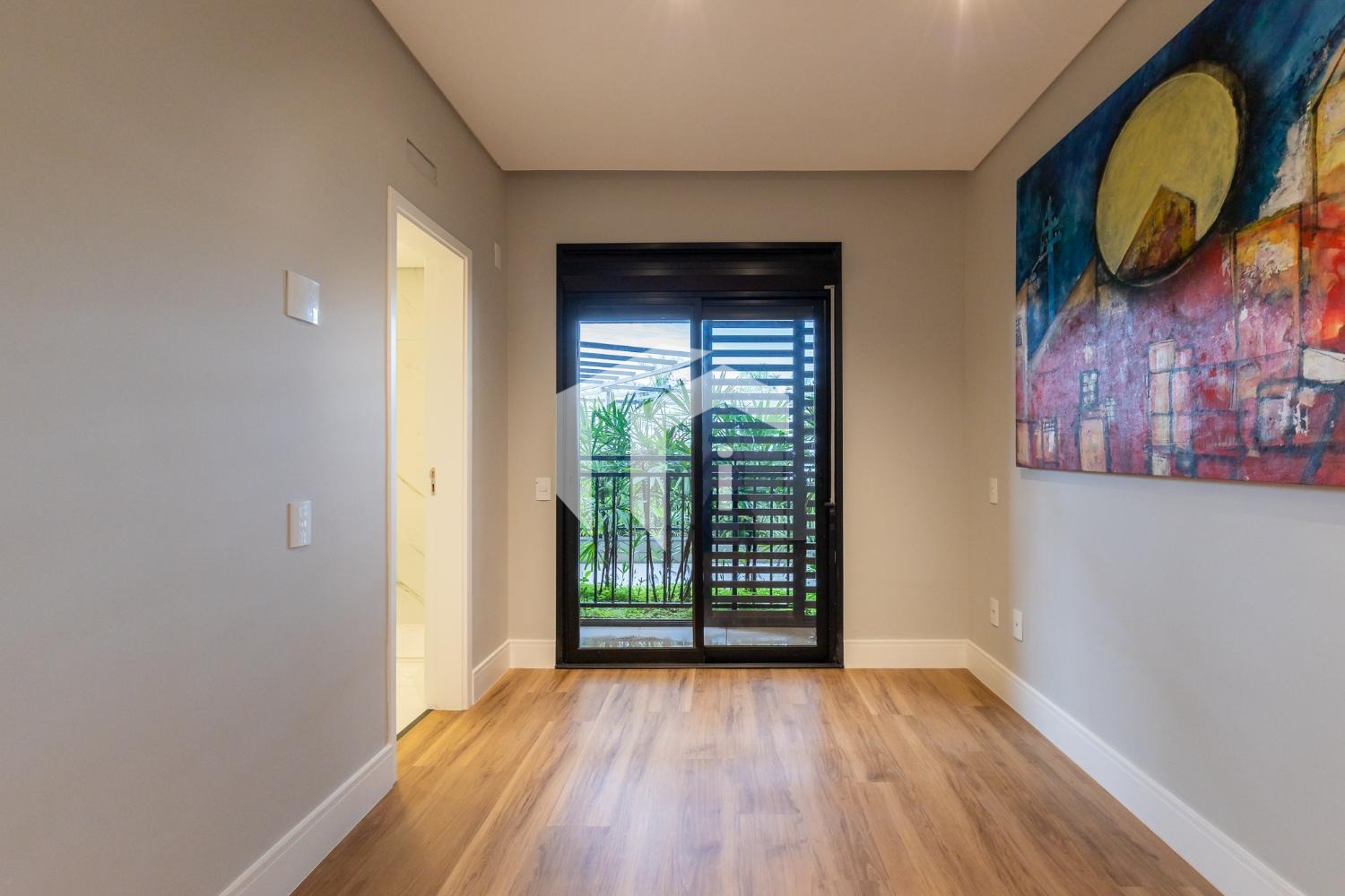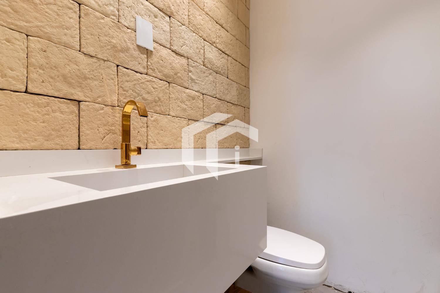 Living climatizado para 2 ambientes com home office e lavabo, integrado à área gourmet do imóvel com quintal privativo.