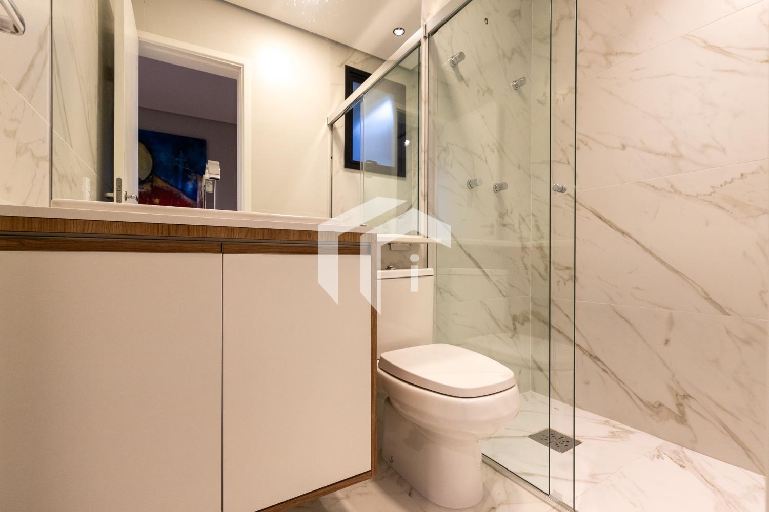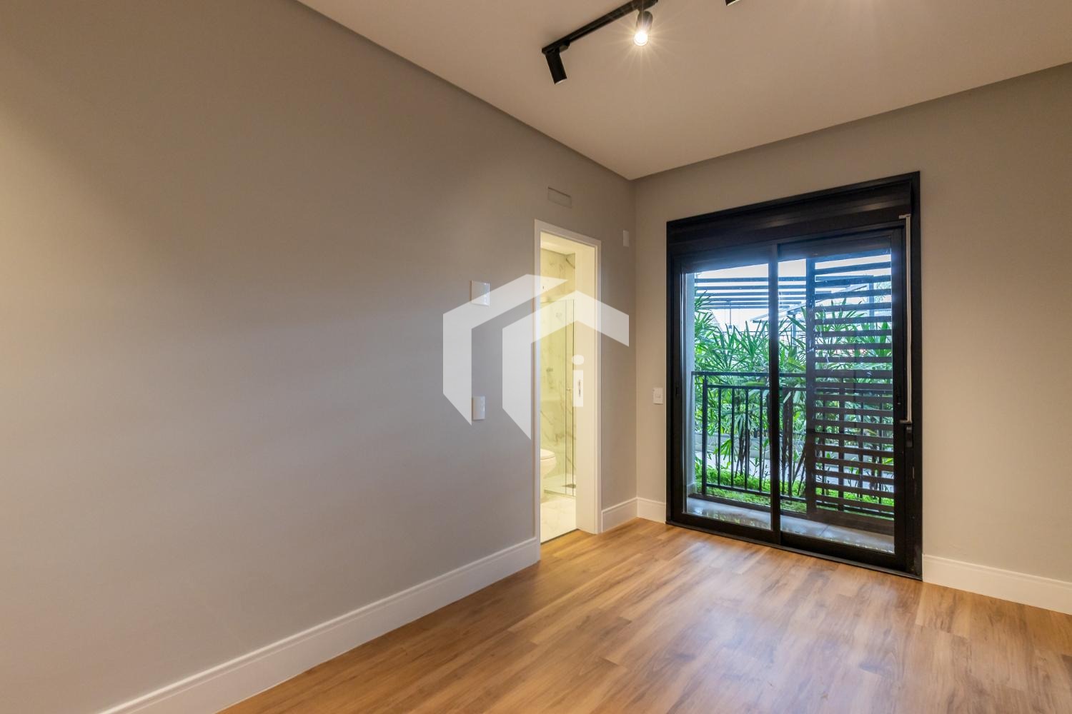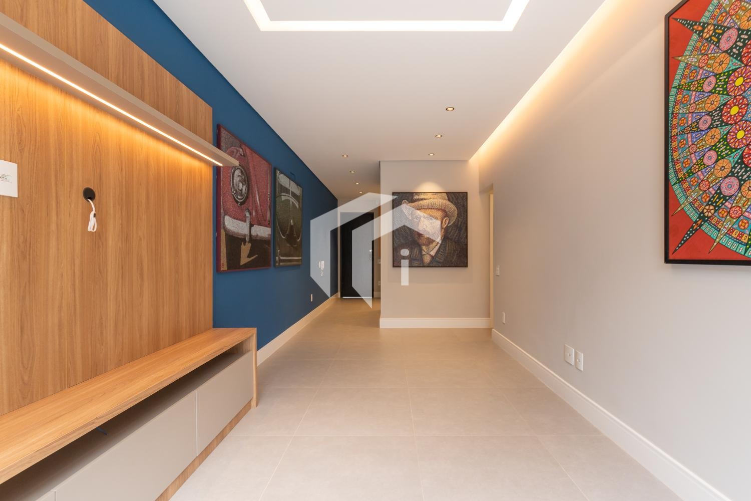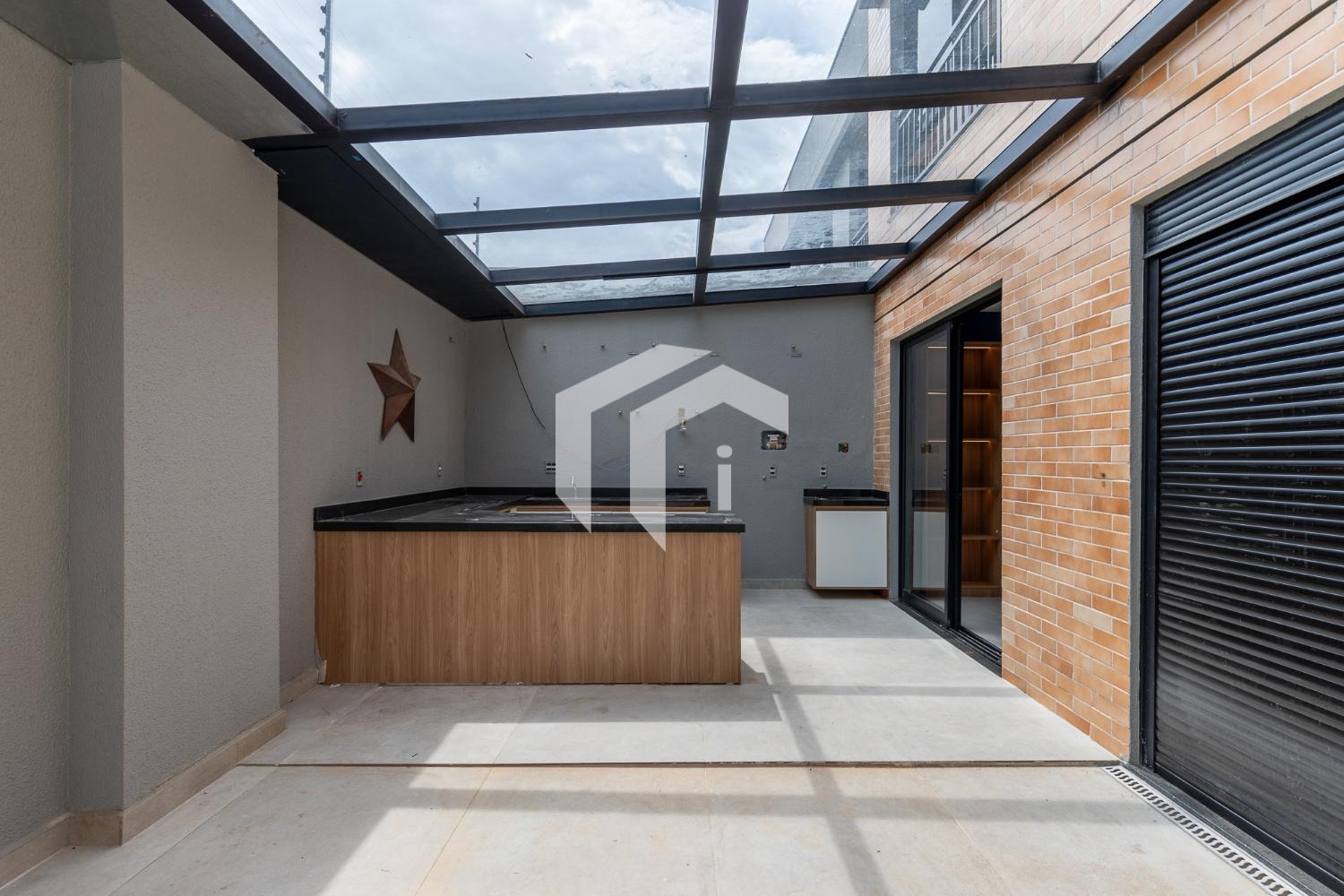 Living climatizado para 2 ambientes com home office e lavabo, integrado à área gourmet do imóvel com quintal privativo.