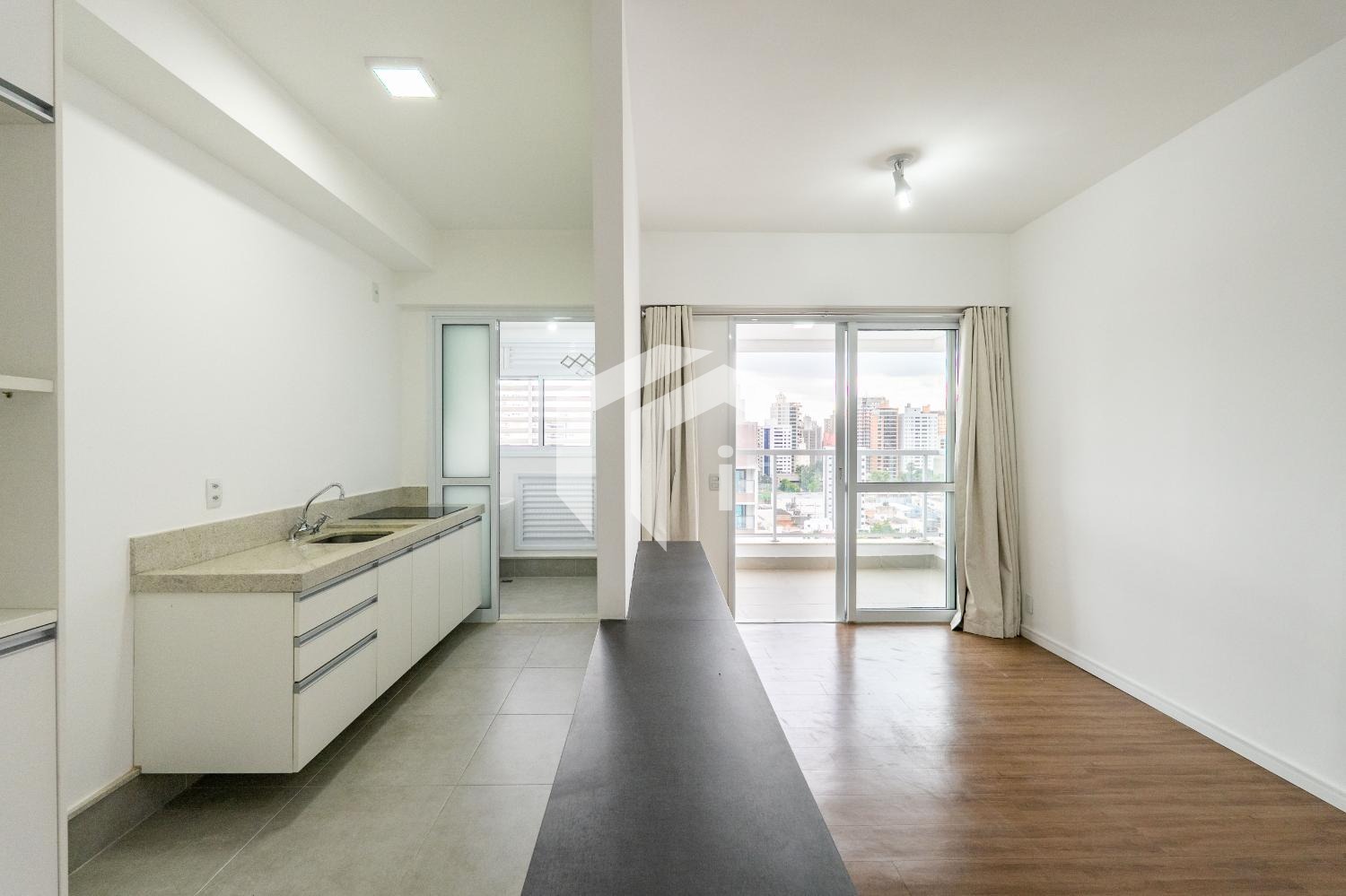 58m², 1 quarto (suíte), lavabo, sala para 2 ambientes, cozinha aberta, integrando com sala e varanda gourmet.