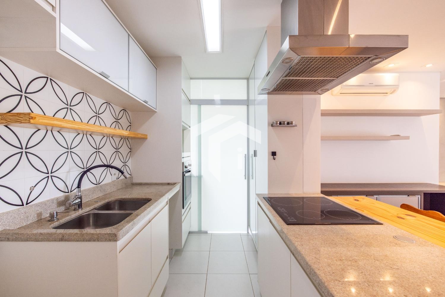 Cozinha americana rica em planejados e completa com eletrodomésticos, mais, área de serviço equipada.