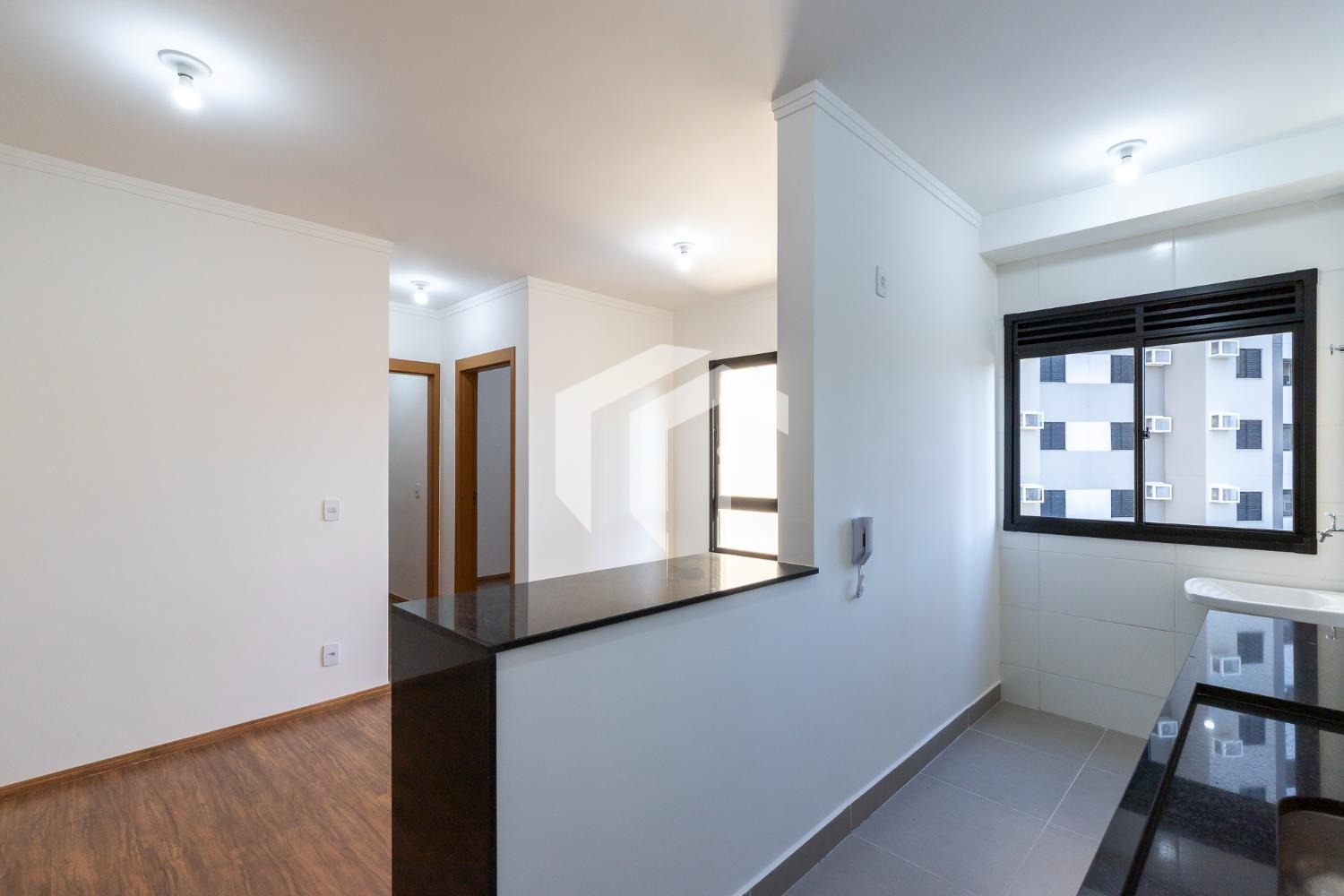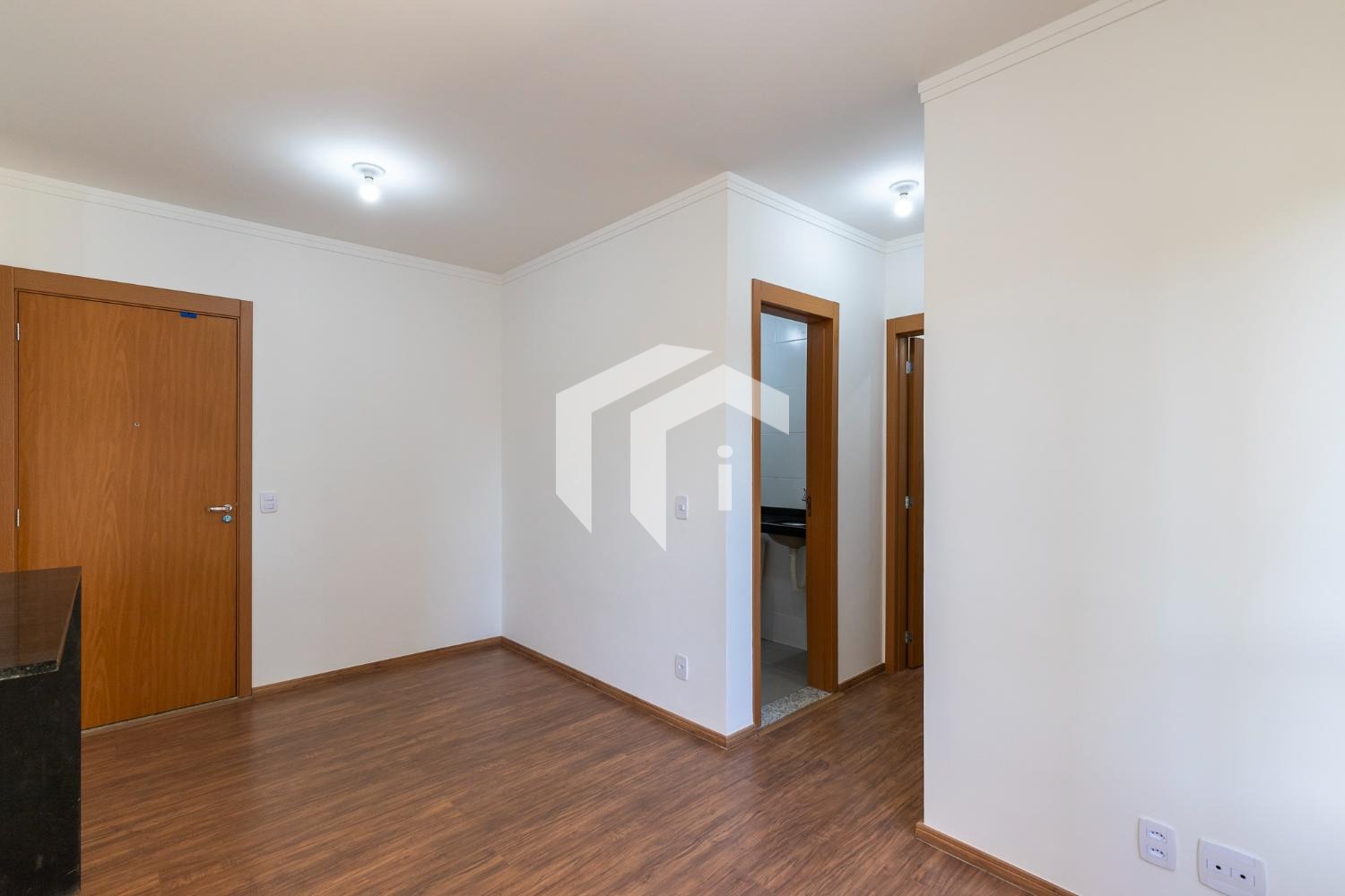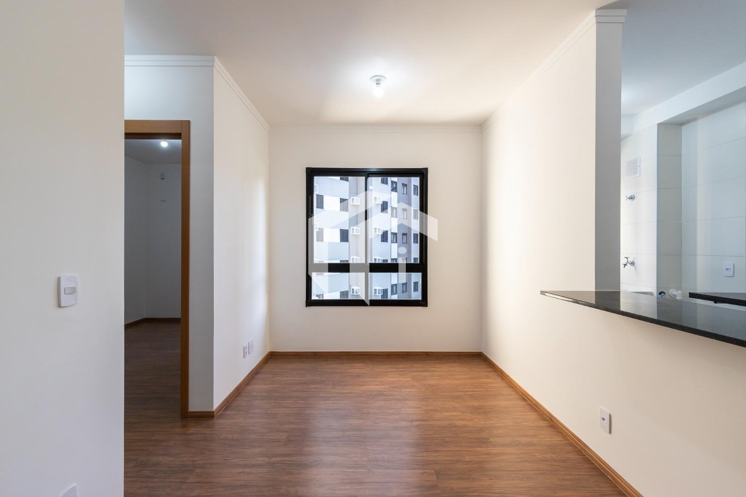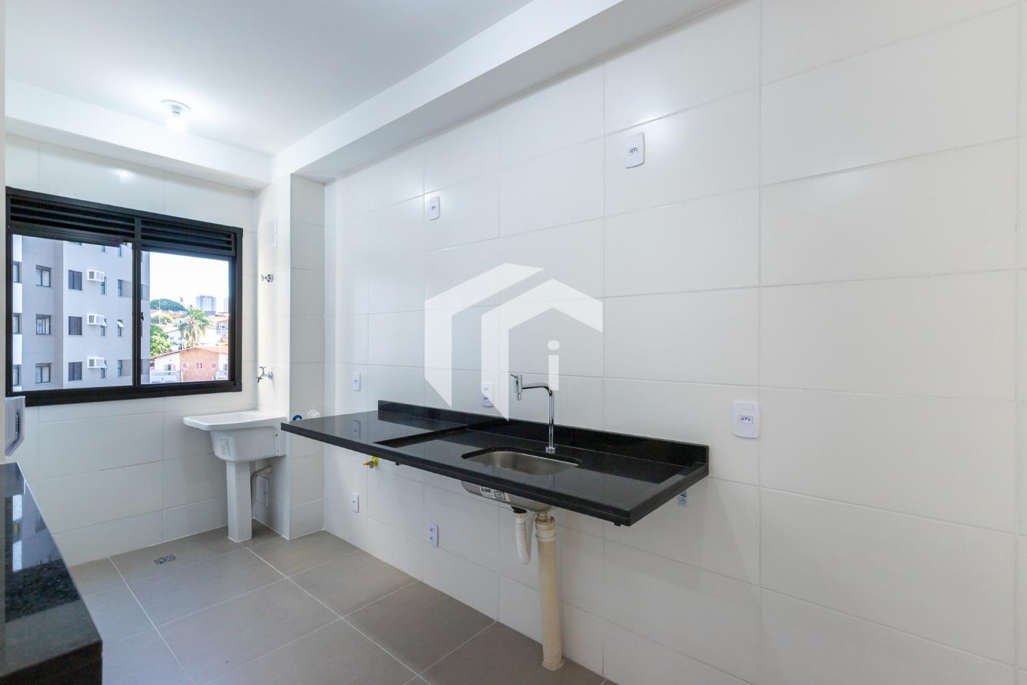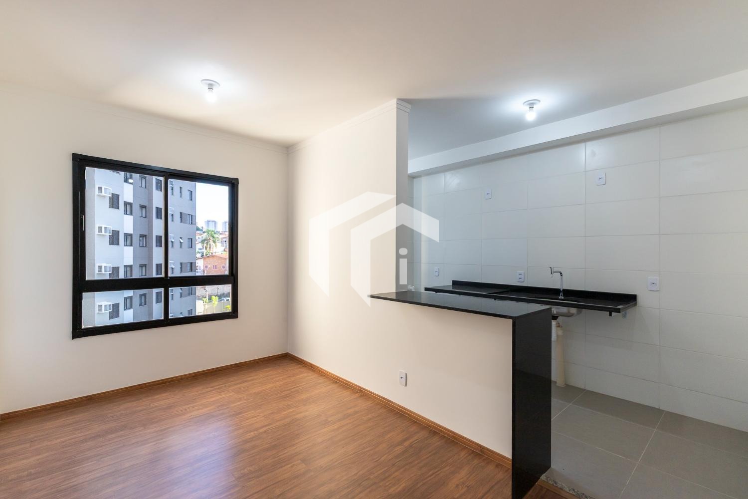 Sala para 2 ambientes integrada à cozinha americana e área de serviço.