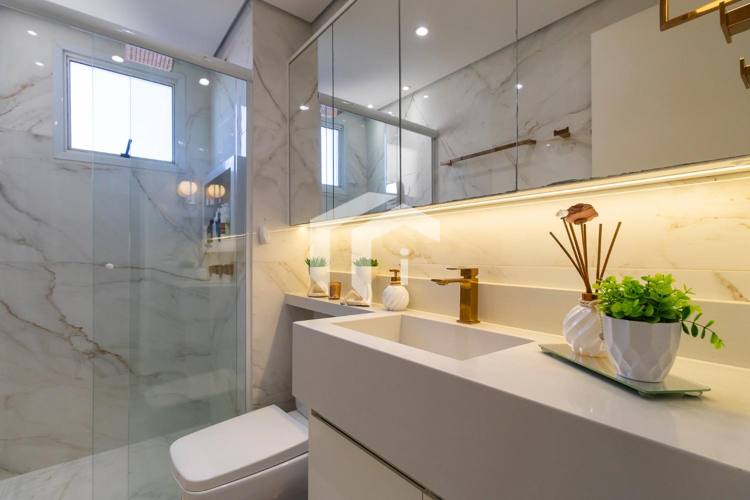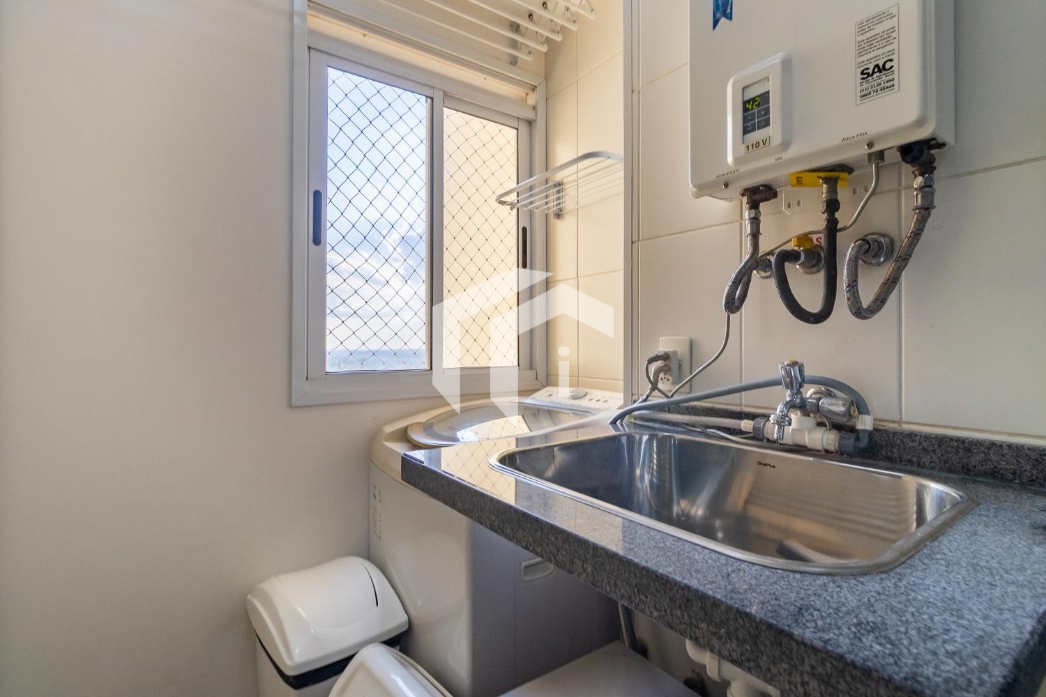 • Área de serviço com armários e aquecedor.