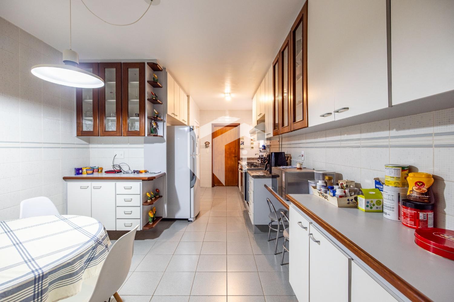 Cozinha espaçosa com despensa, área de serviço com banheiro de apoio.