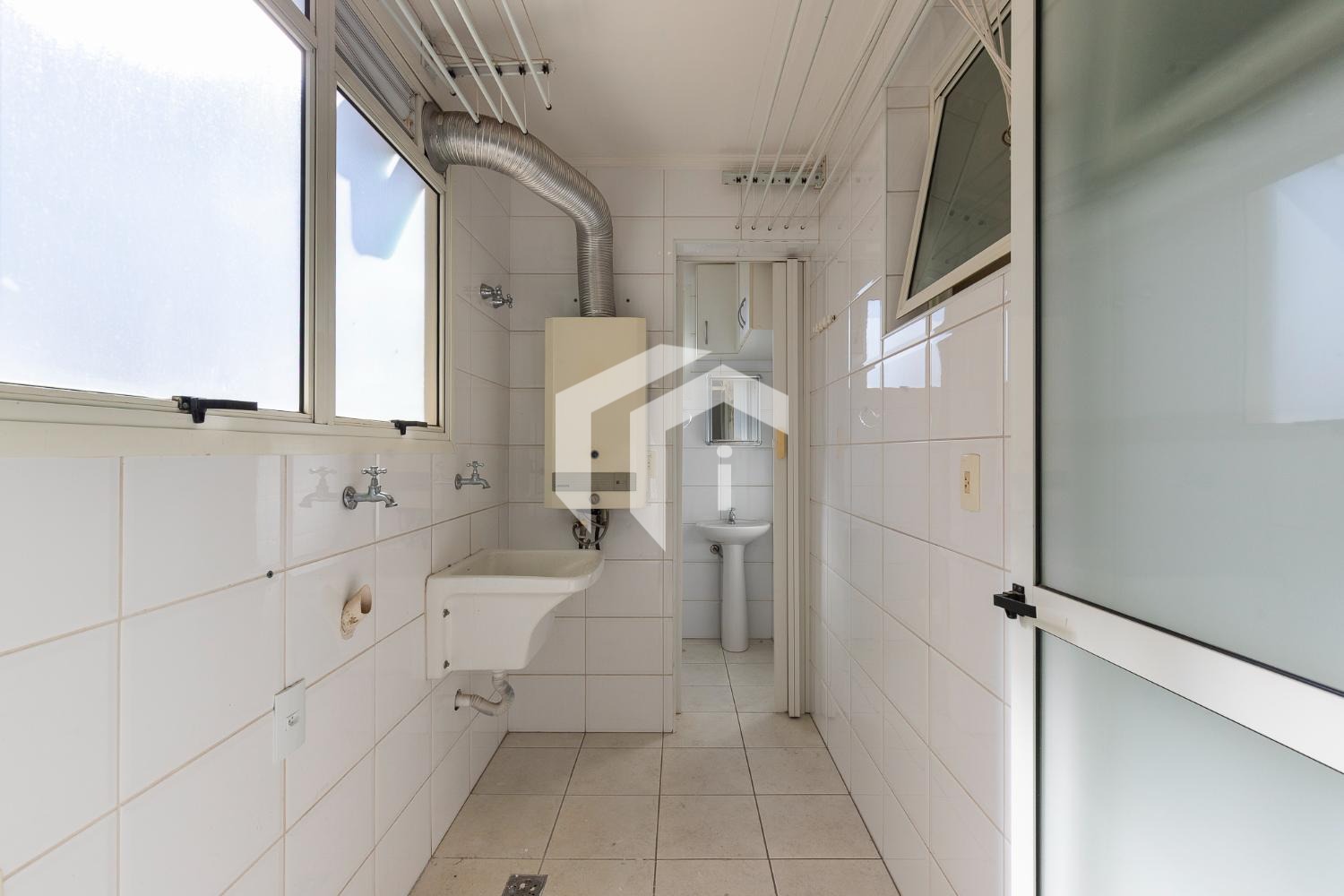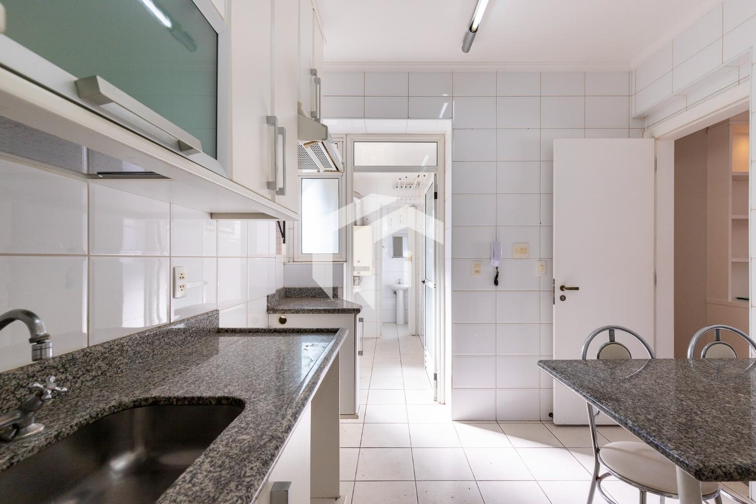 Ampla cozinha planejada com área de serviço e wc de serviço.
