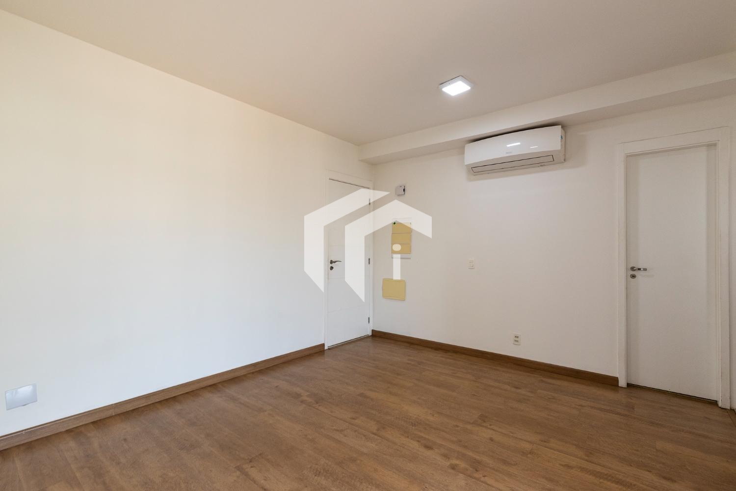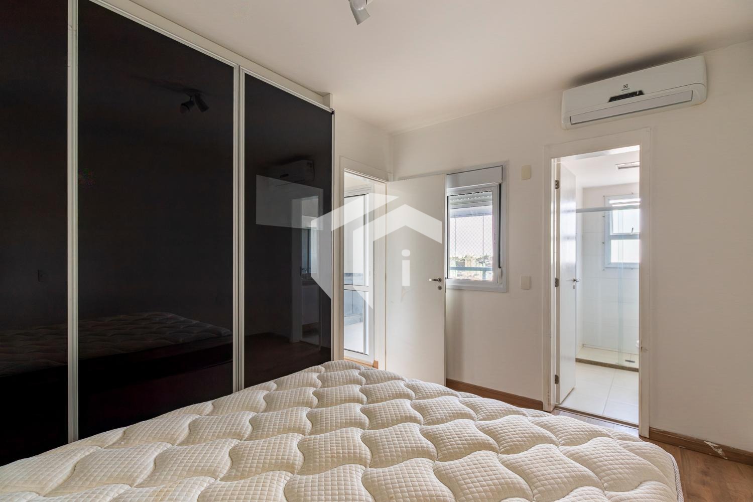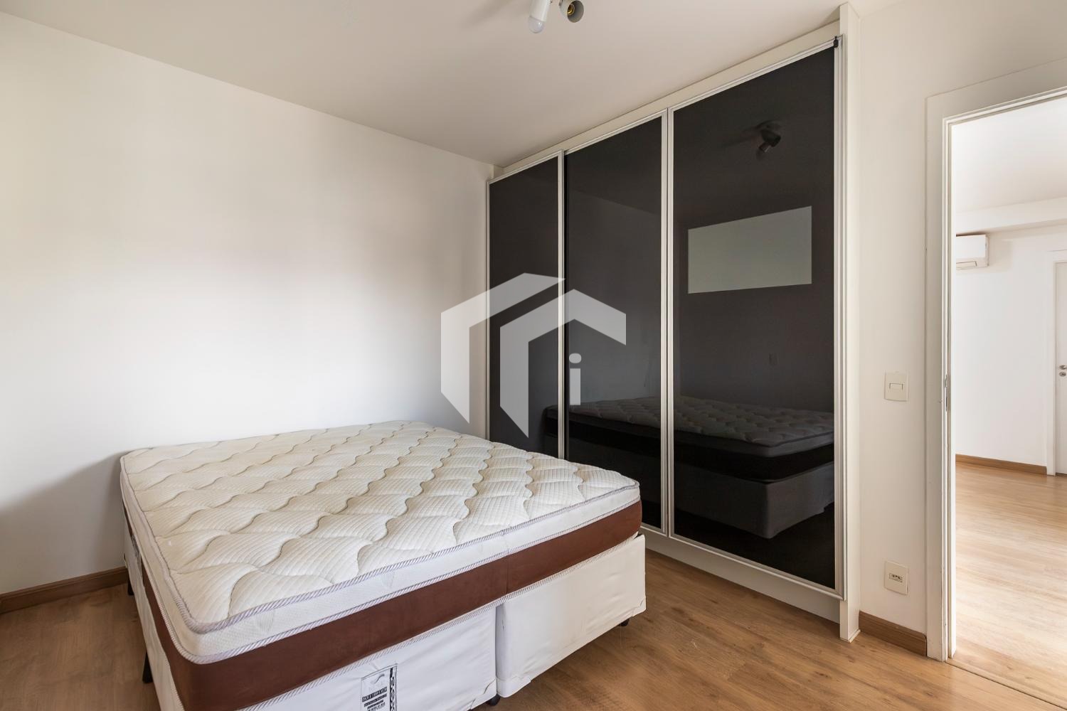 Apartamento 1 suíte climatizada, cama, tv e armários planejados, ar condicionado.