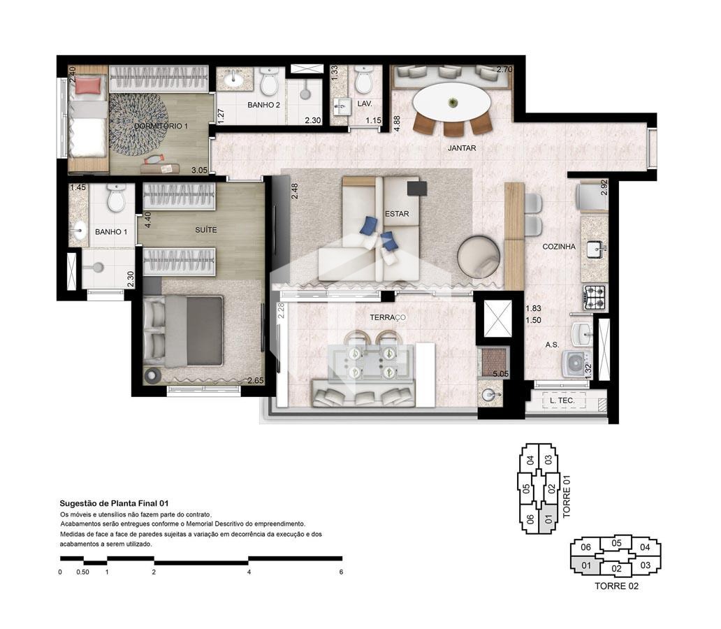 • Luxuoso apartamento com 2 suítes amplas, living integrado à varanda com vista incrível e lavabo social.