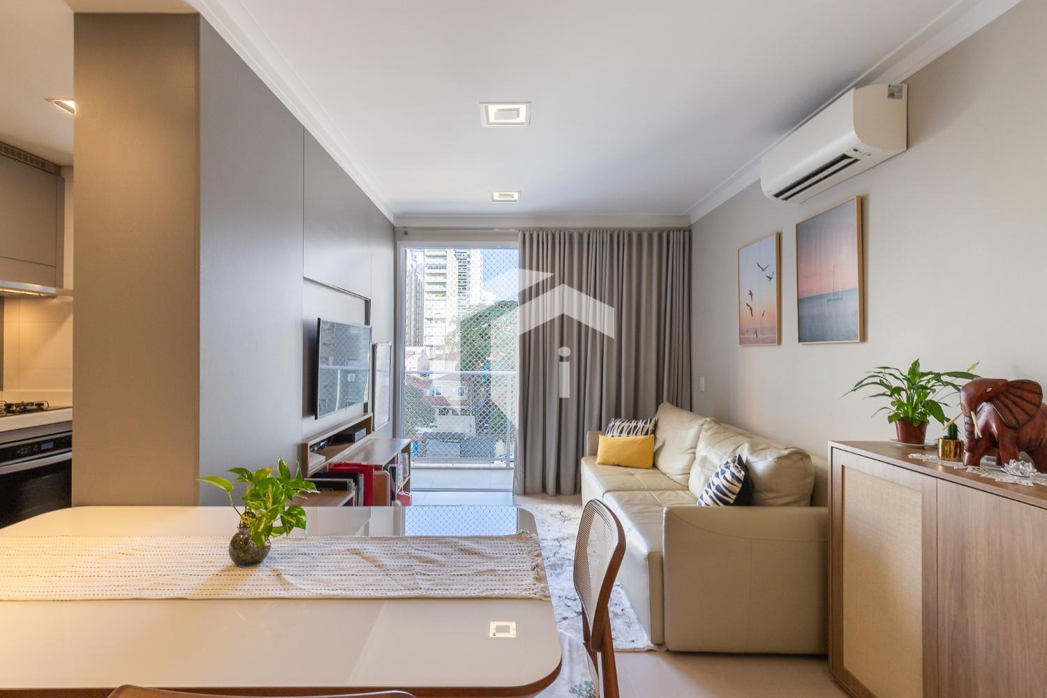 • Espaço nobre com living integrado à varanda, sala de jantar sofisticada e escritório privativo, além de cozinha equipada.