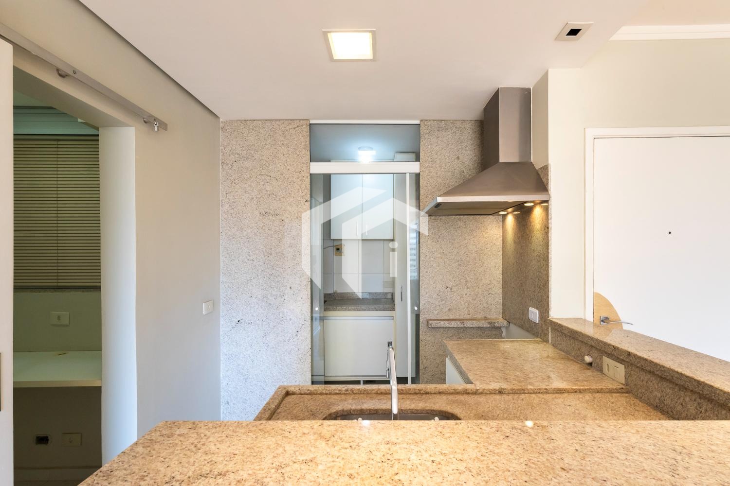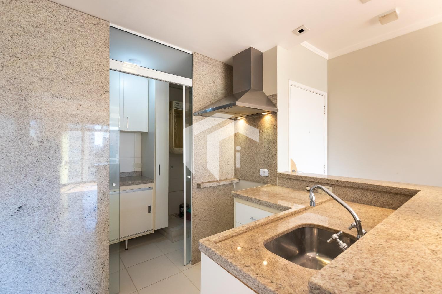 Cozinha americana totalmente integrada com a sala para facilitar a dinâmica do dia a dia.