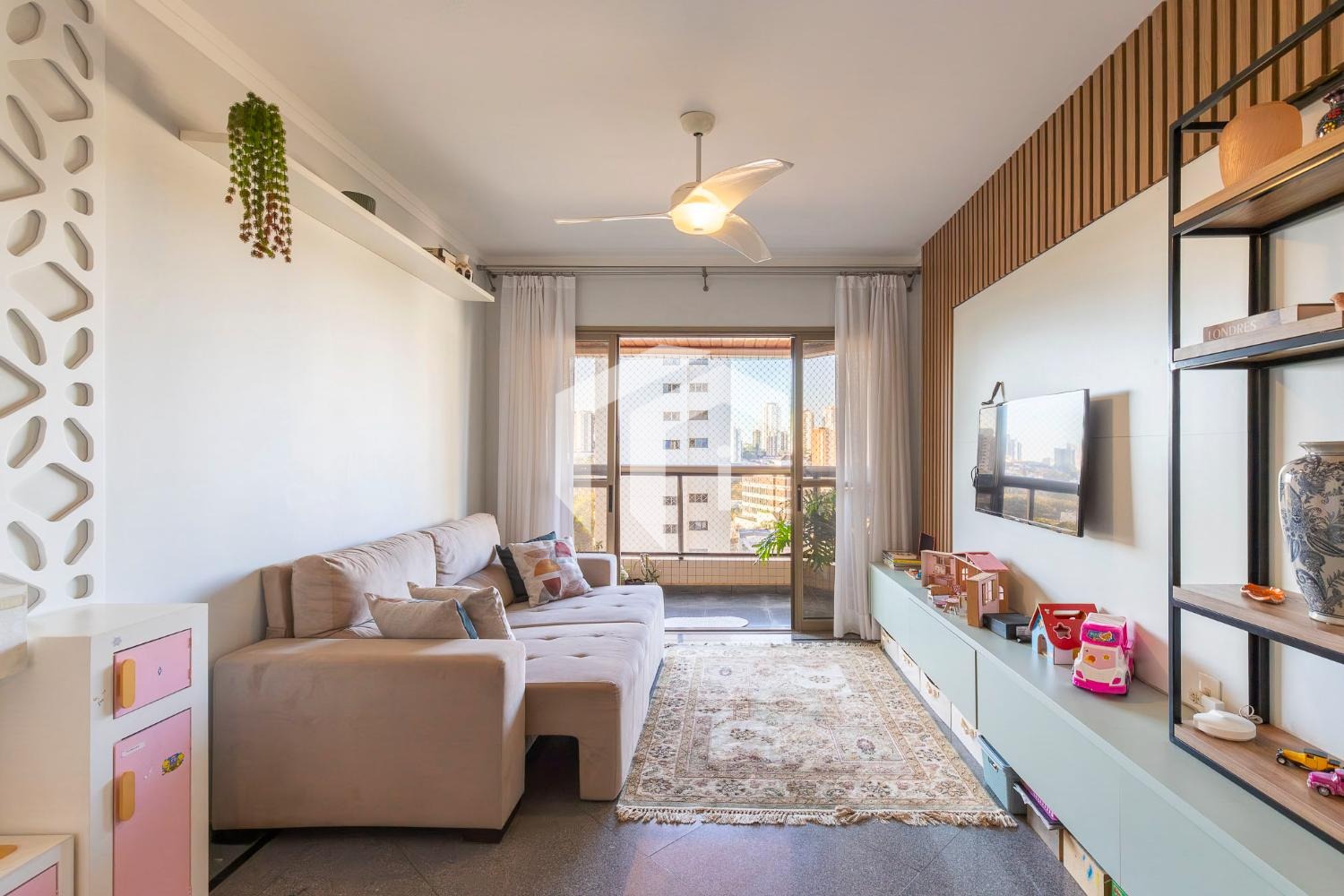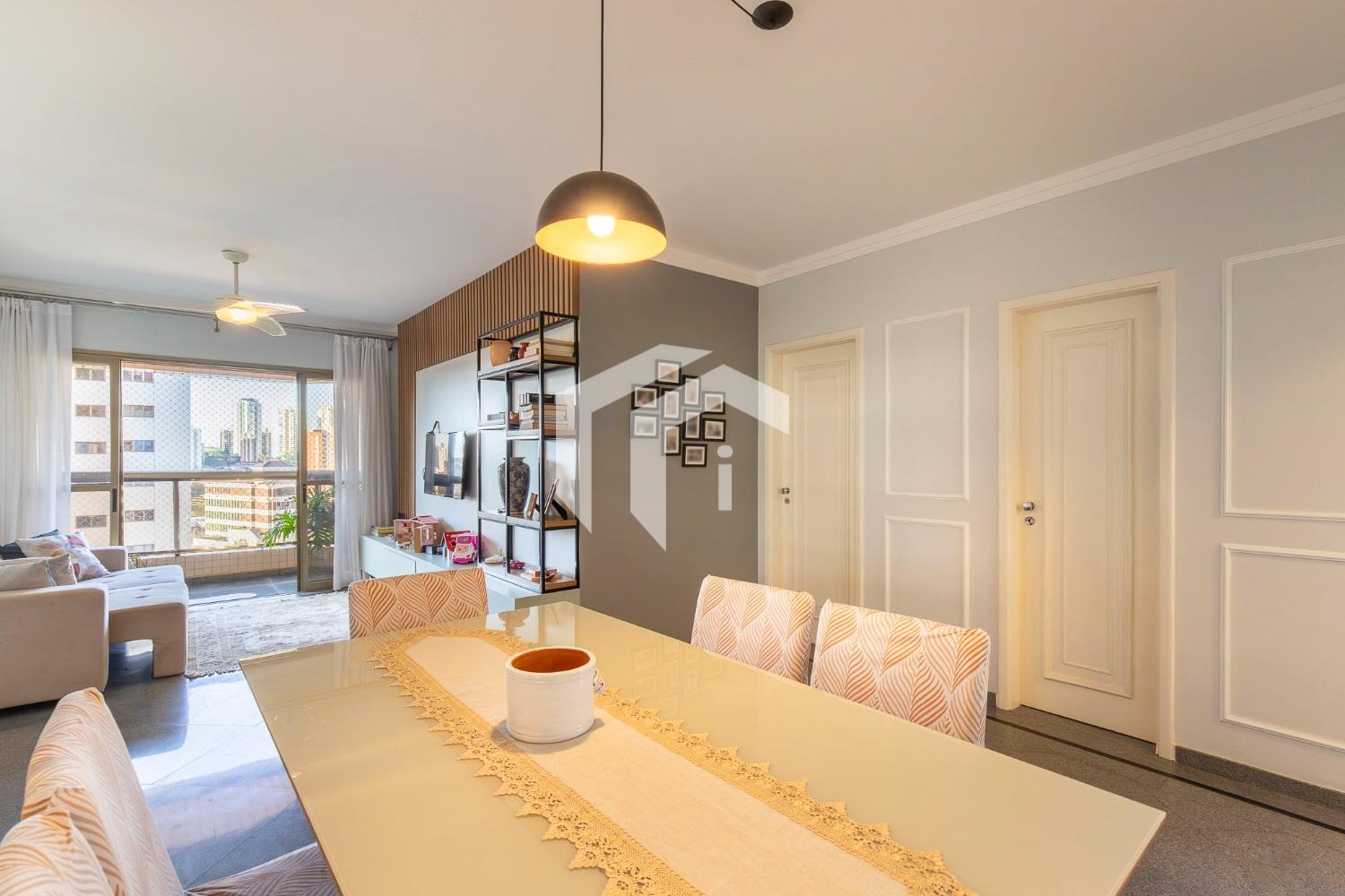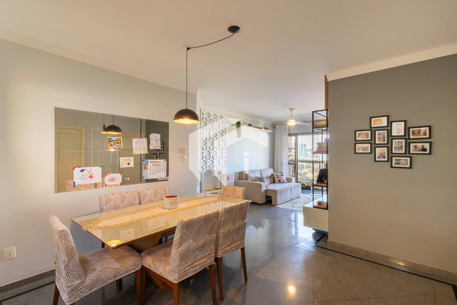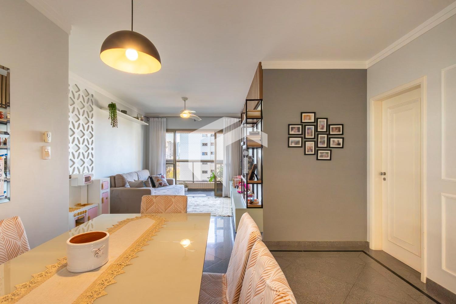 Sala para 2 ambientes com lavabo, varanda, ótima vista e o sol da manhã.