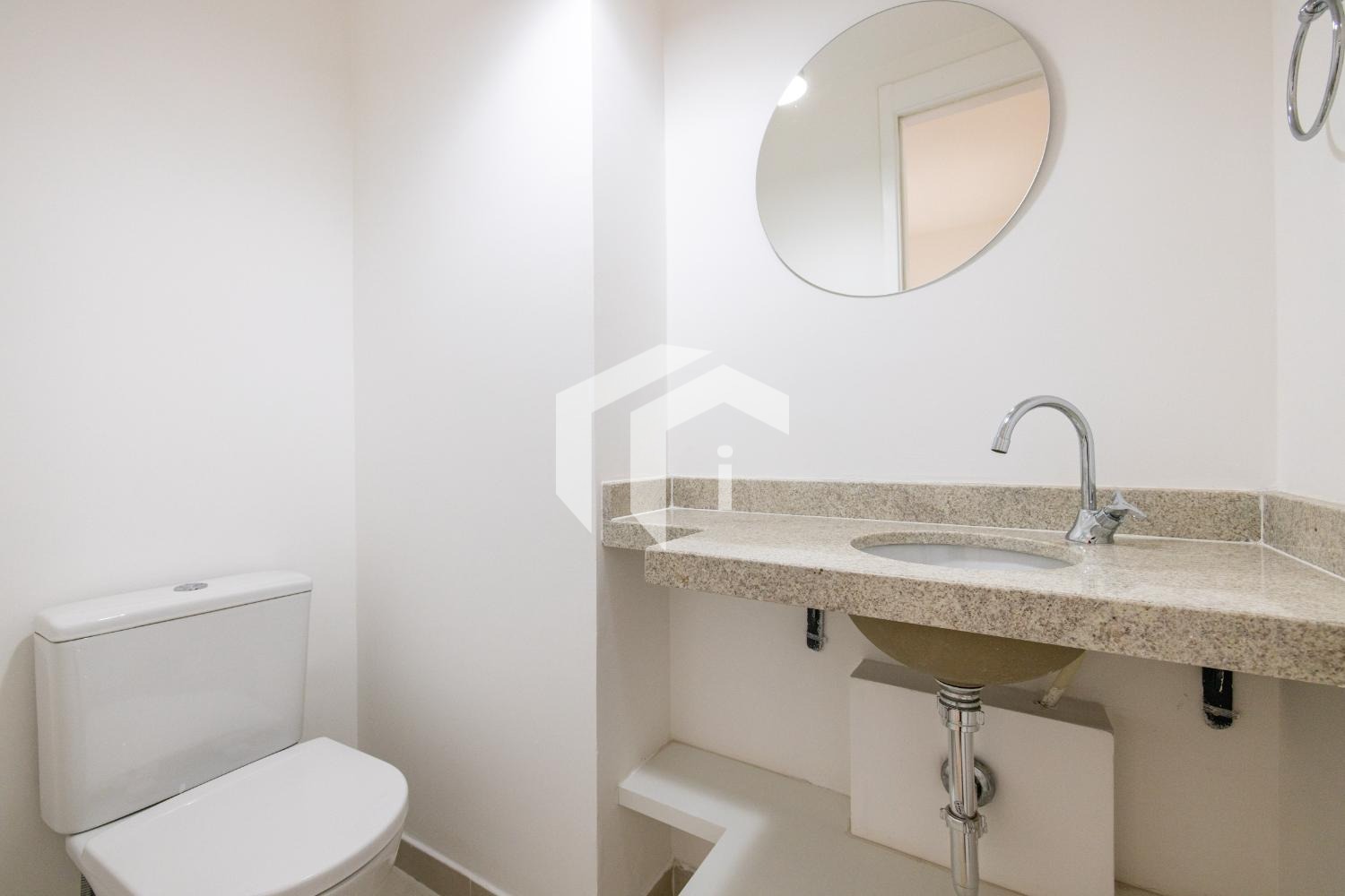Sala ampla, climatizada e integrada à varanda, mais, o lavabo para o seu conforto.