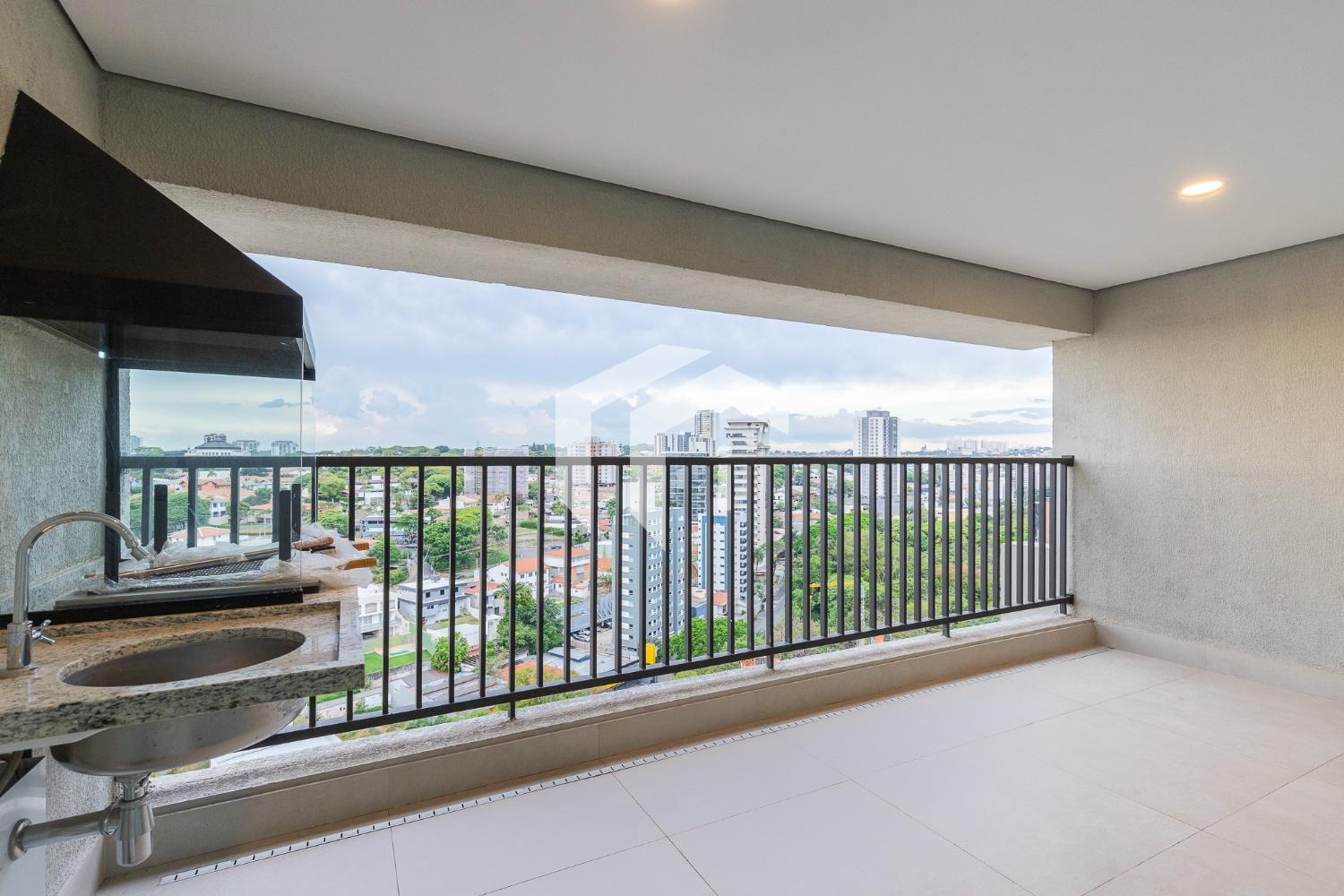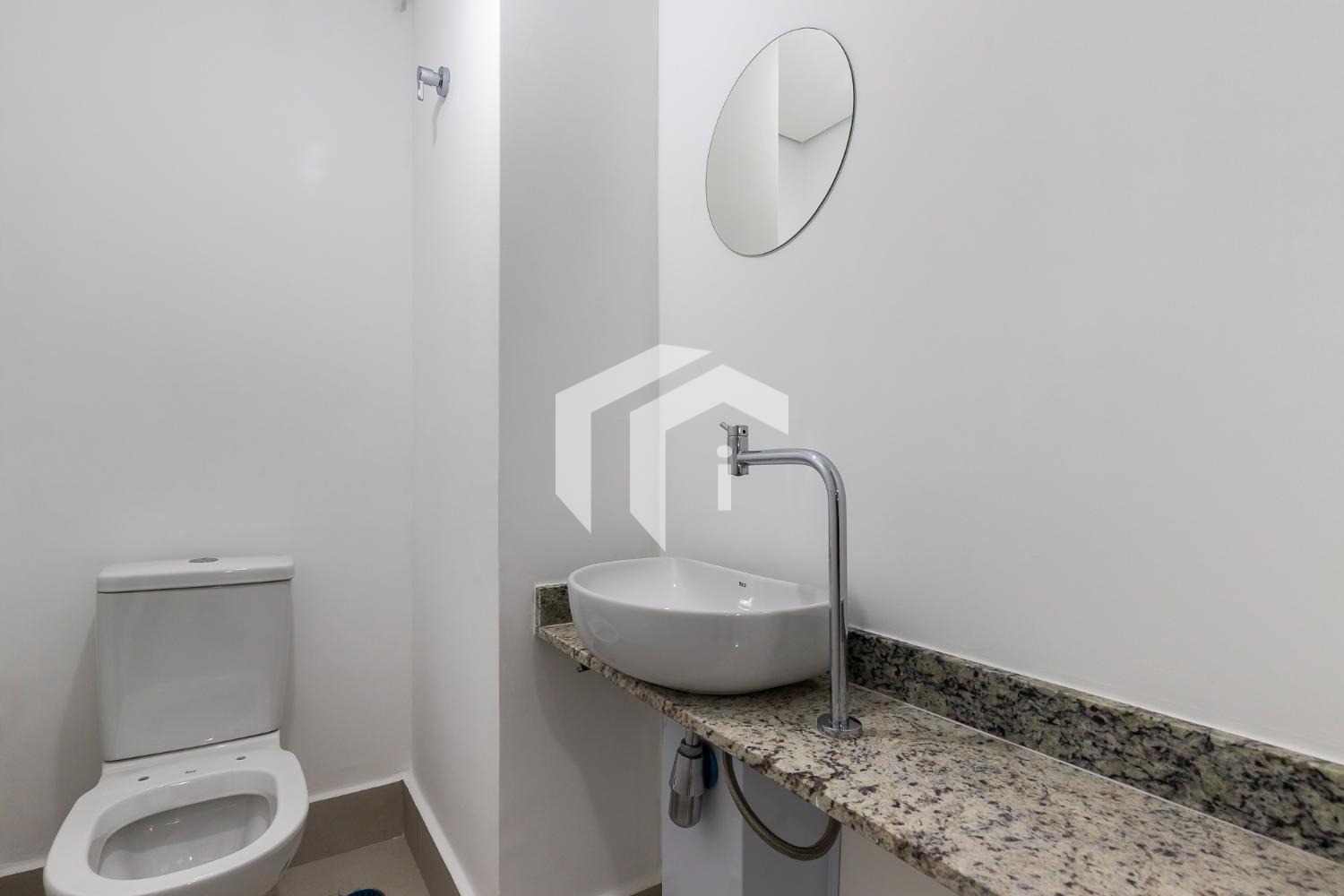 Amplo living para 3 ambientes integrados à convidativa varanda gourmet e o conforto do lavabo.