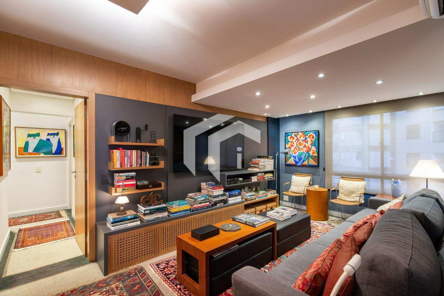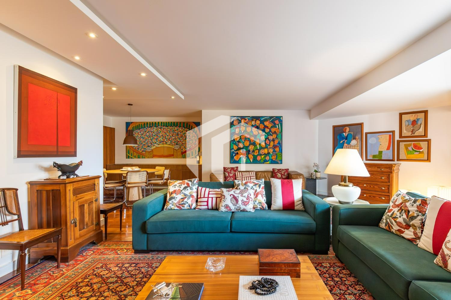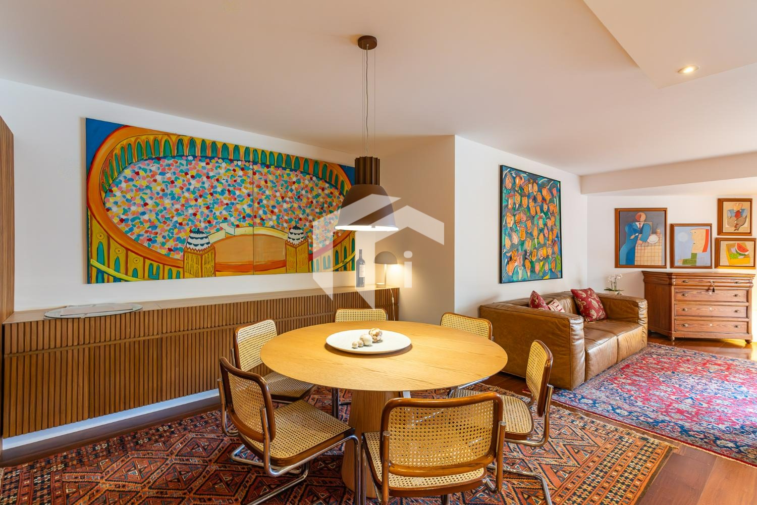 Living climatizado para 3 ambientes, com varanda integrada, lavabo, sala de jantar e estar aconchegante.