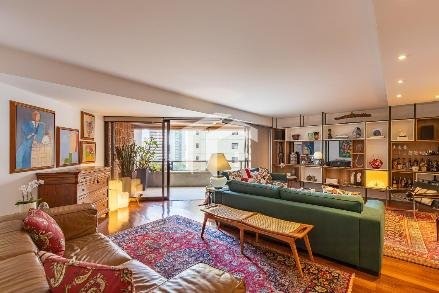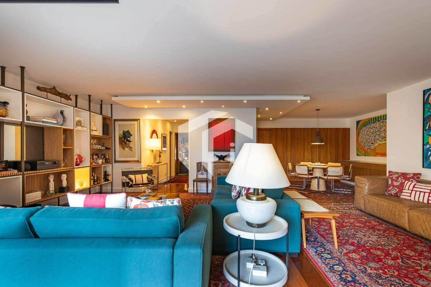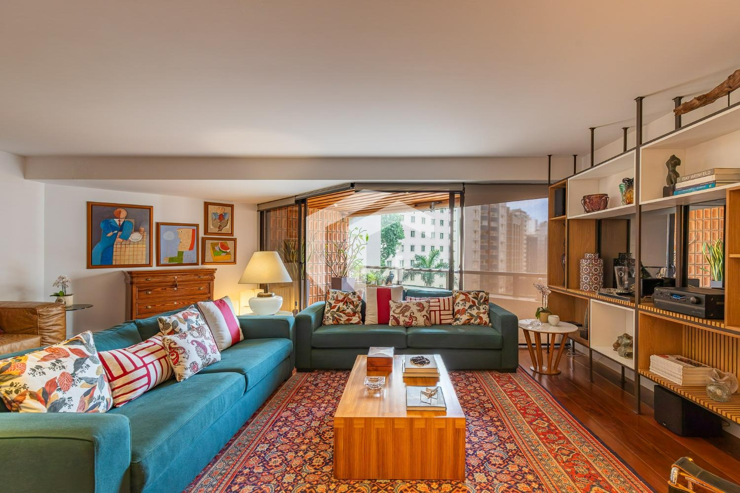 Living climatizado para 3 ambientes, com varanda integrada, lavabo, sala de jantar e estar aconchegante.