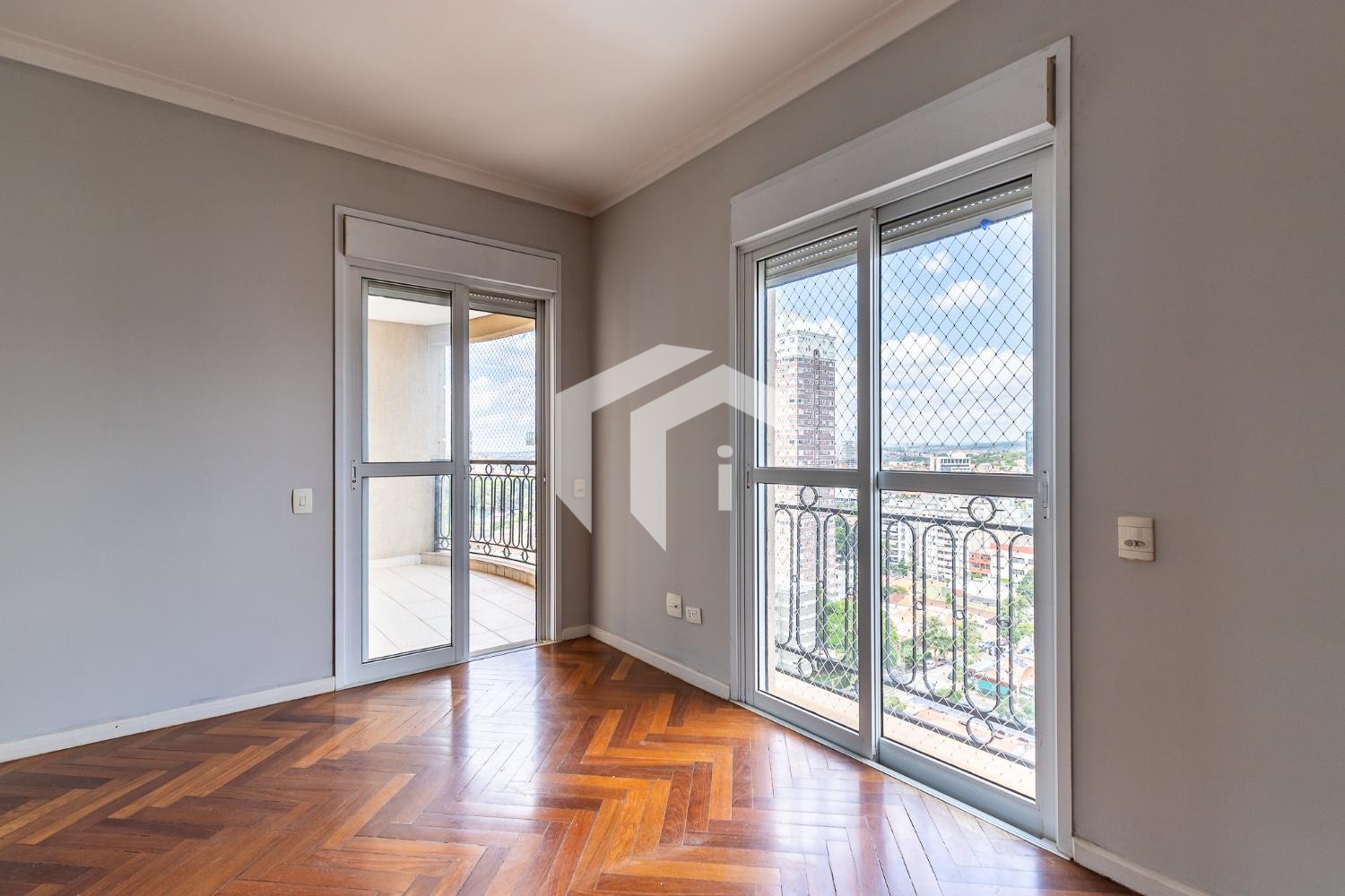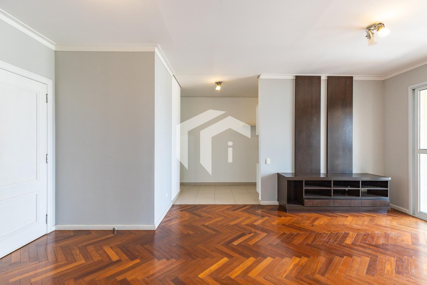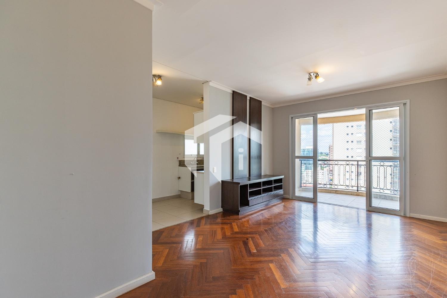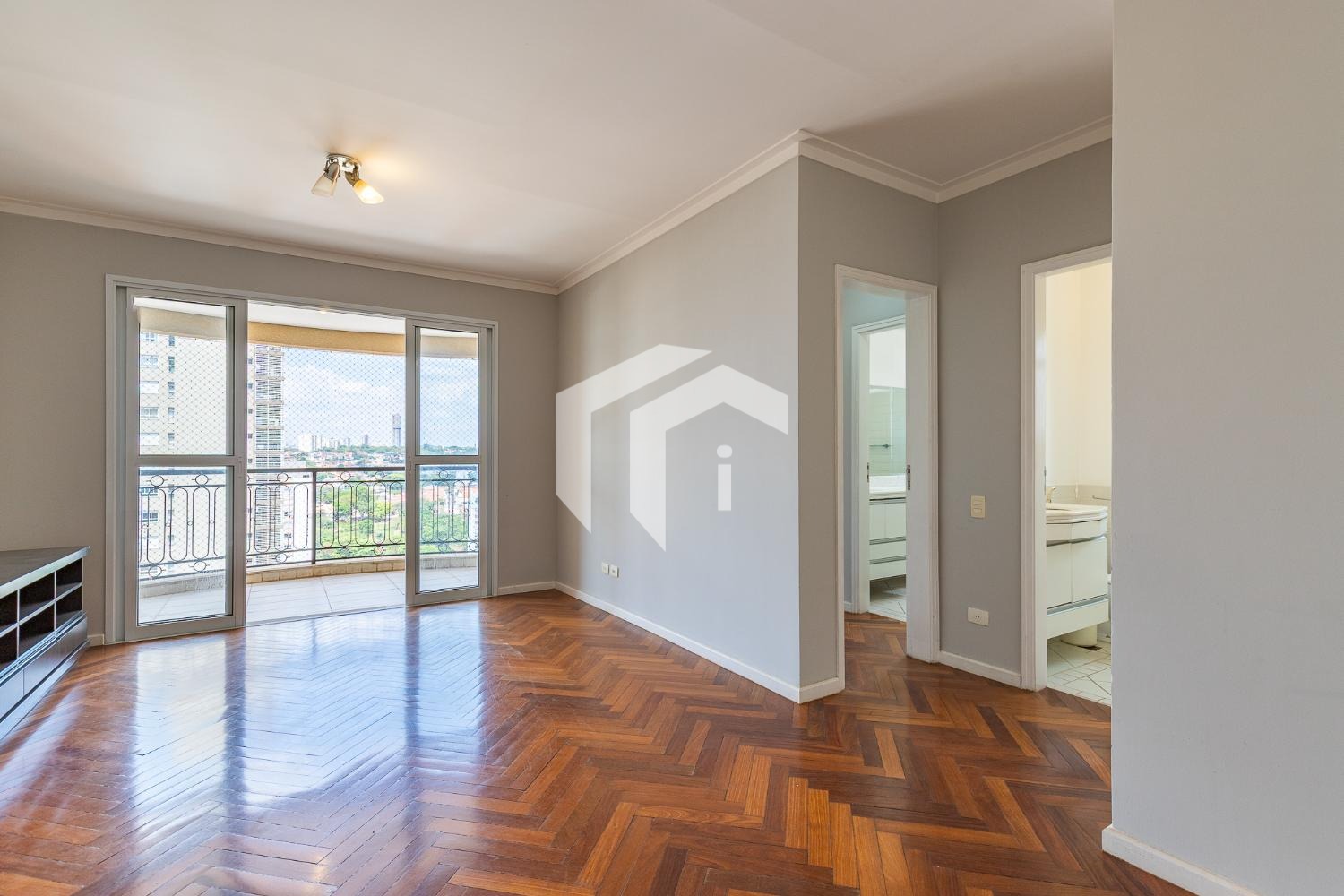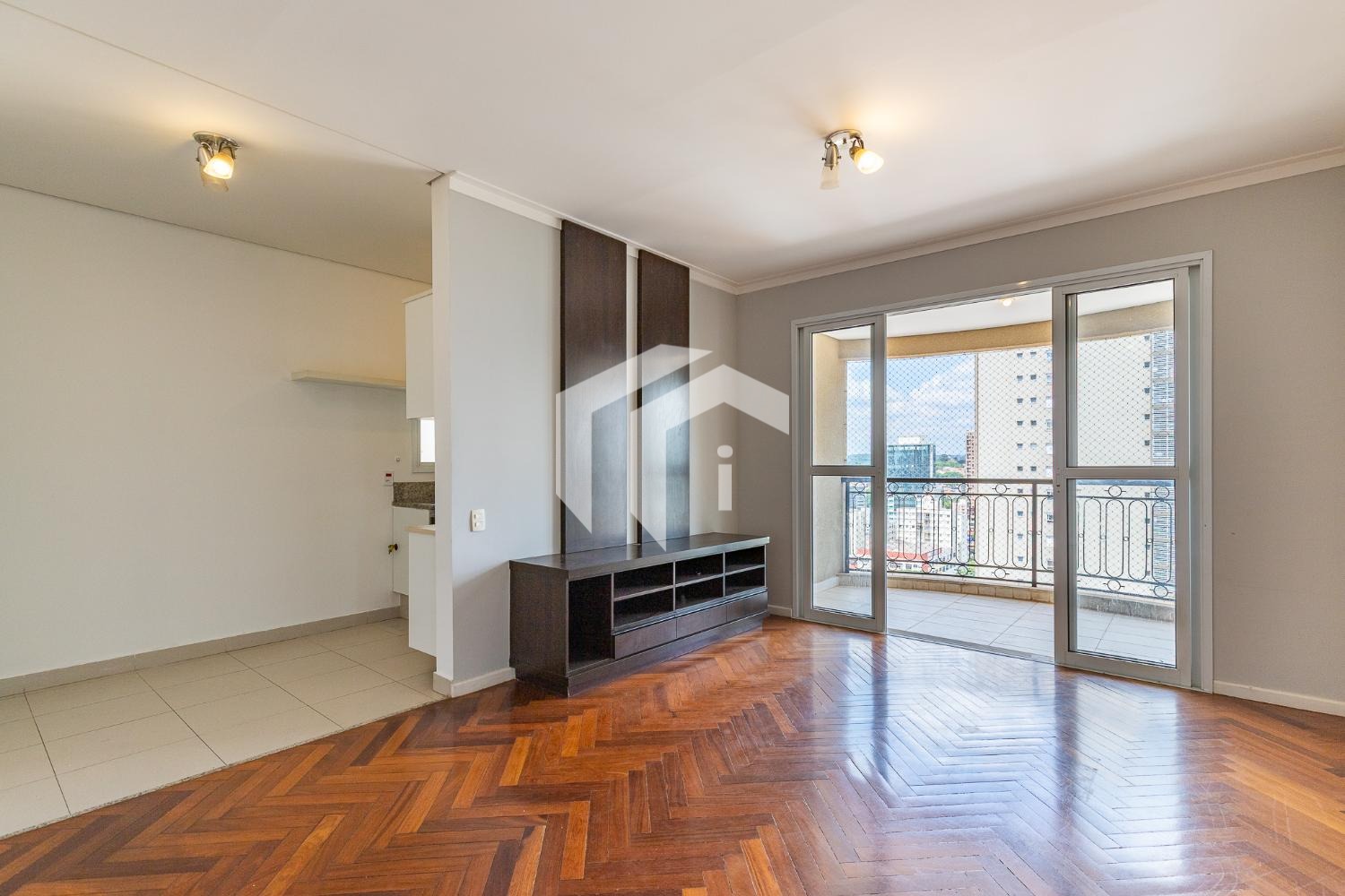Sala para 2 ambientes com varanda e lavabo.