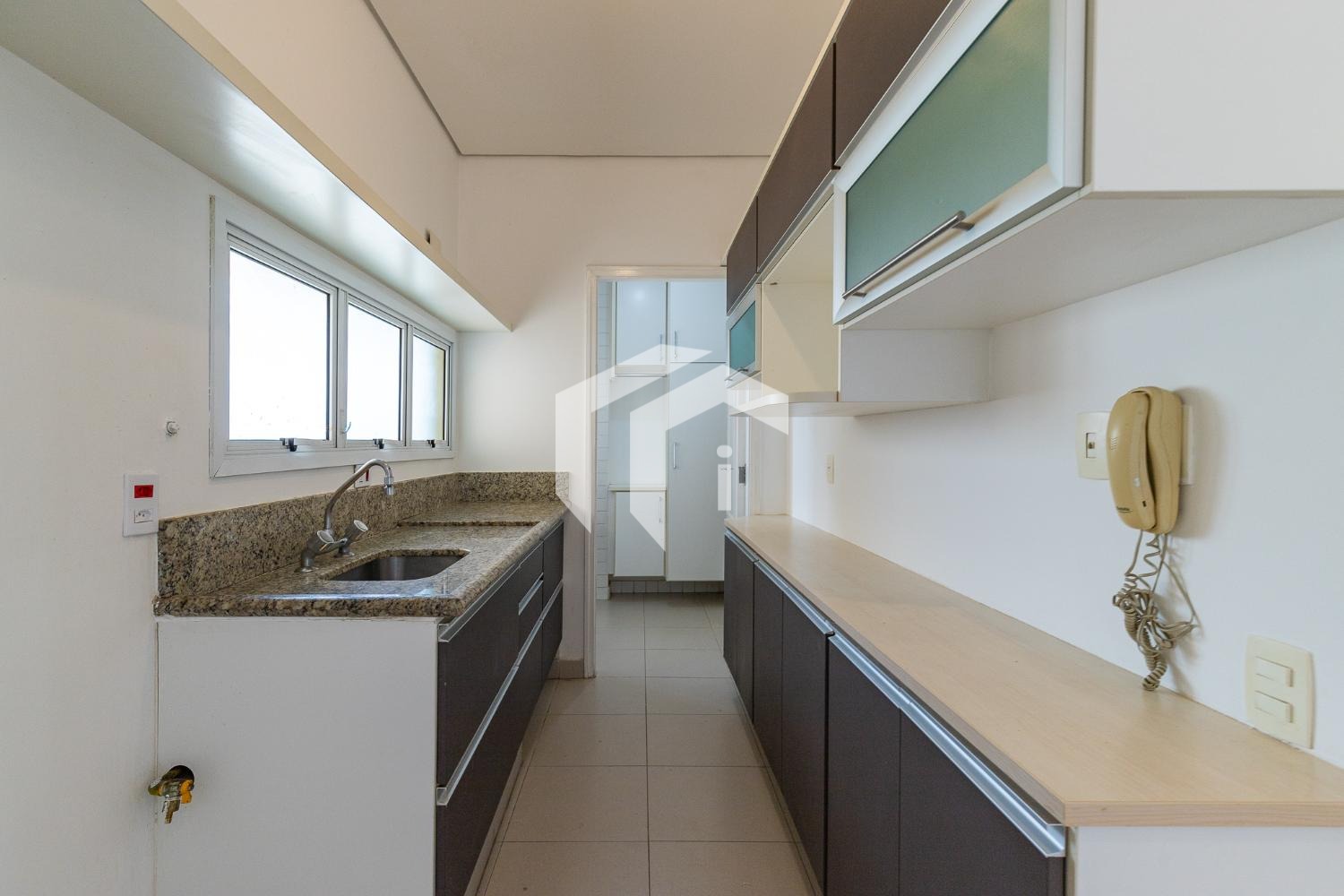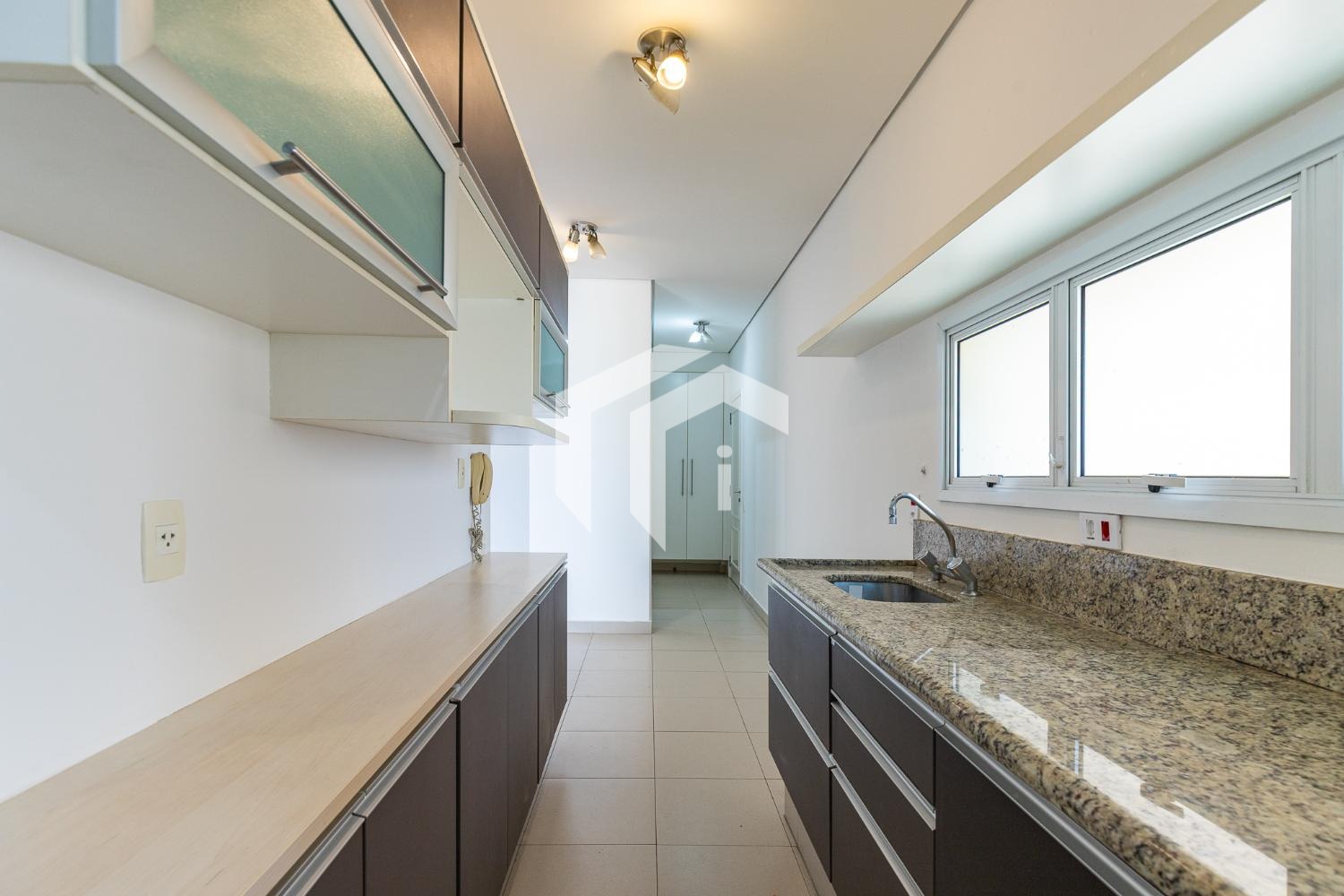 Cozinha ricamente planejada e área de serviço.
