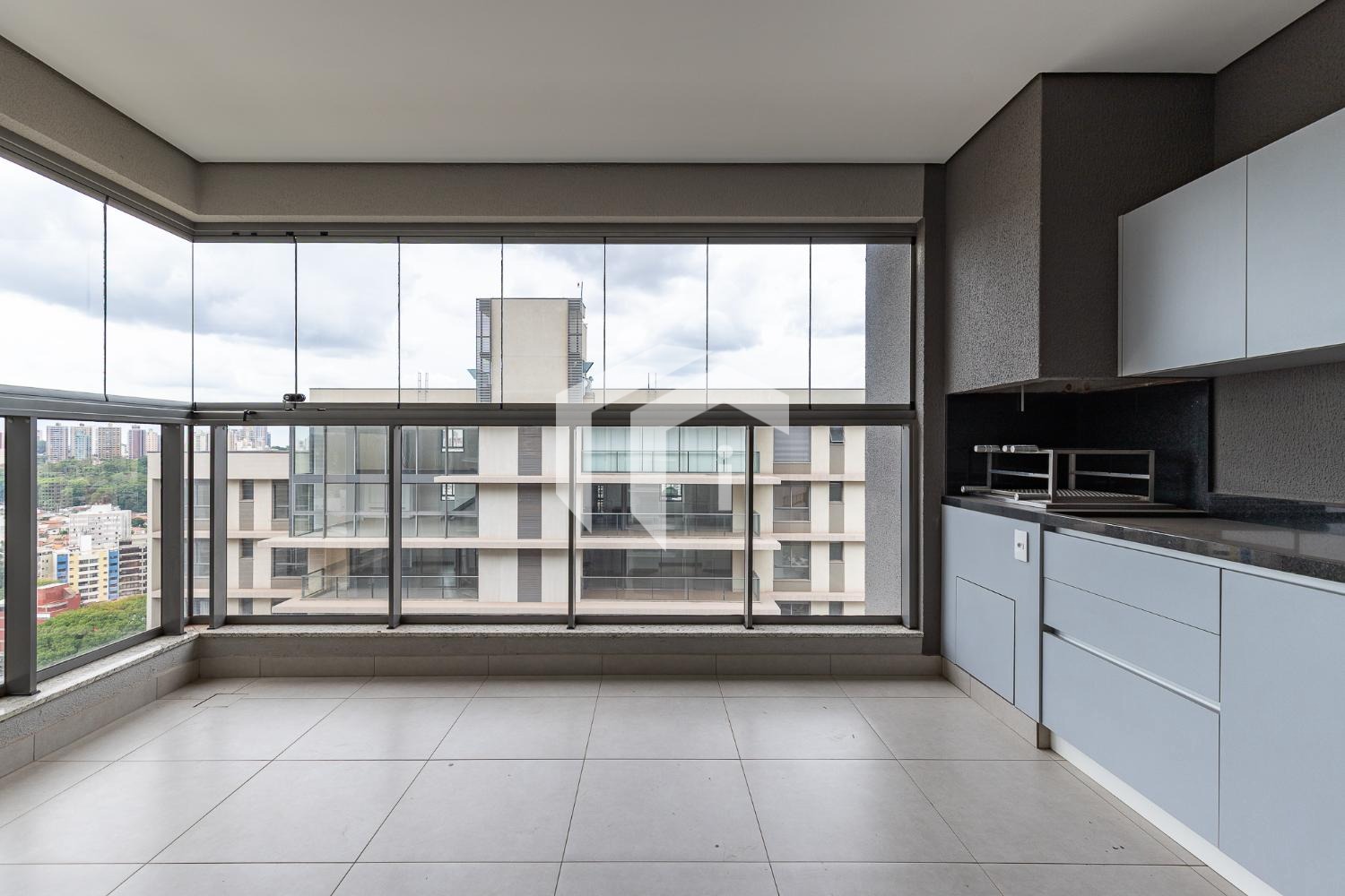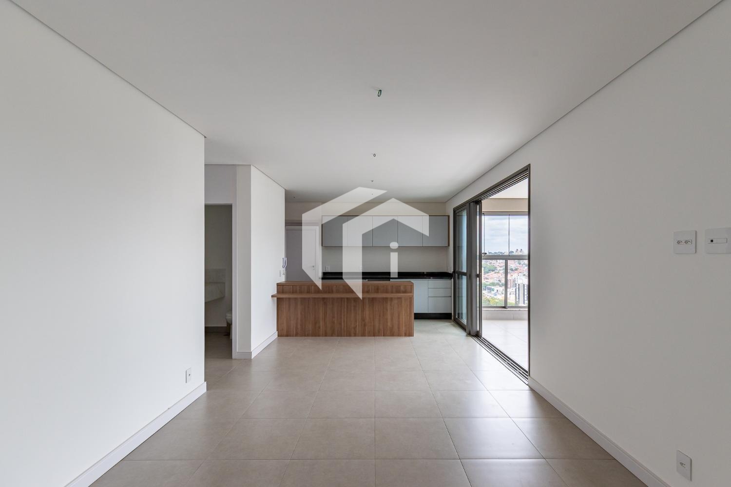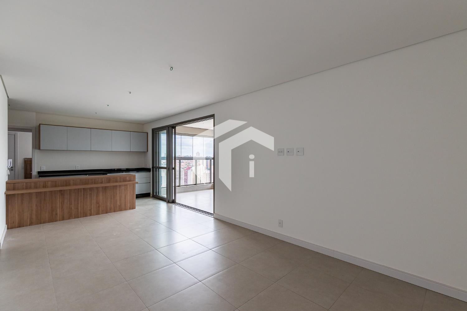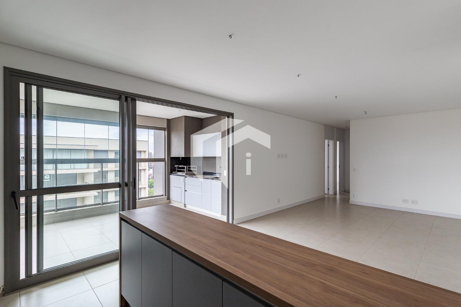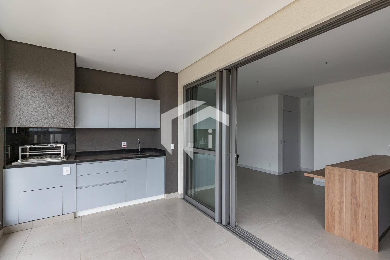 Cozinha americana completa em armários e totalmente integrada ao living e à varanda gourmet.