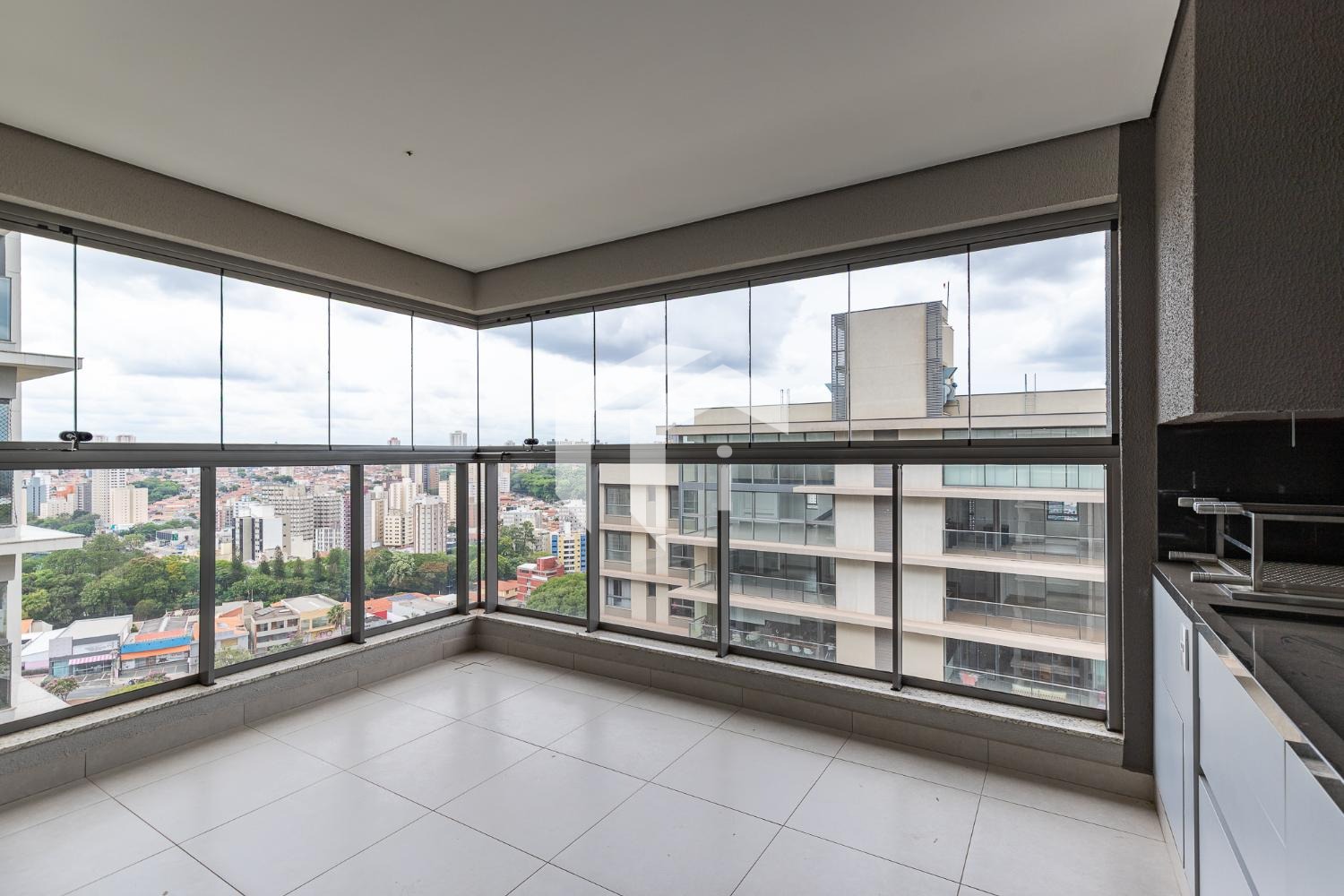 Convidativa varanda gourmet com churrasqueira à carvão, já com blindex rebatível.