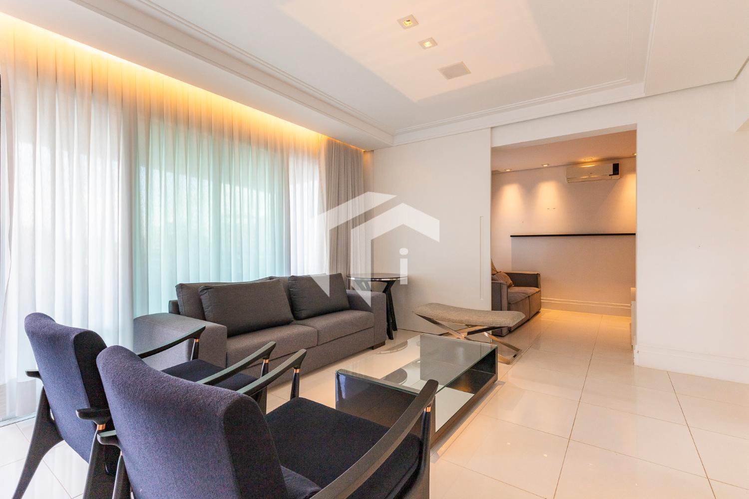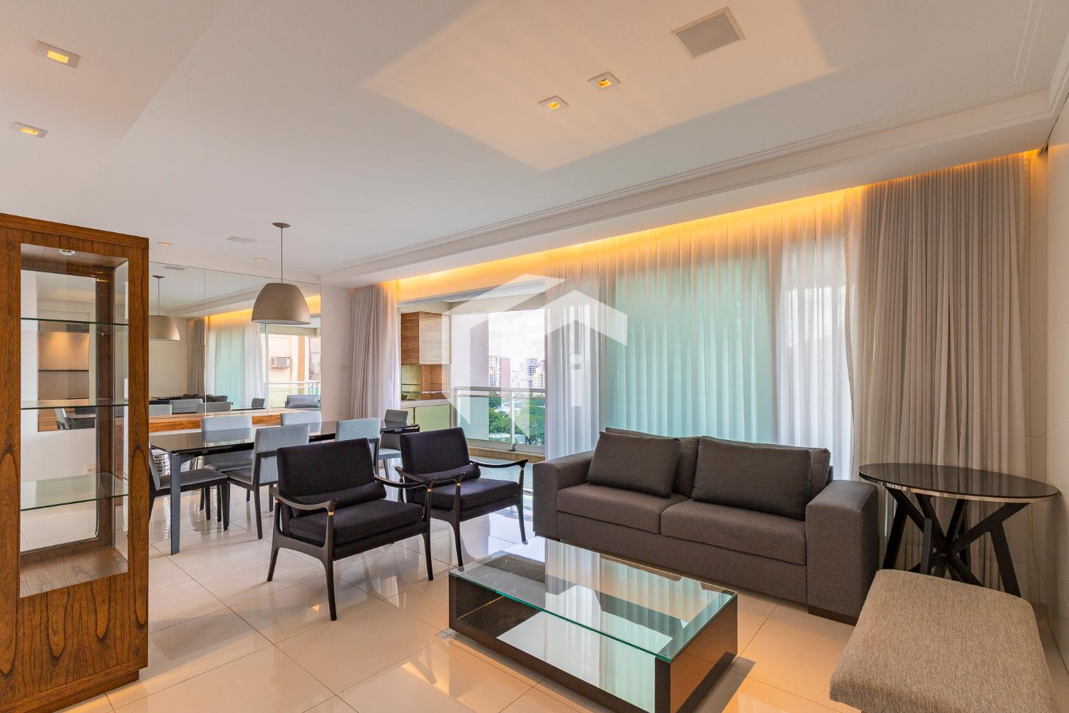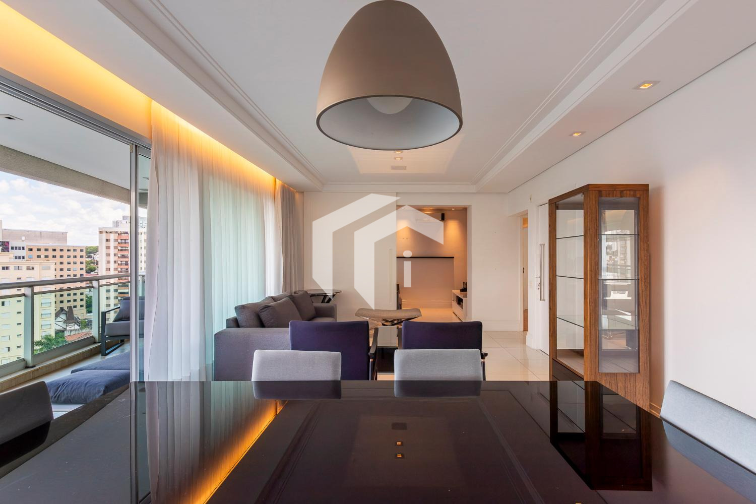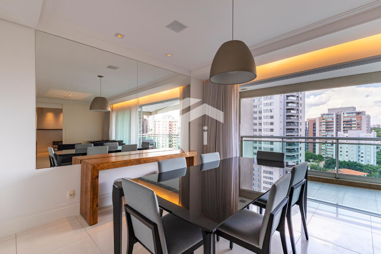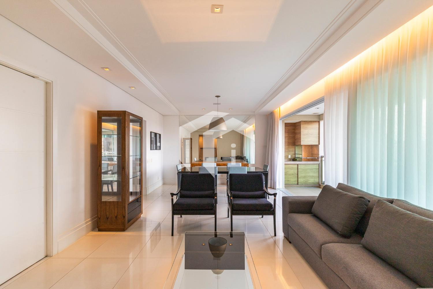 Amplo living climatizado para 3 ambientes, abraçado por uma convidativa varanda gourmet com ótima vista e sol da manhã, tudo servido pelo lavabo e home theater.