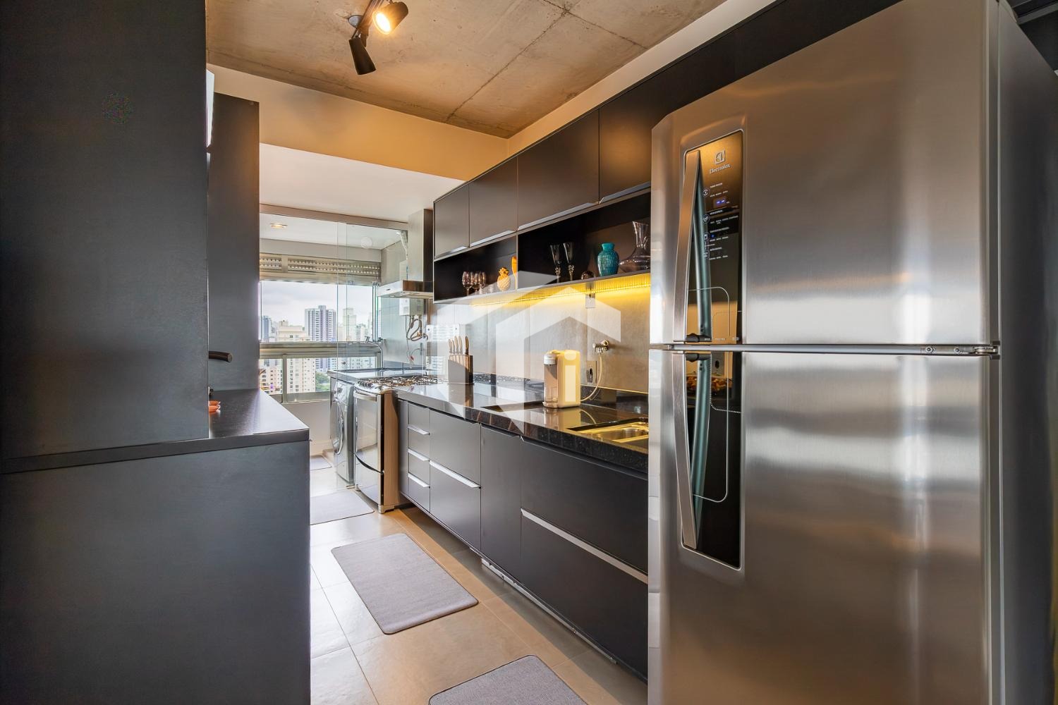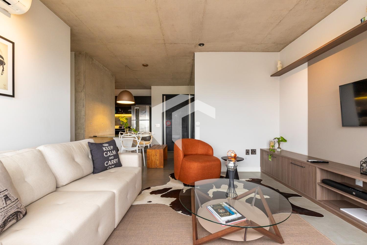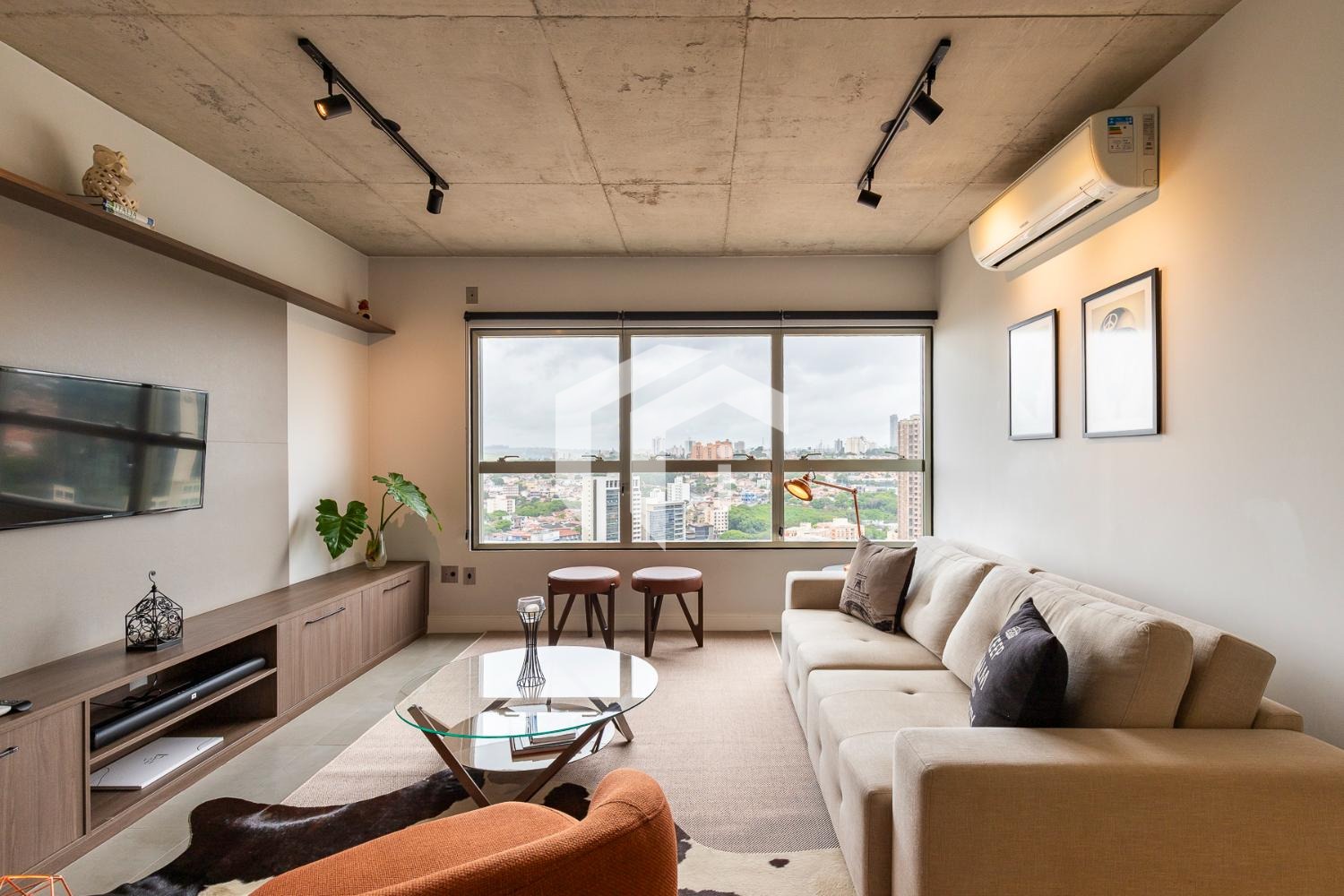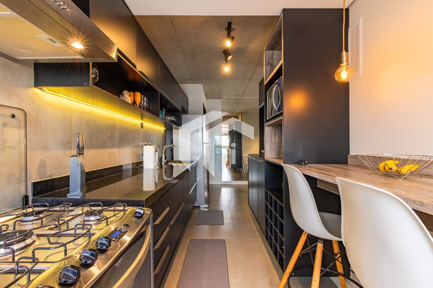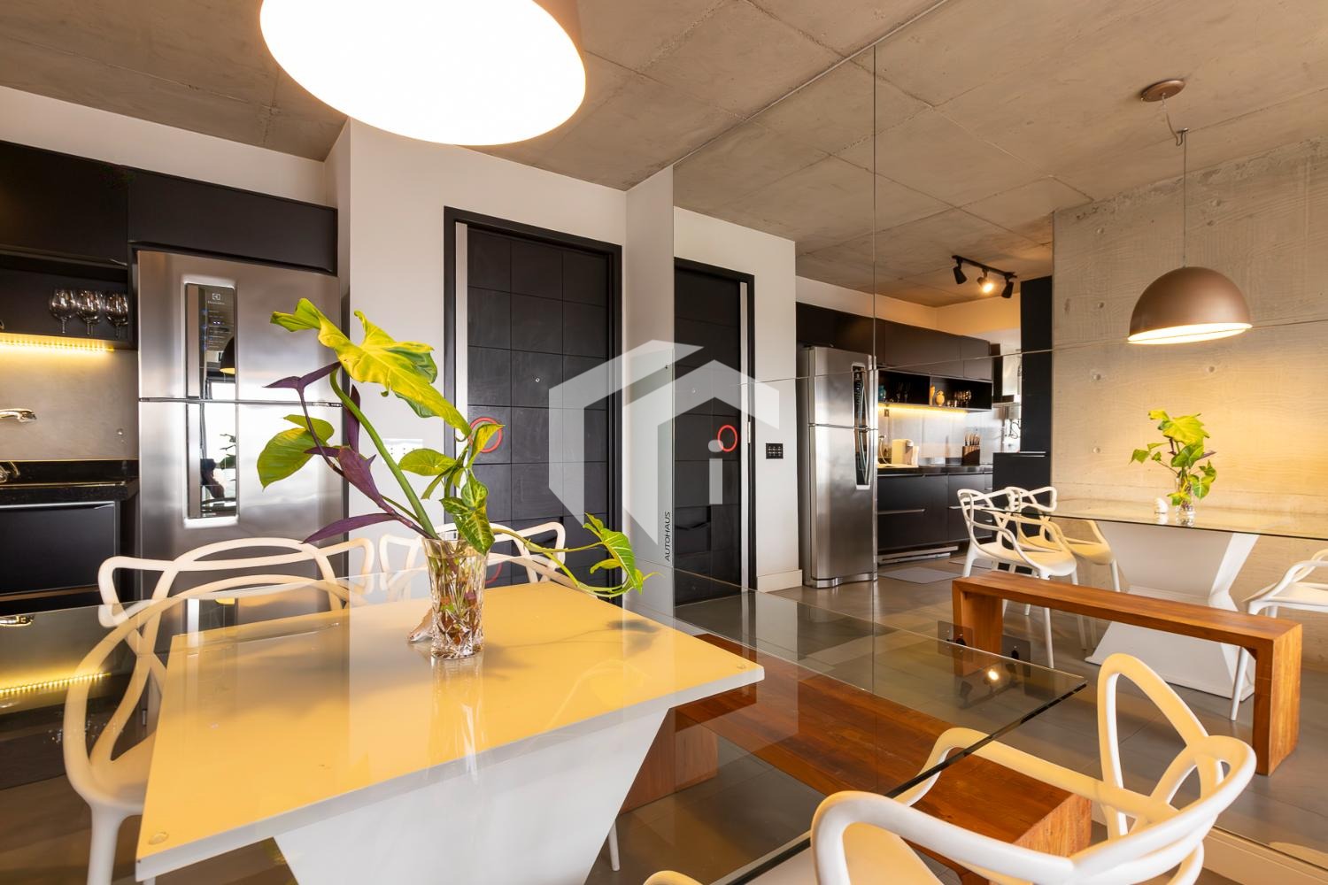 Com arquitetura de conceito industrial / usinagem, o apartamento se destaca pelo design urbano e contemporâneo, com concreto aparente, linhas marcantes e estética moderna.