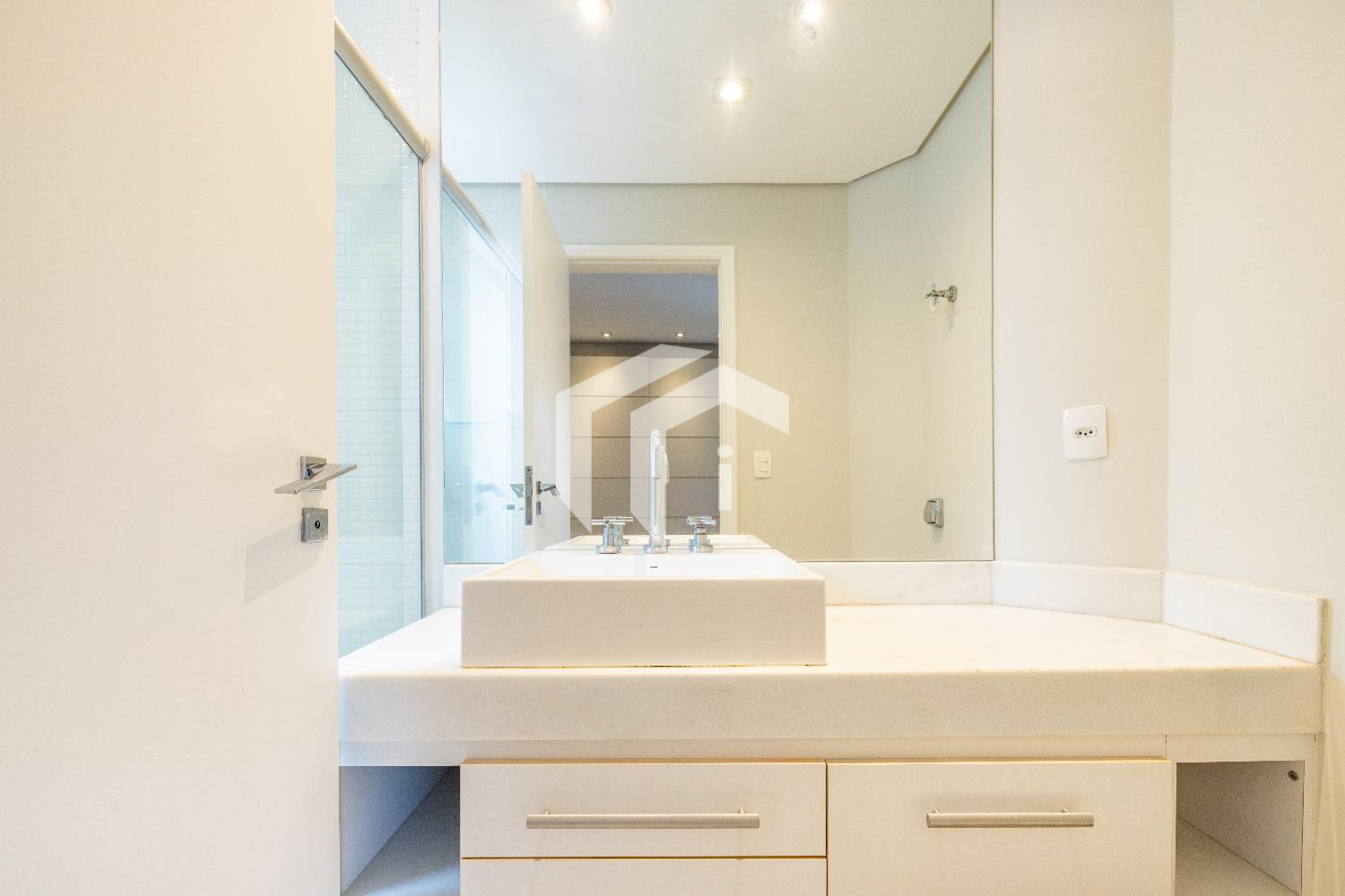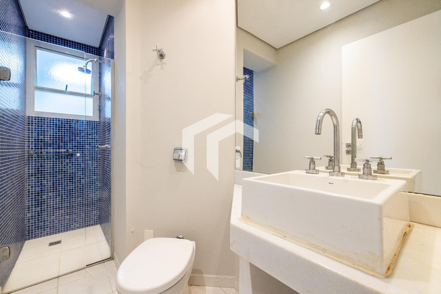 A área de serviço é ampla e funcional, com banheiro de apoio, complementando o layout inteligente do apartamento.
