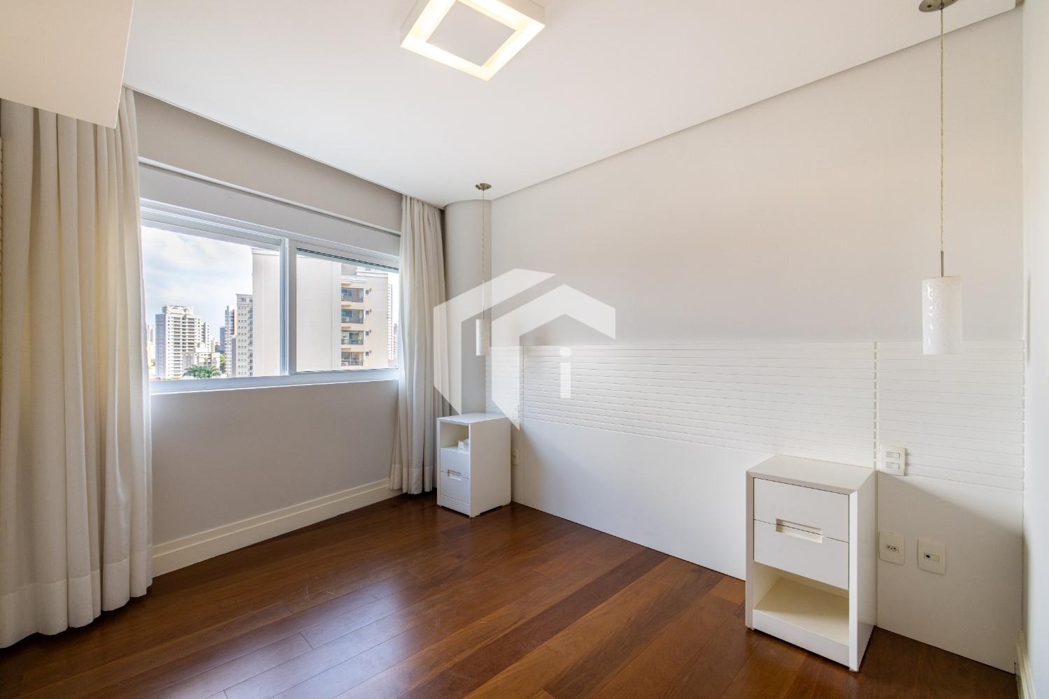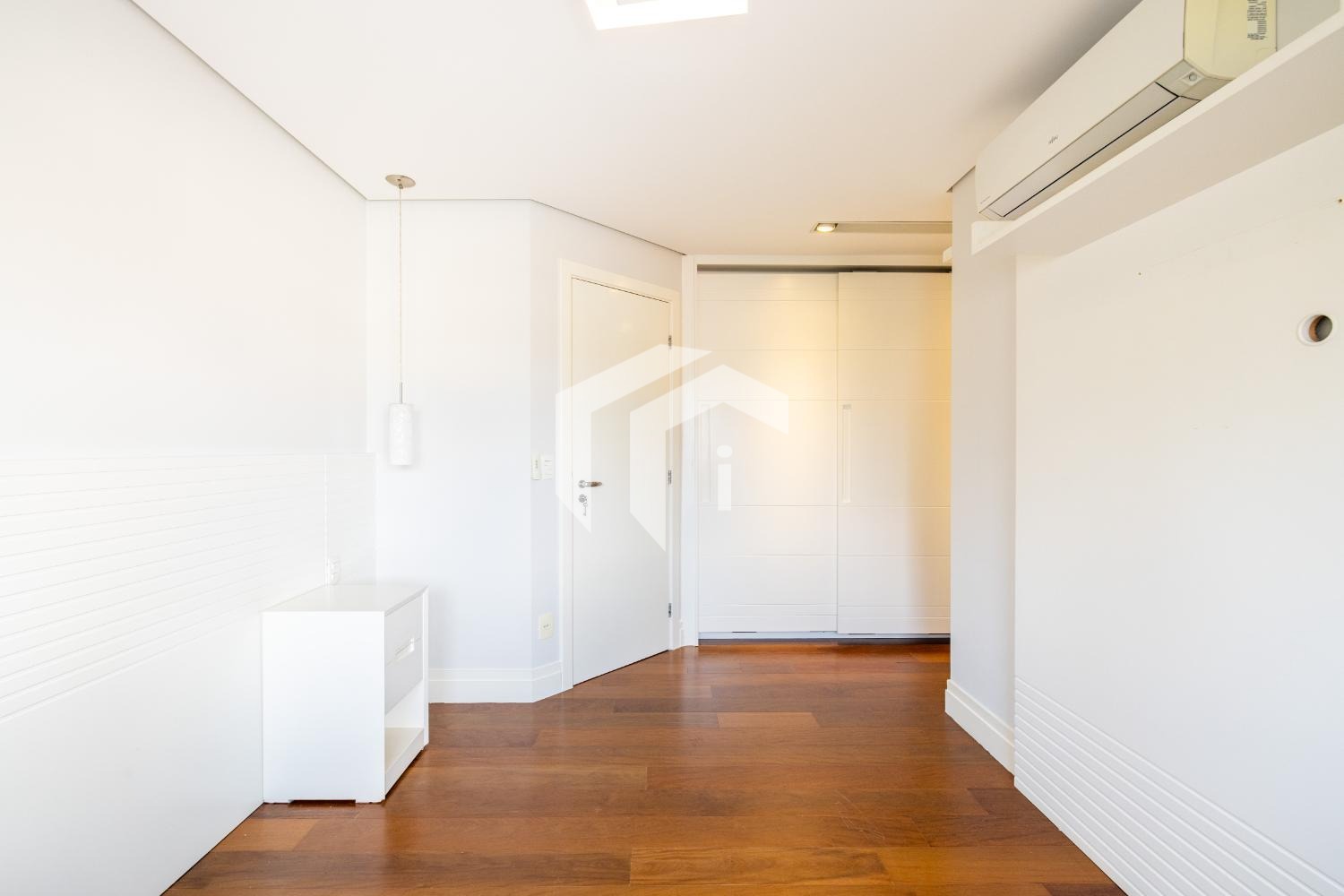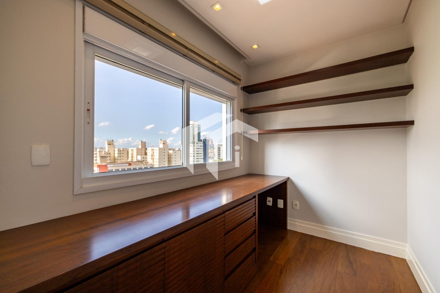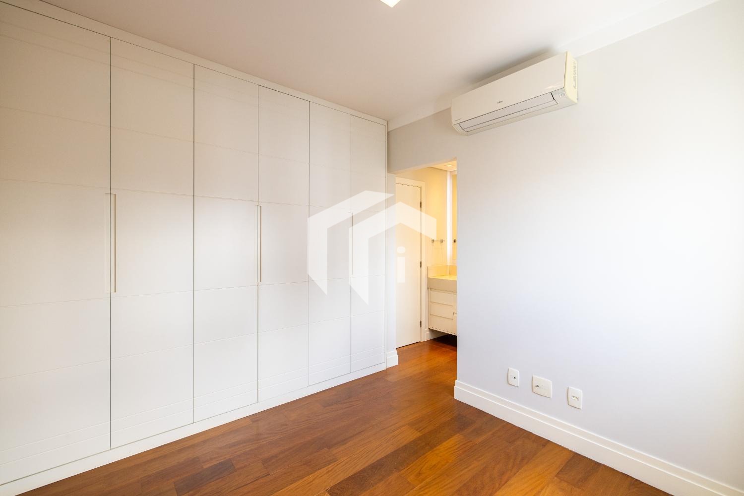 São 3 dormitórios, todos suítes, com armários planejados, ar-condicionado e persianas automatizadas.